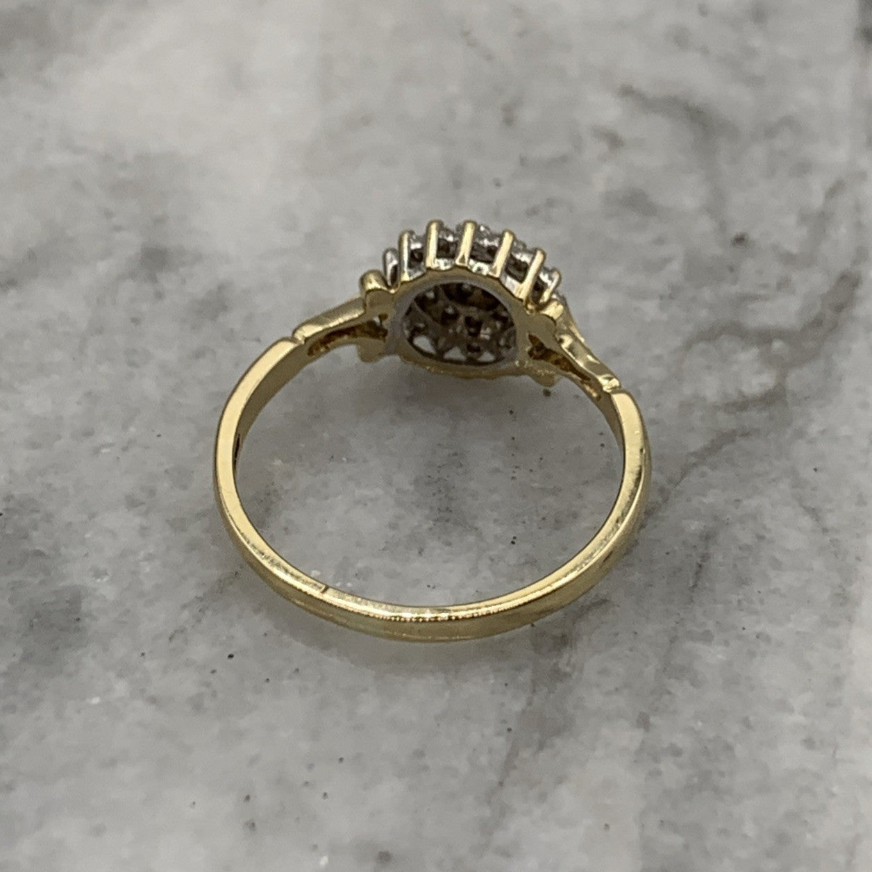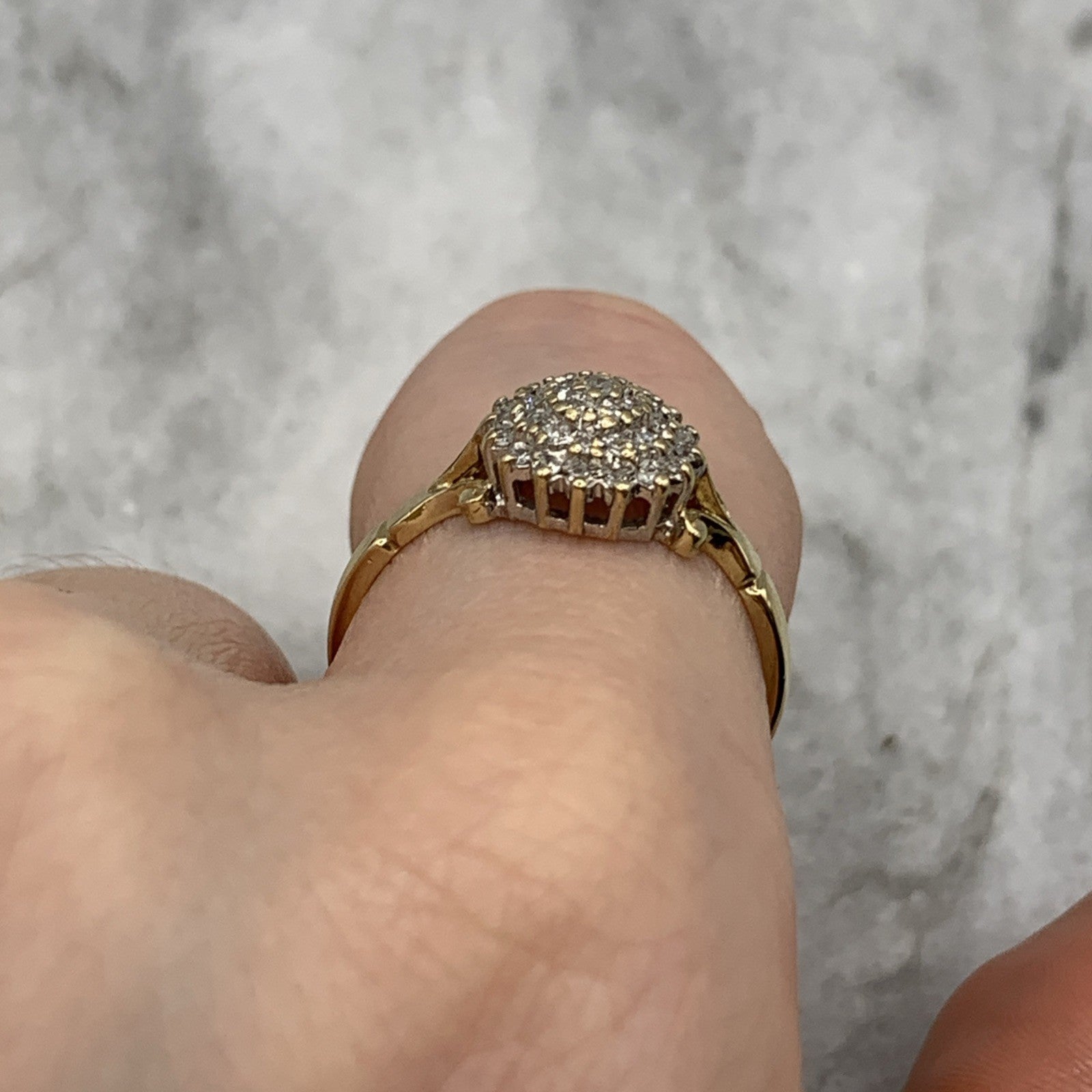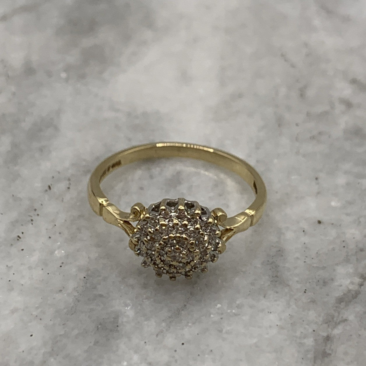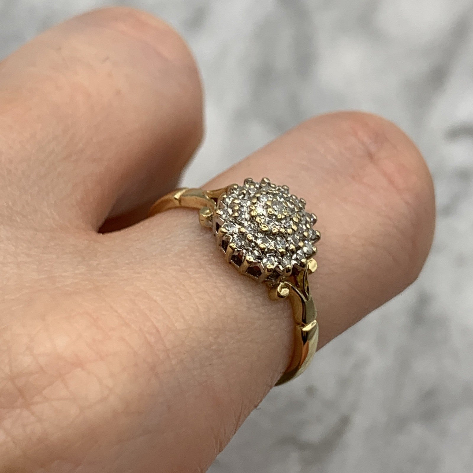 9 ct Gold Ring Diamond Round Cluster Ring 375 Yellow Gold - Size P 1/2