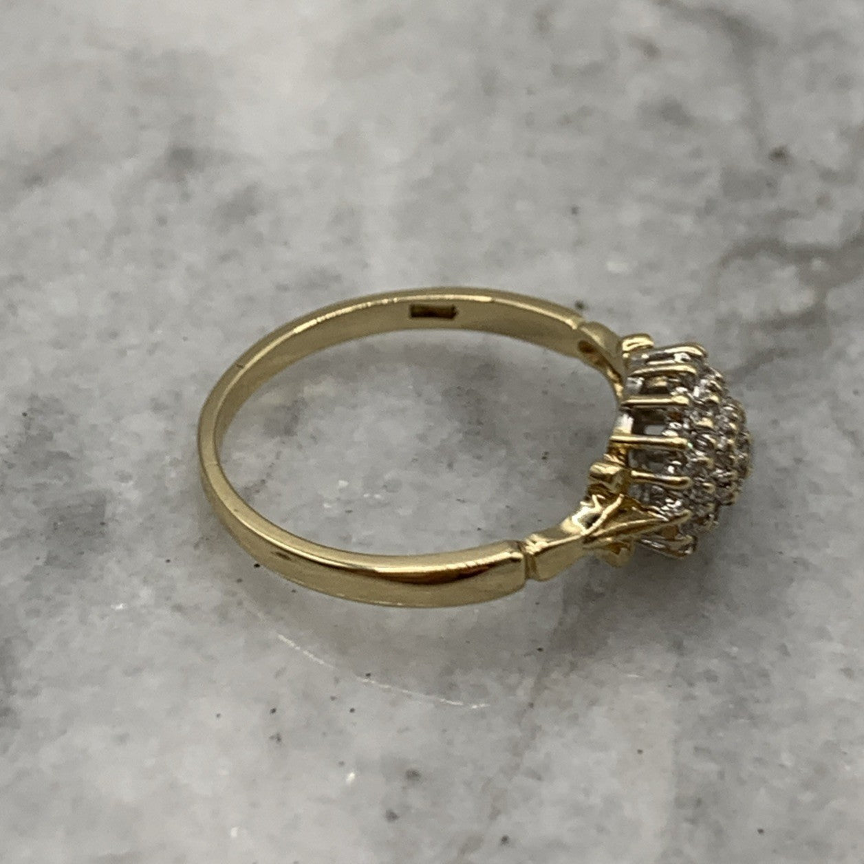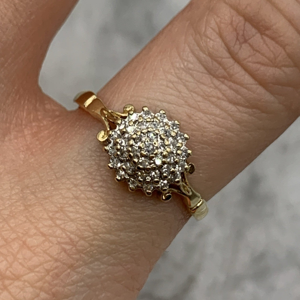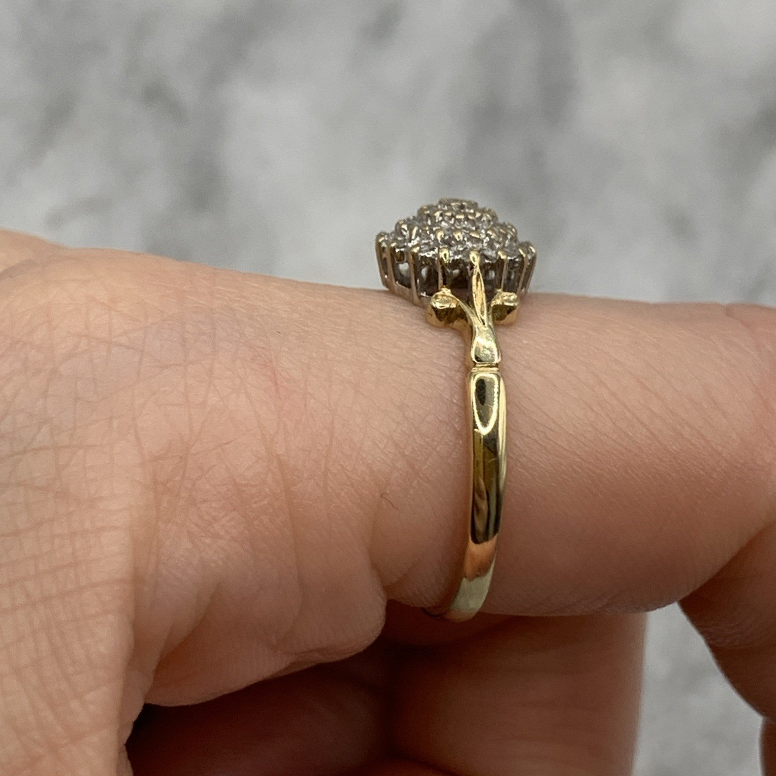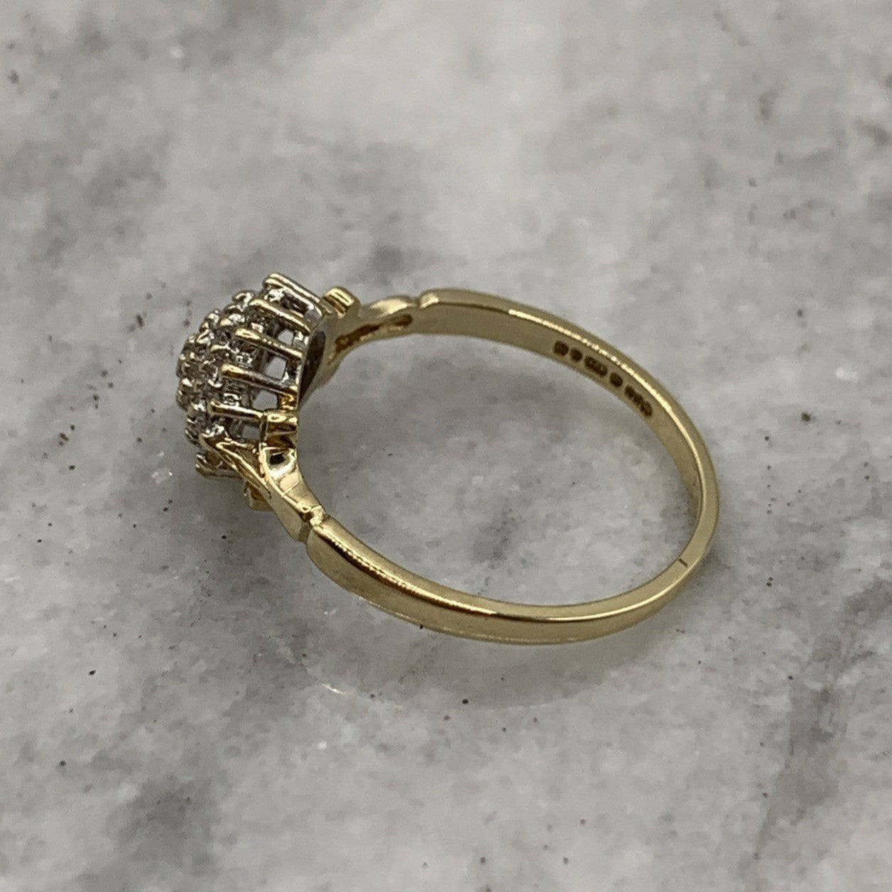 9 ct Gold Ring Diamond Round Cluster Ring 375 Yellow Gold - Size P 1/2