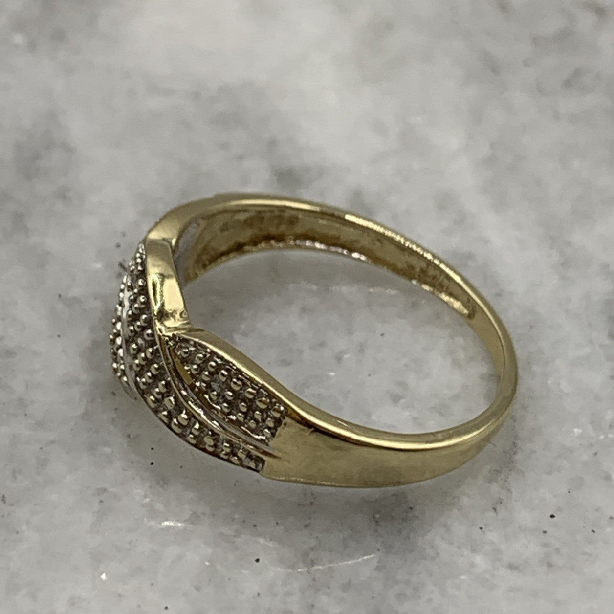 - A charming gold wave twist style ring adorned with petite pave set diamonds. Stamped DIA.