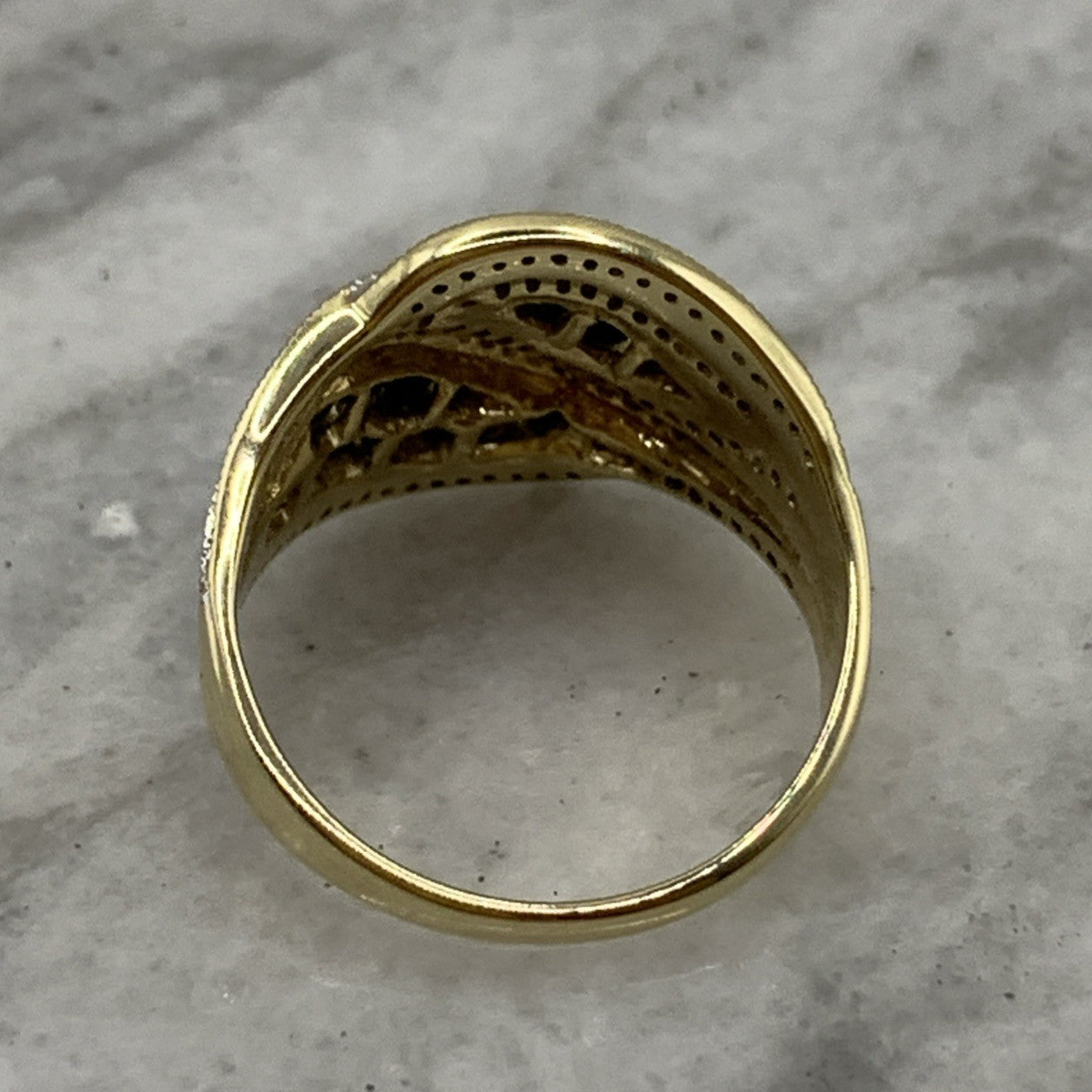 9 ct Gold Ring Sapphire & Diamond Twist Cluster Ring 375 Yellow Gold- Size O 1/2
