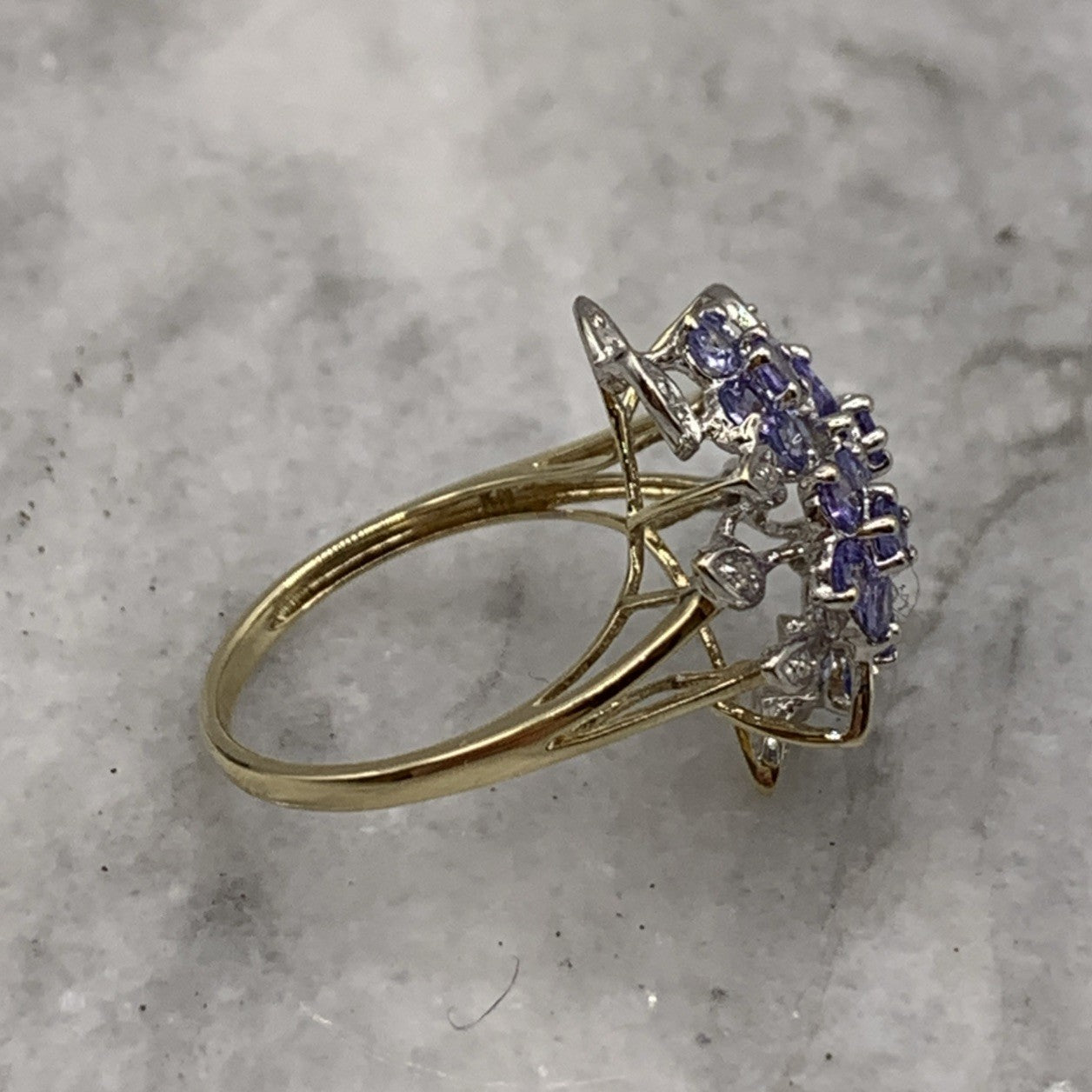 9 ct Gold Tanzanite & Diamond Flower Cluster Ring 375 9k Yellow Gold - Size P