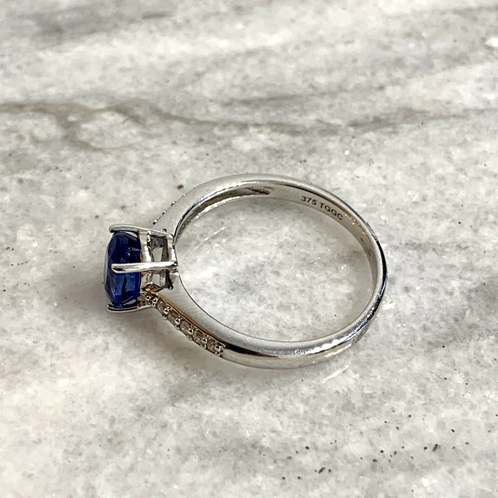 9 ct White Gold Ring Kyanite & Diamond Shoulder Accents - Size N
