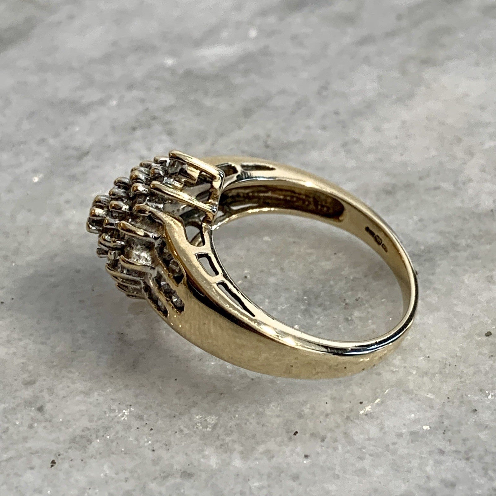 9ct Gold Cluster Ring CZ Ornate 375 Yellow Gold - Size M 1/2