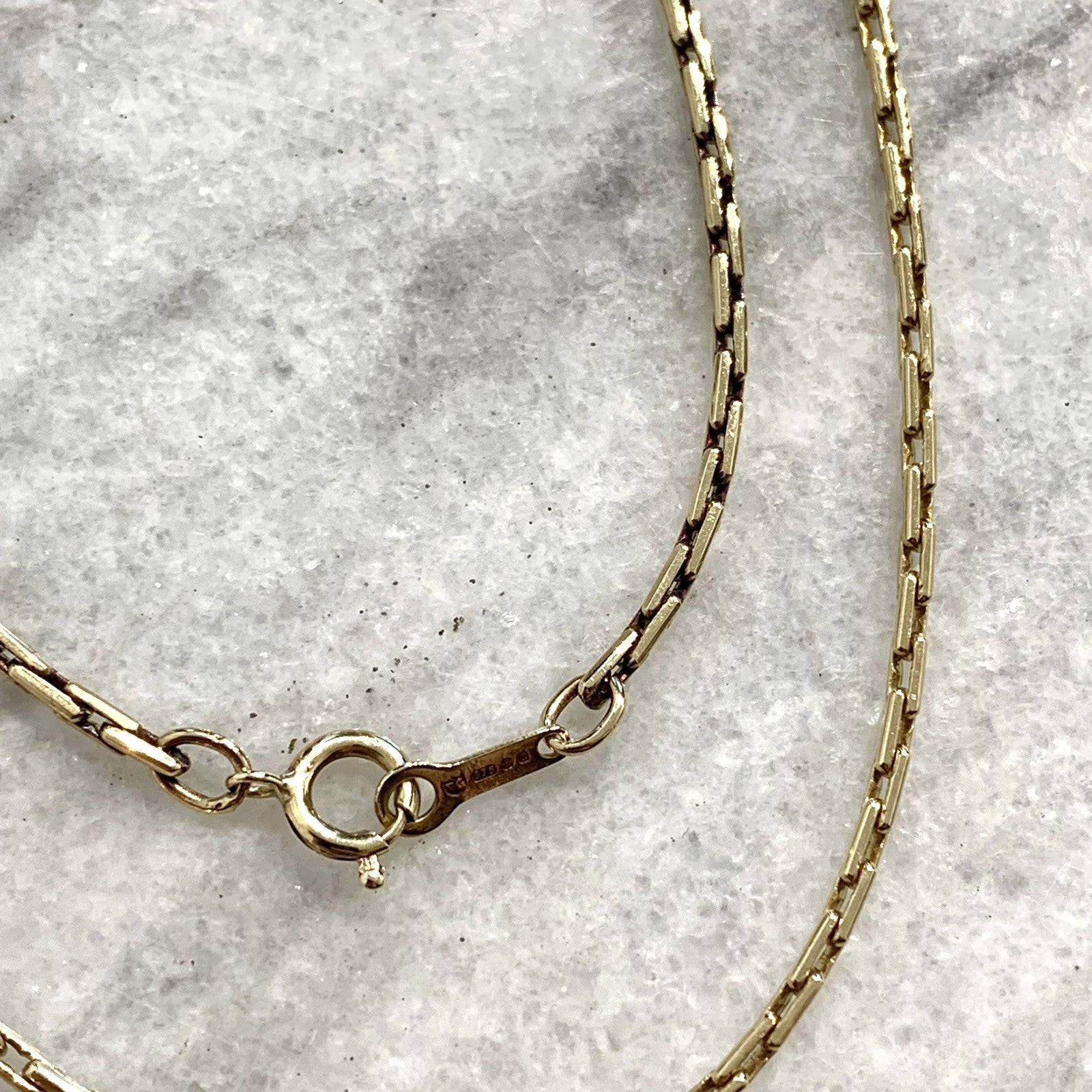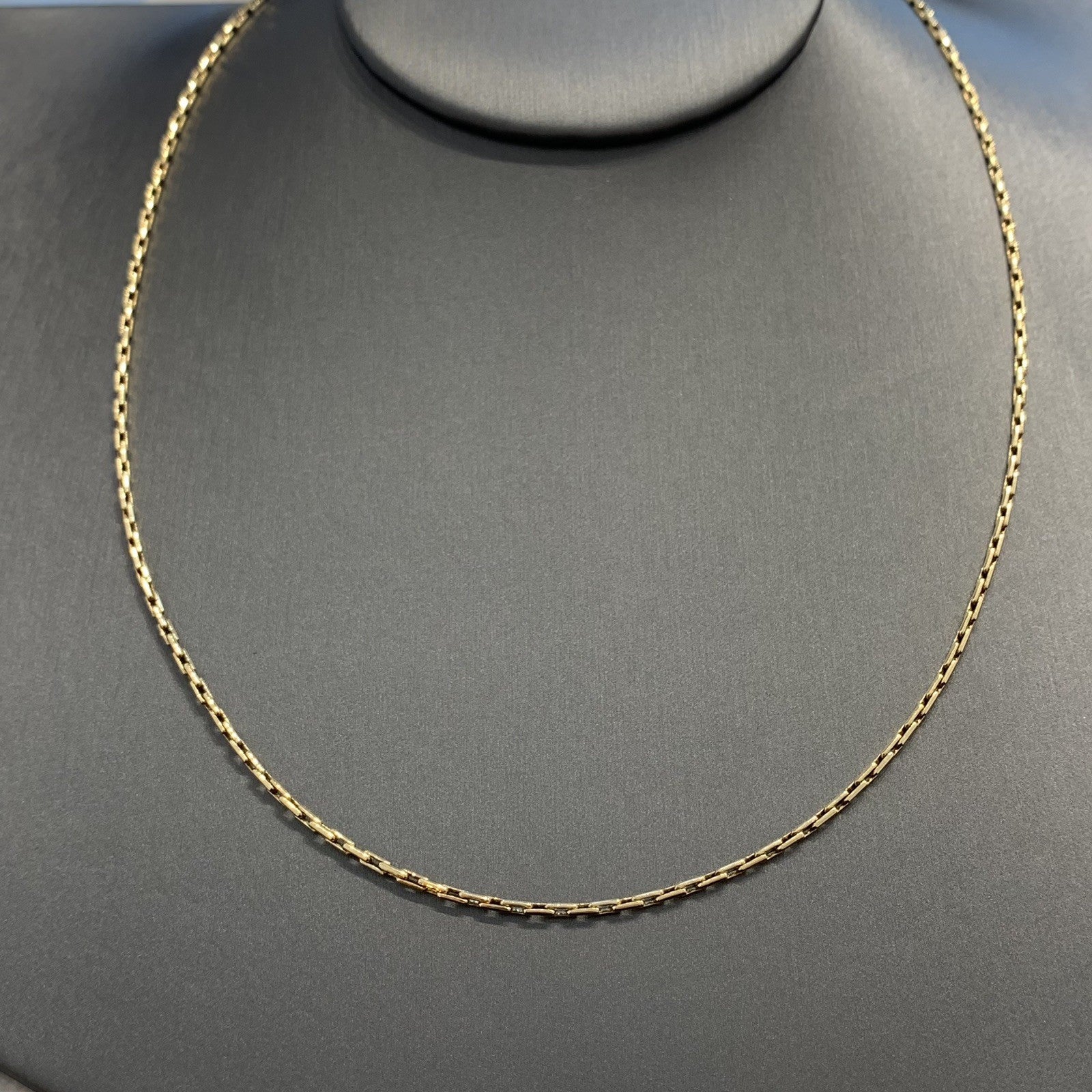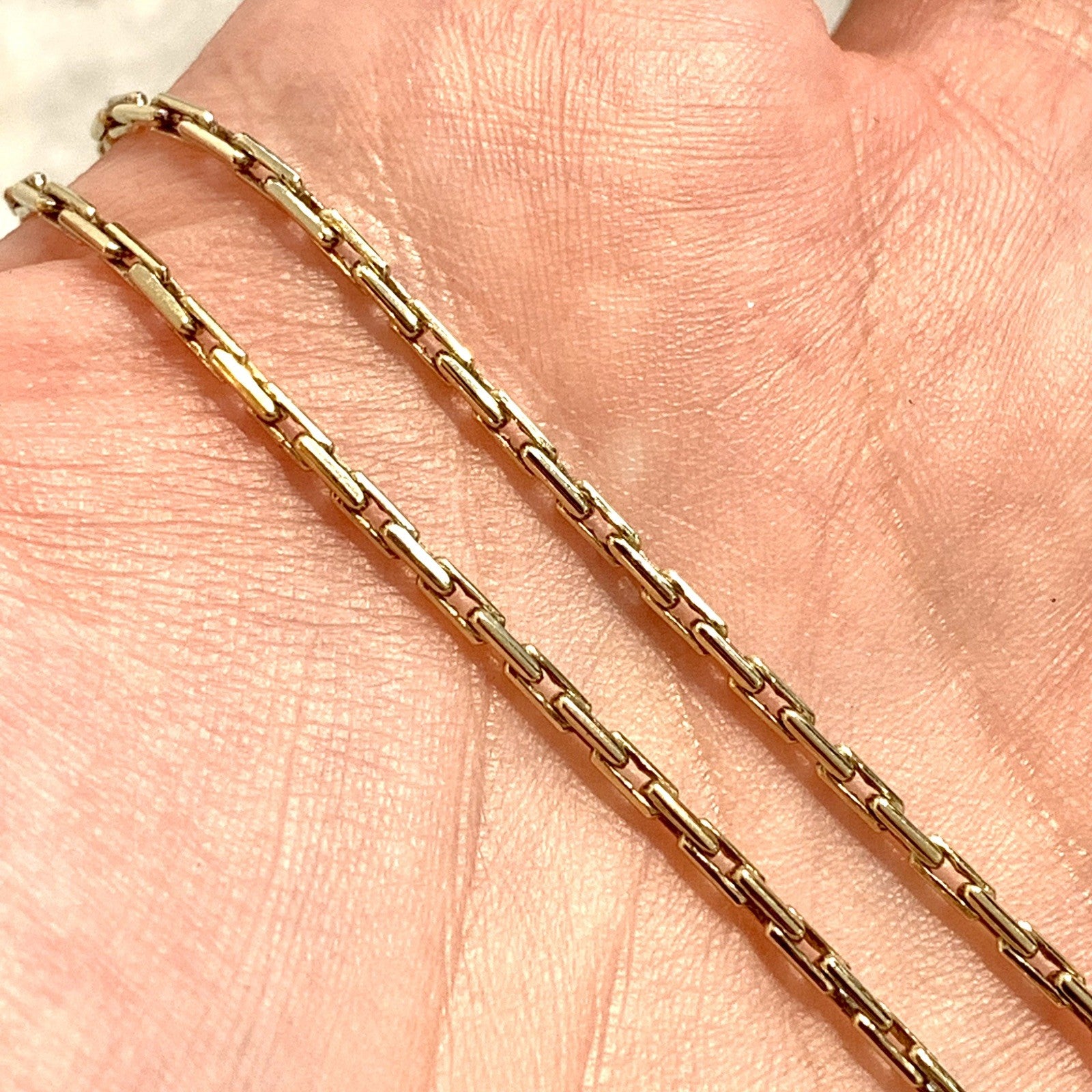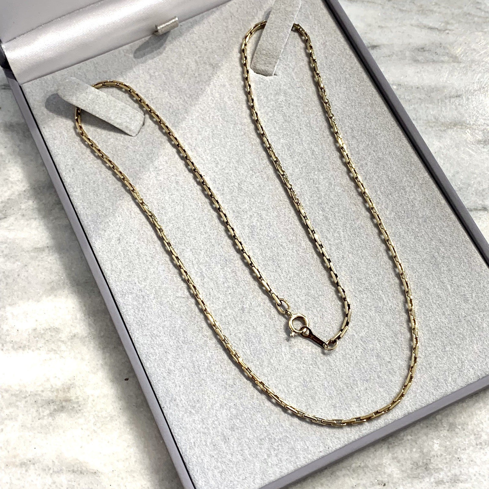 - A lovely gold necklace with an unusual brick / paperclip style link. Bolt ring closure.