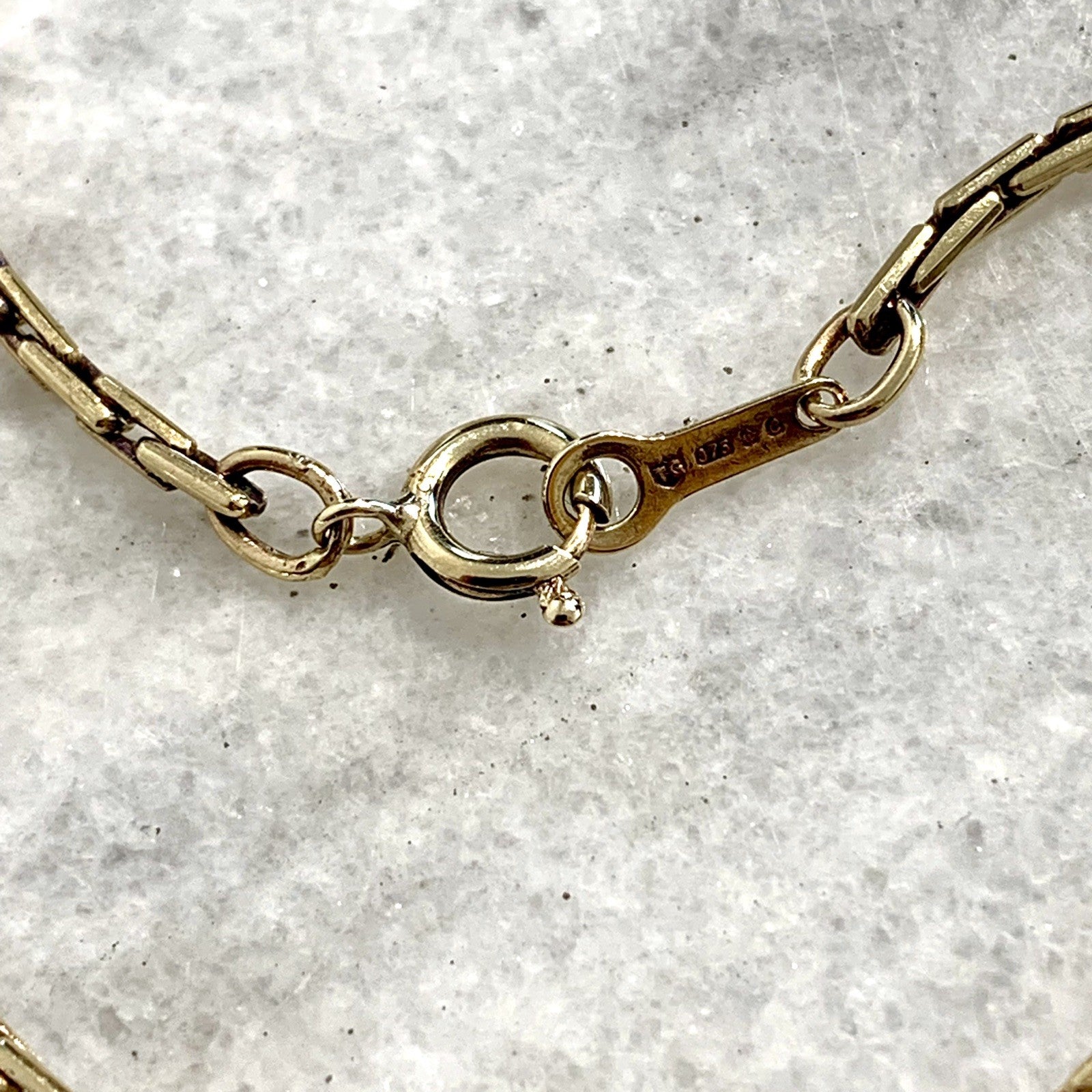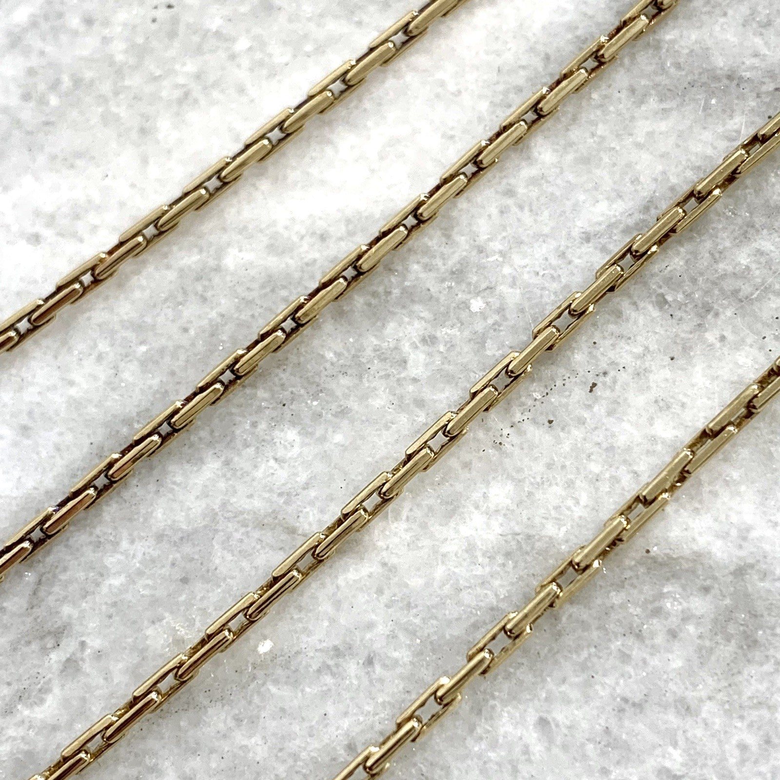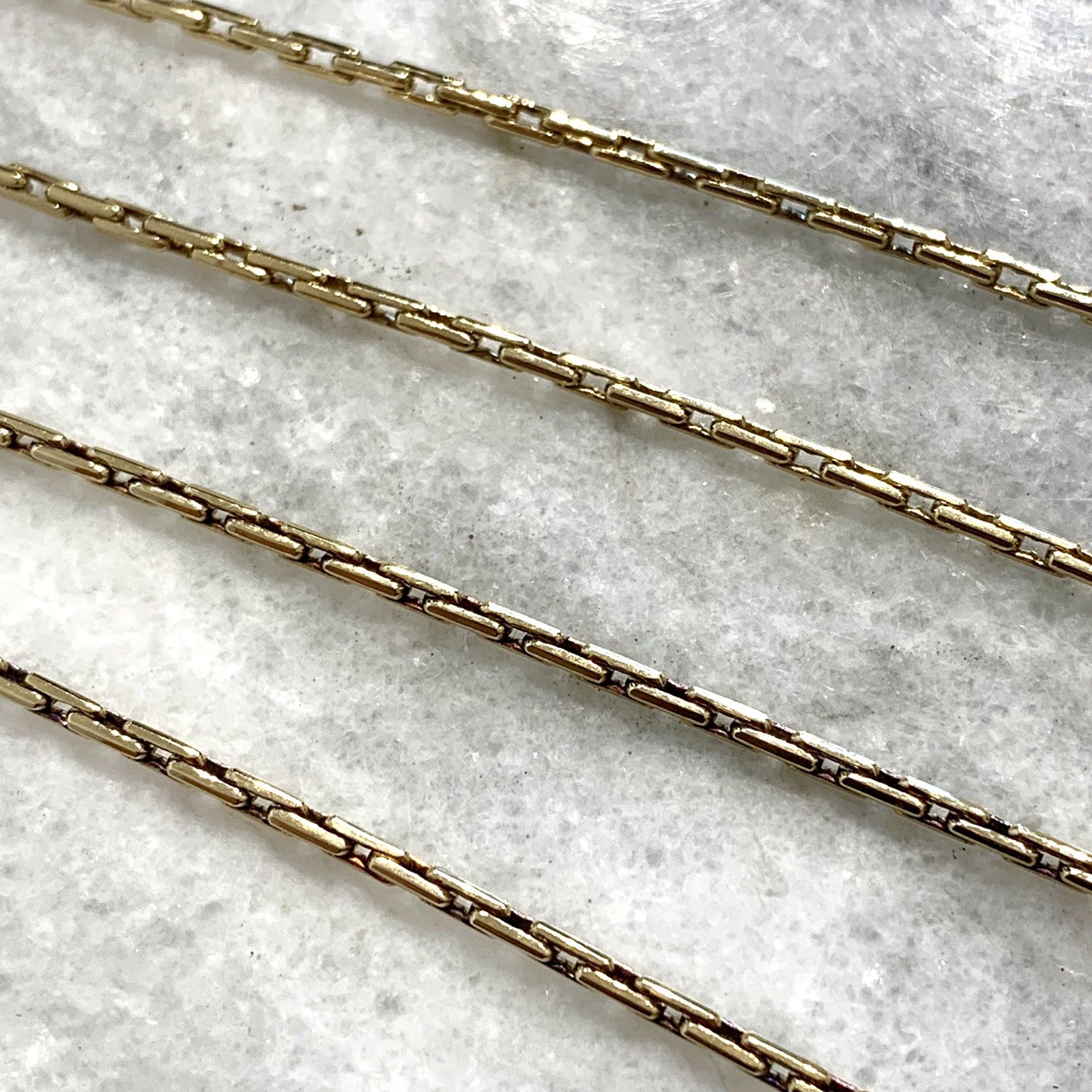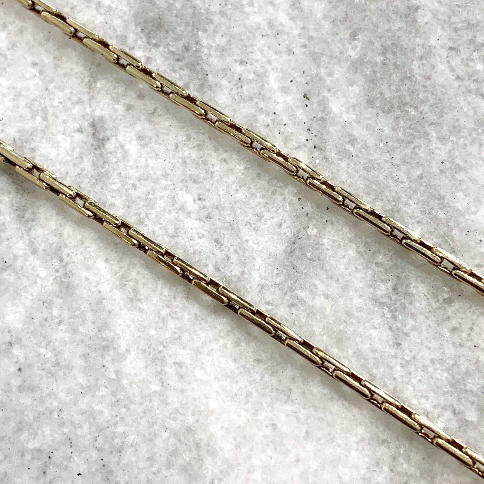 - A lovely gold necklace with an unusual brick / paperclip style link. Bolt ring closure.