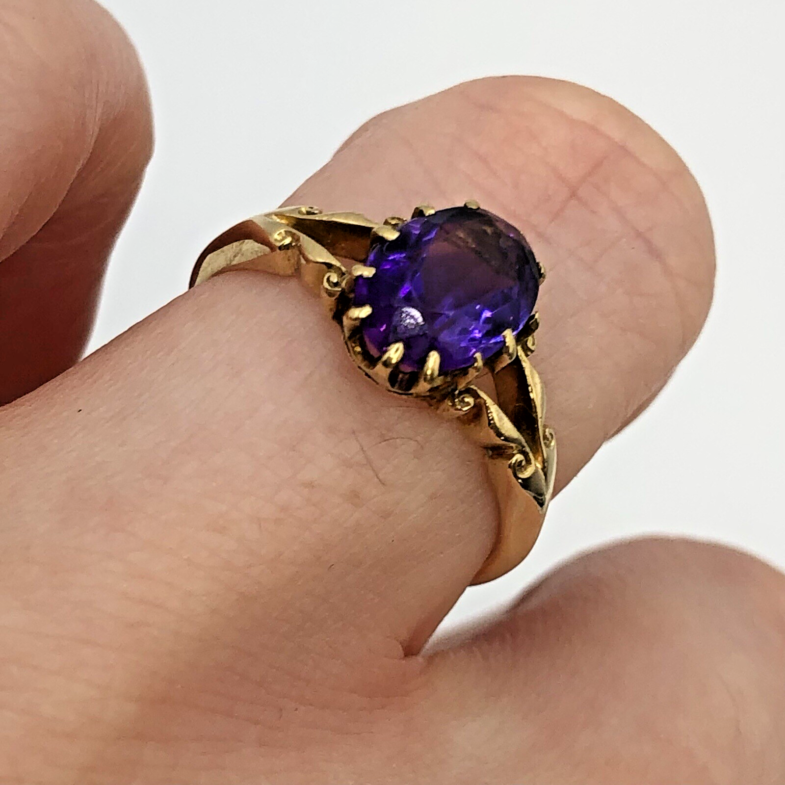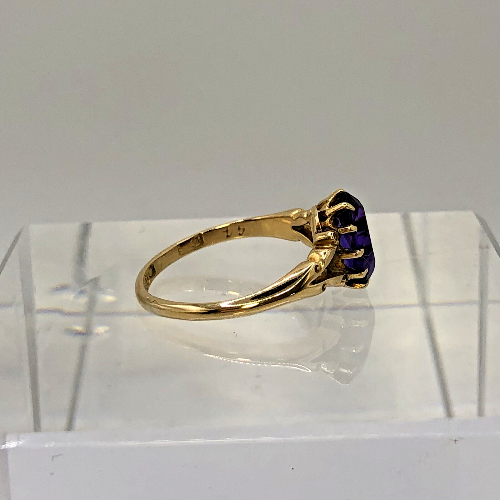 Amethyst 18 ct Gold Ring Antique Solitaire Open Shoulder - Size K 1/2