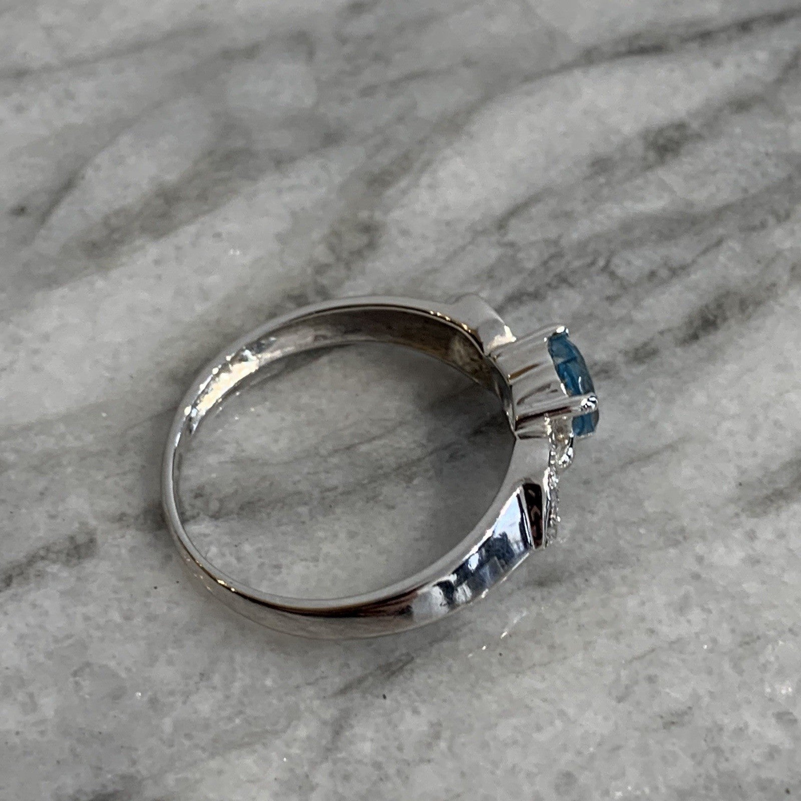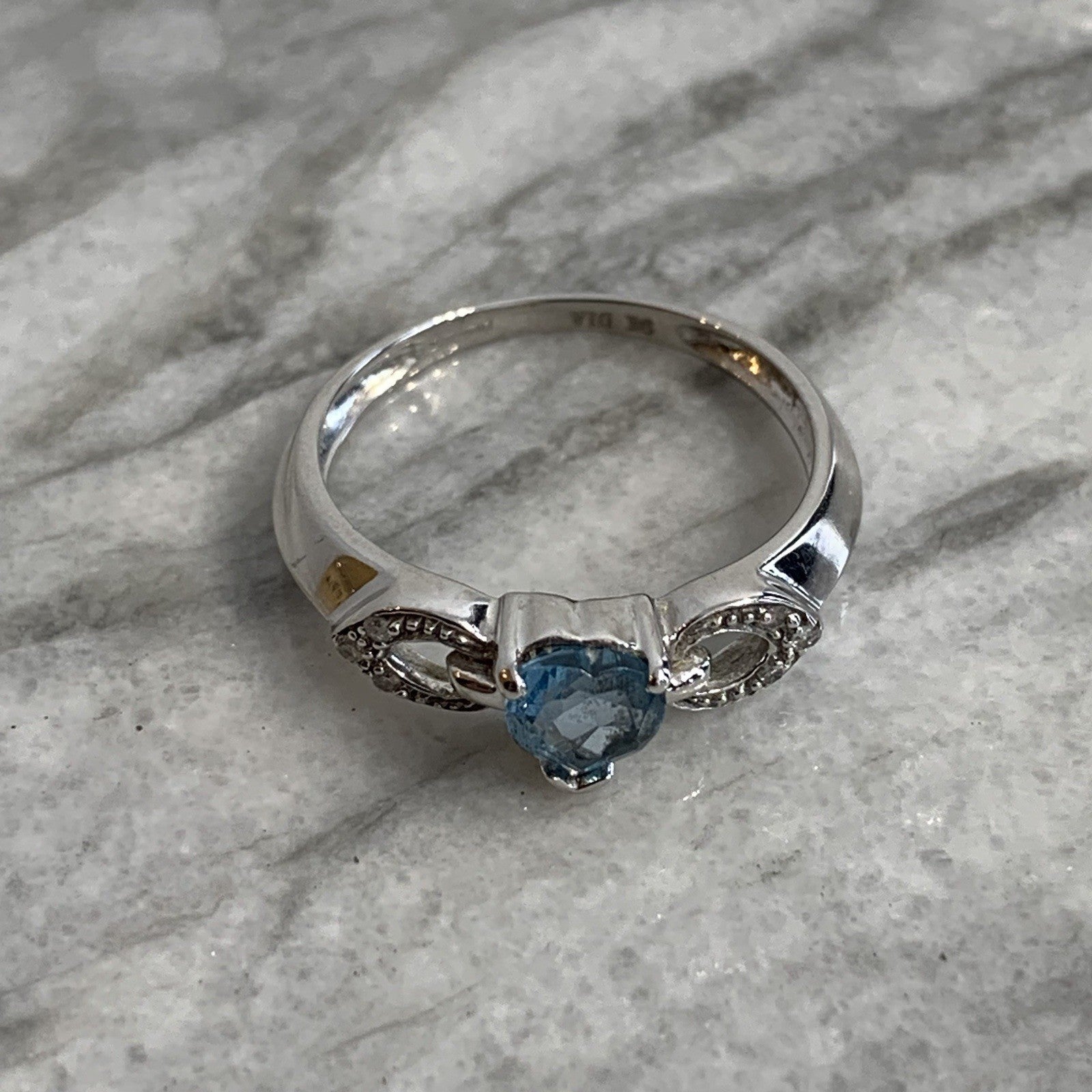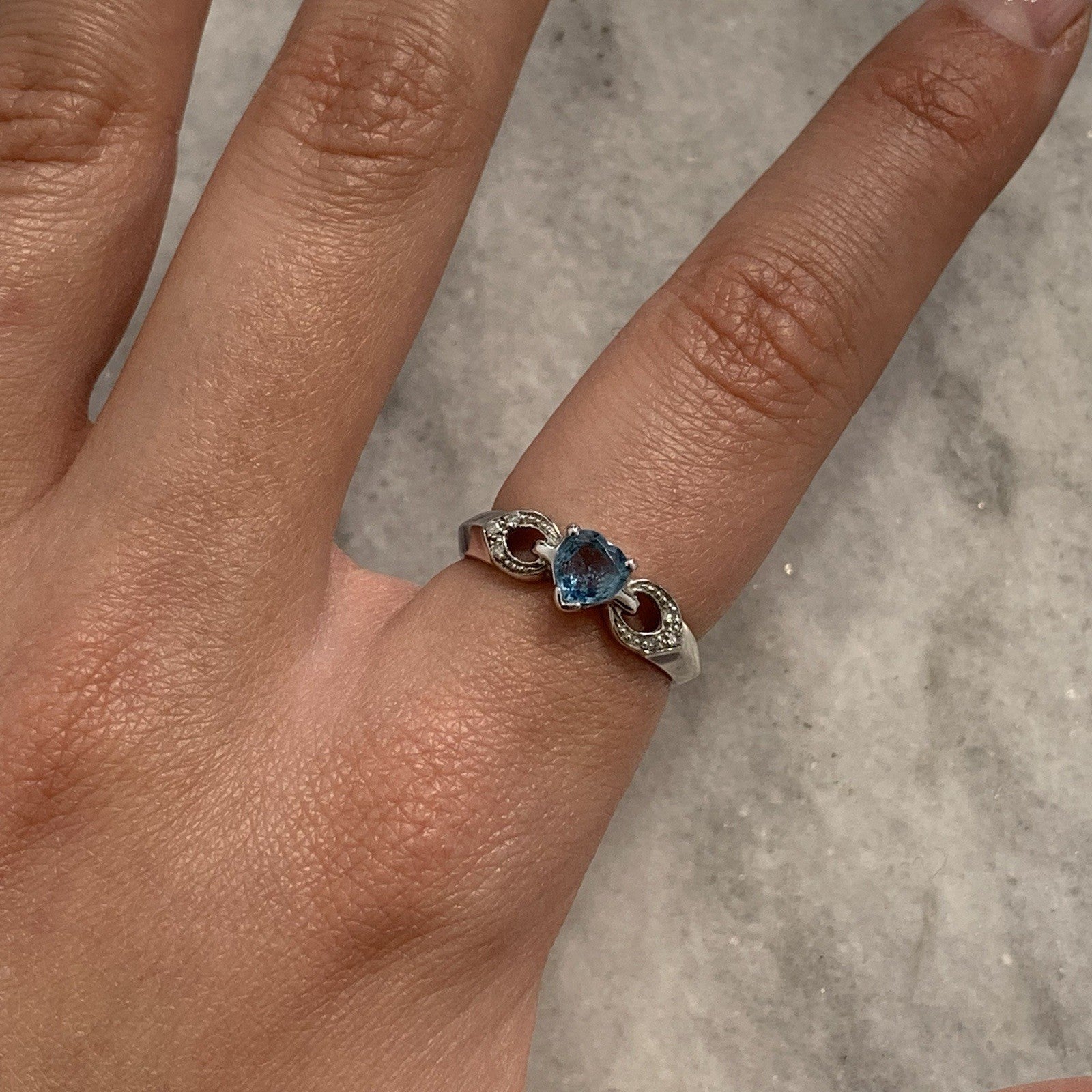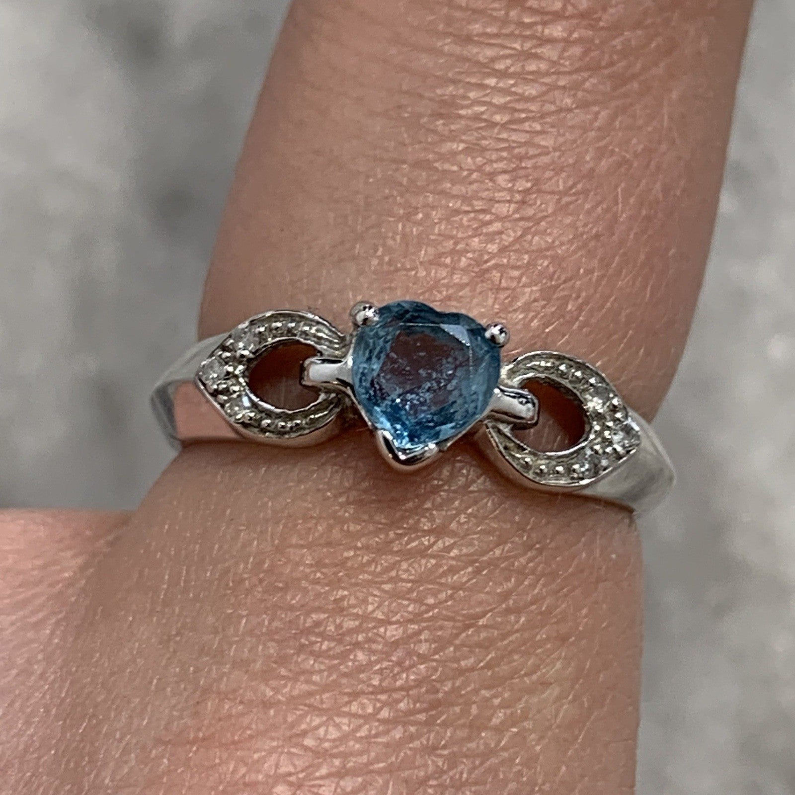 Blue Topaz Heart With Open Diamond Shoulders Ring 9ct 375 White Gold - Size M