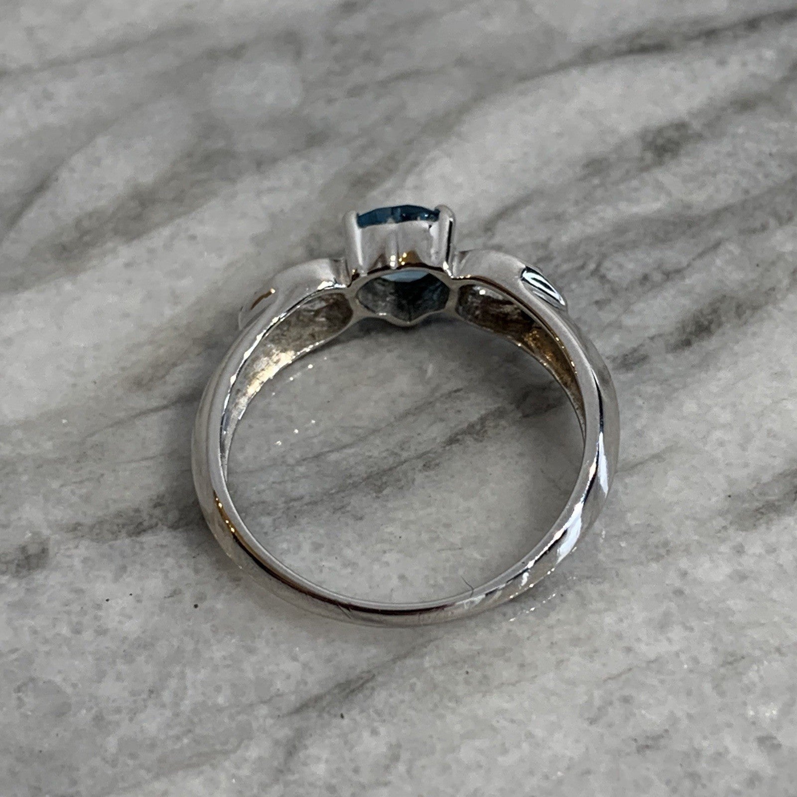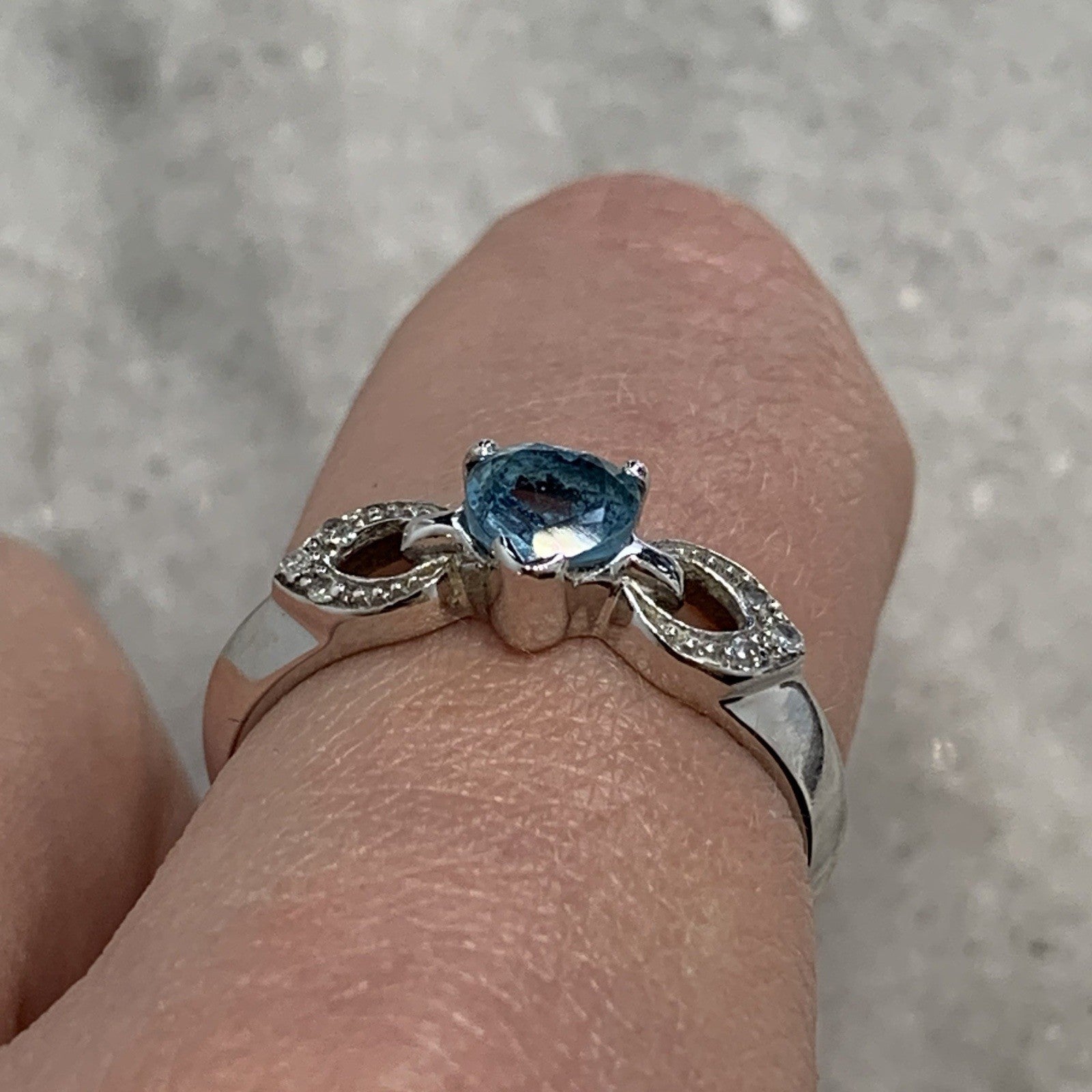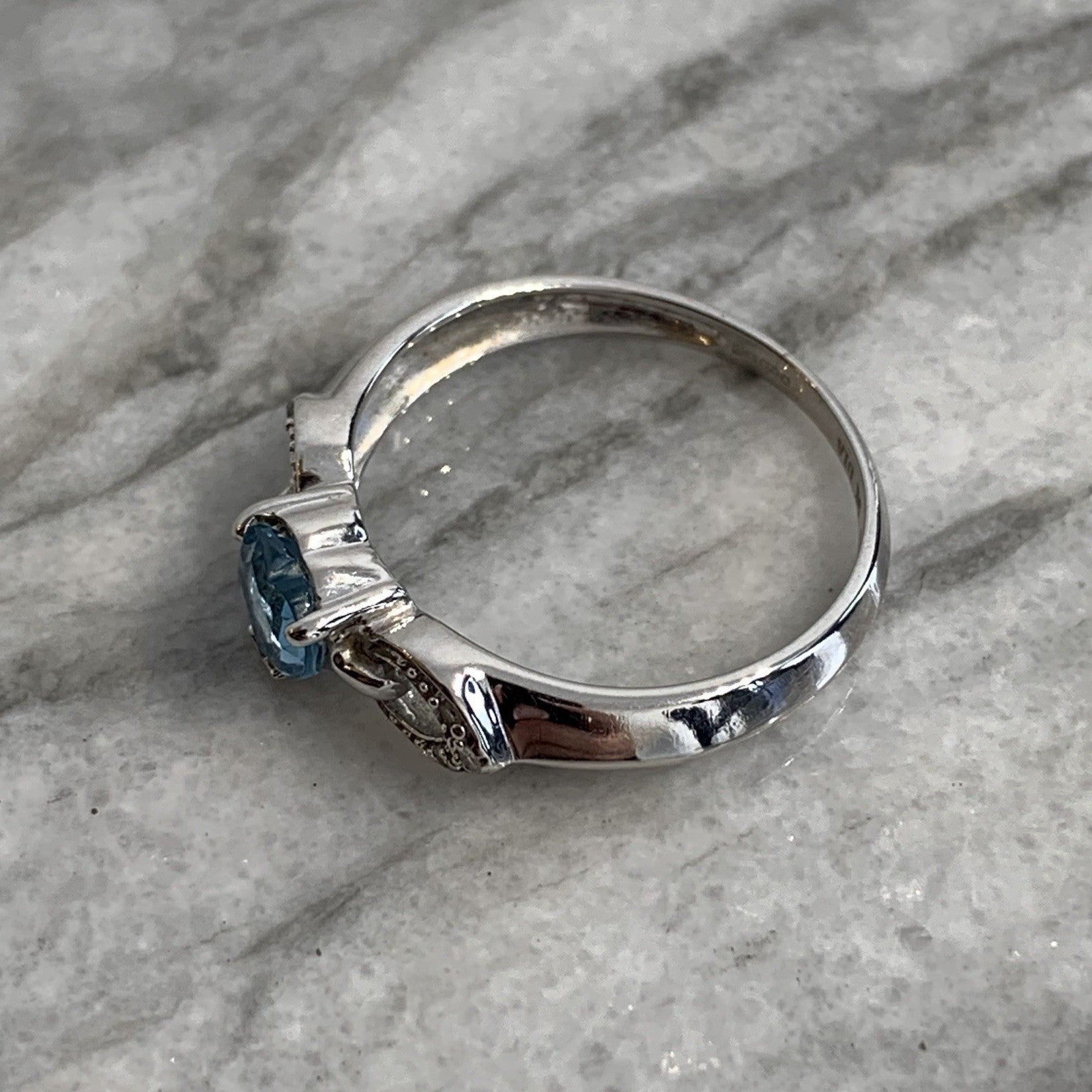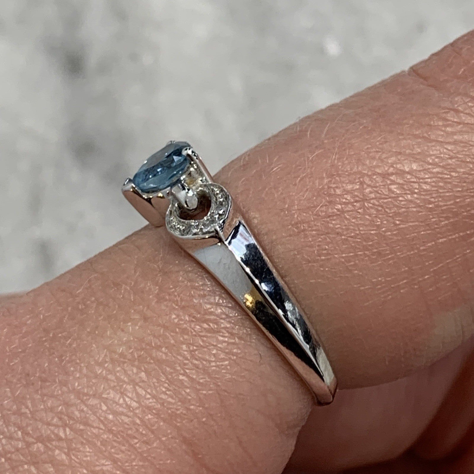 Blue Topaz Heart With Open Diamond Shoulders Ring 9ct 375 White Gold - Size M