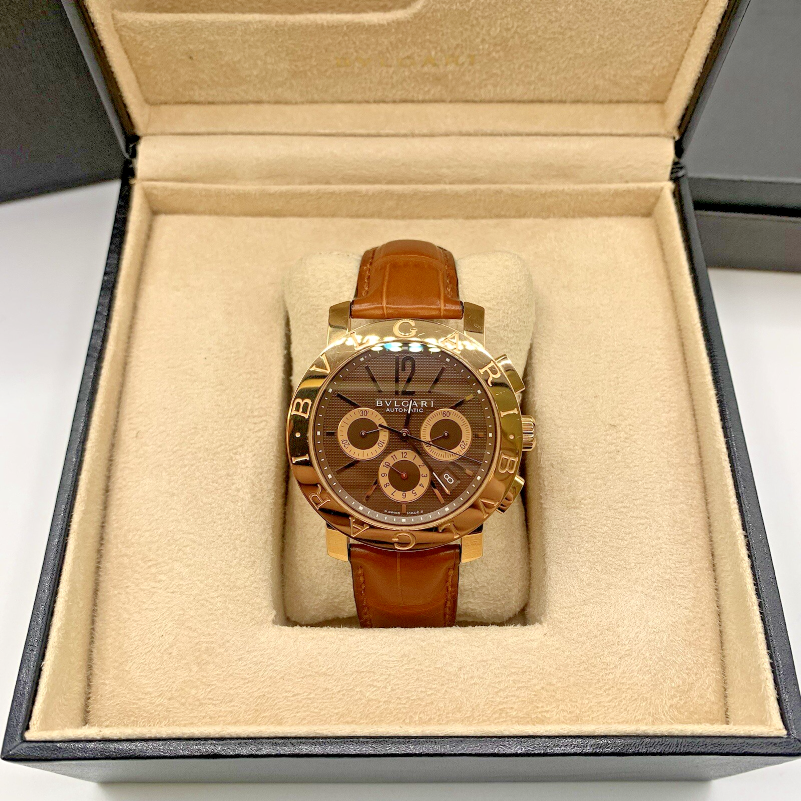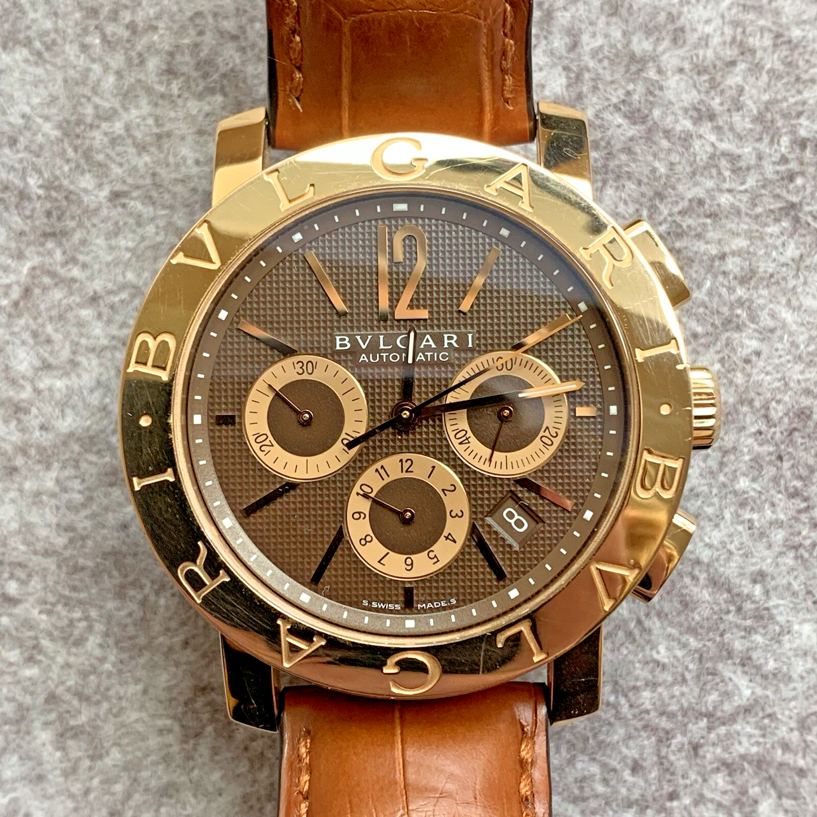 BVLGARI Bulgari Rare 18K Gold Automatic Chronograph Watch Brown BBP42GLCH