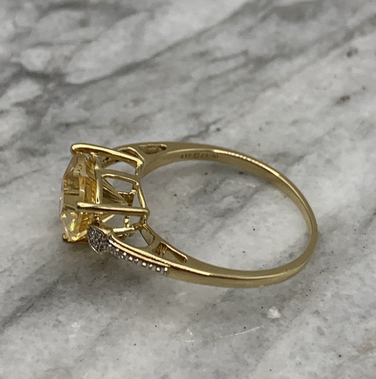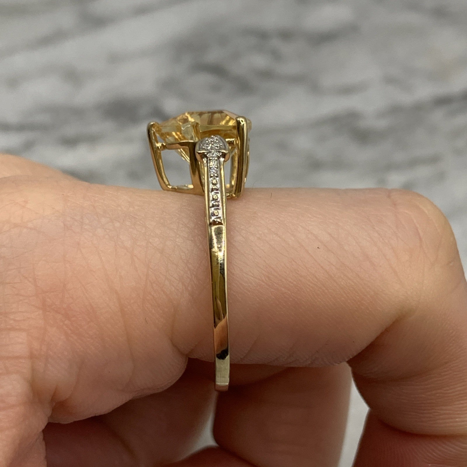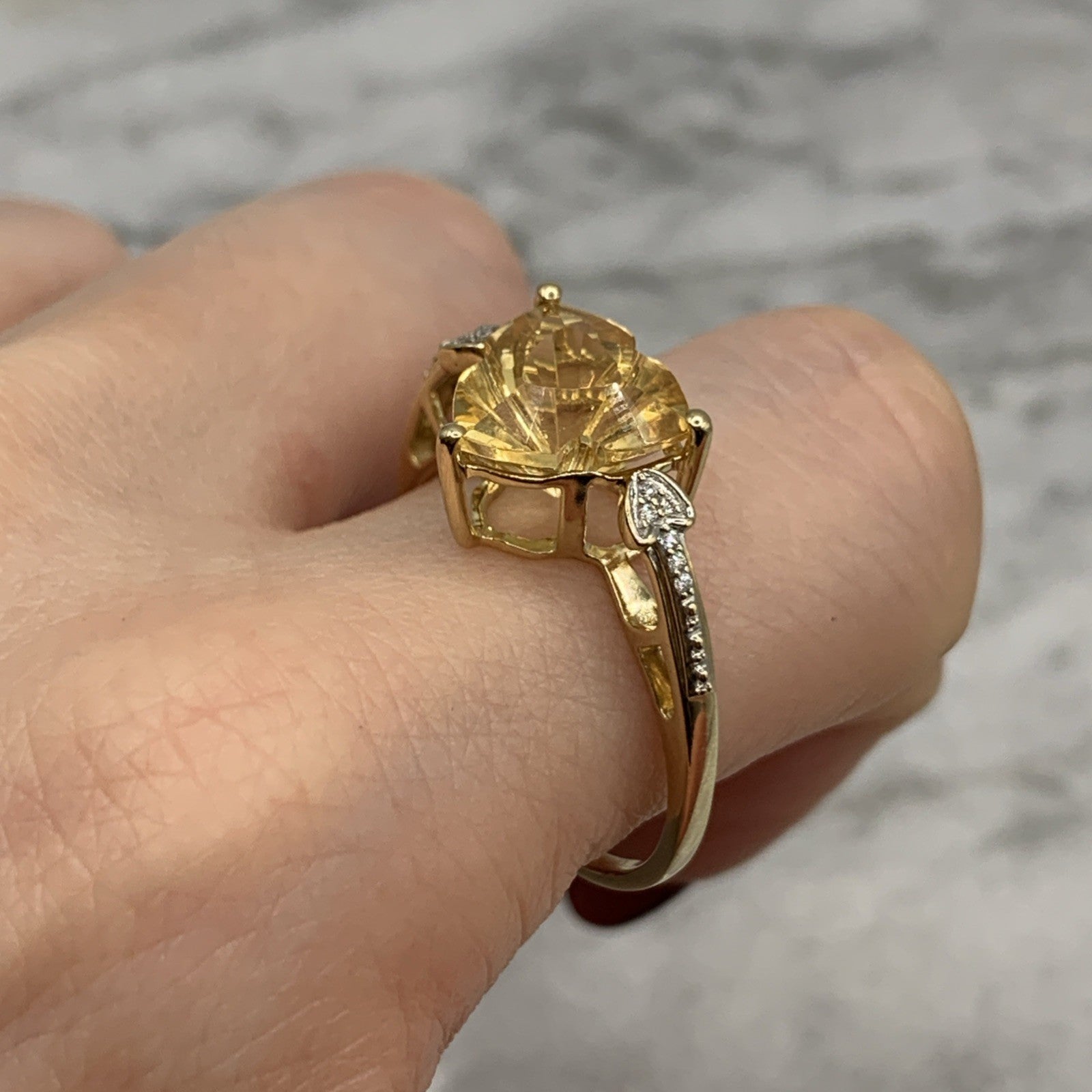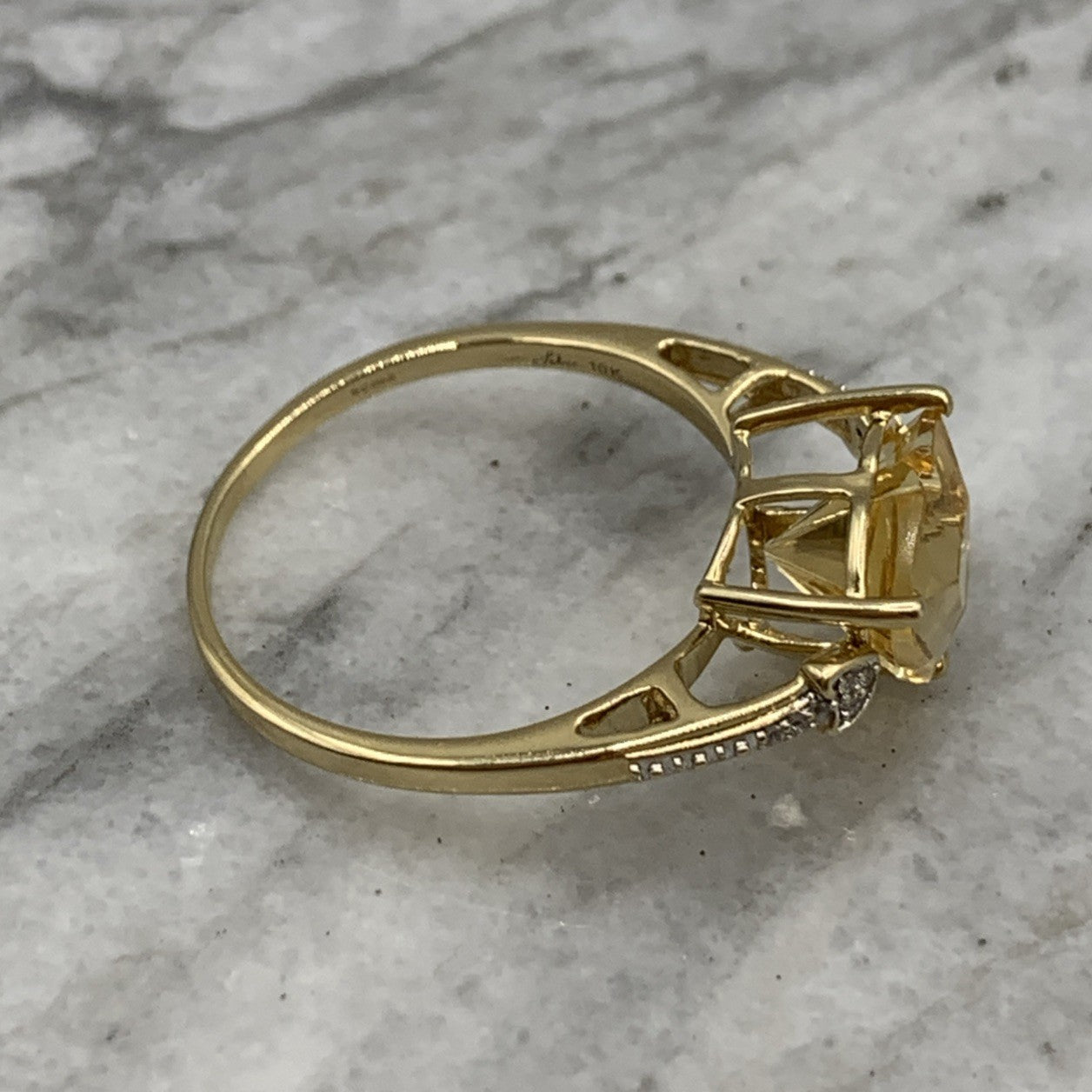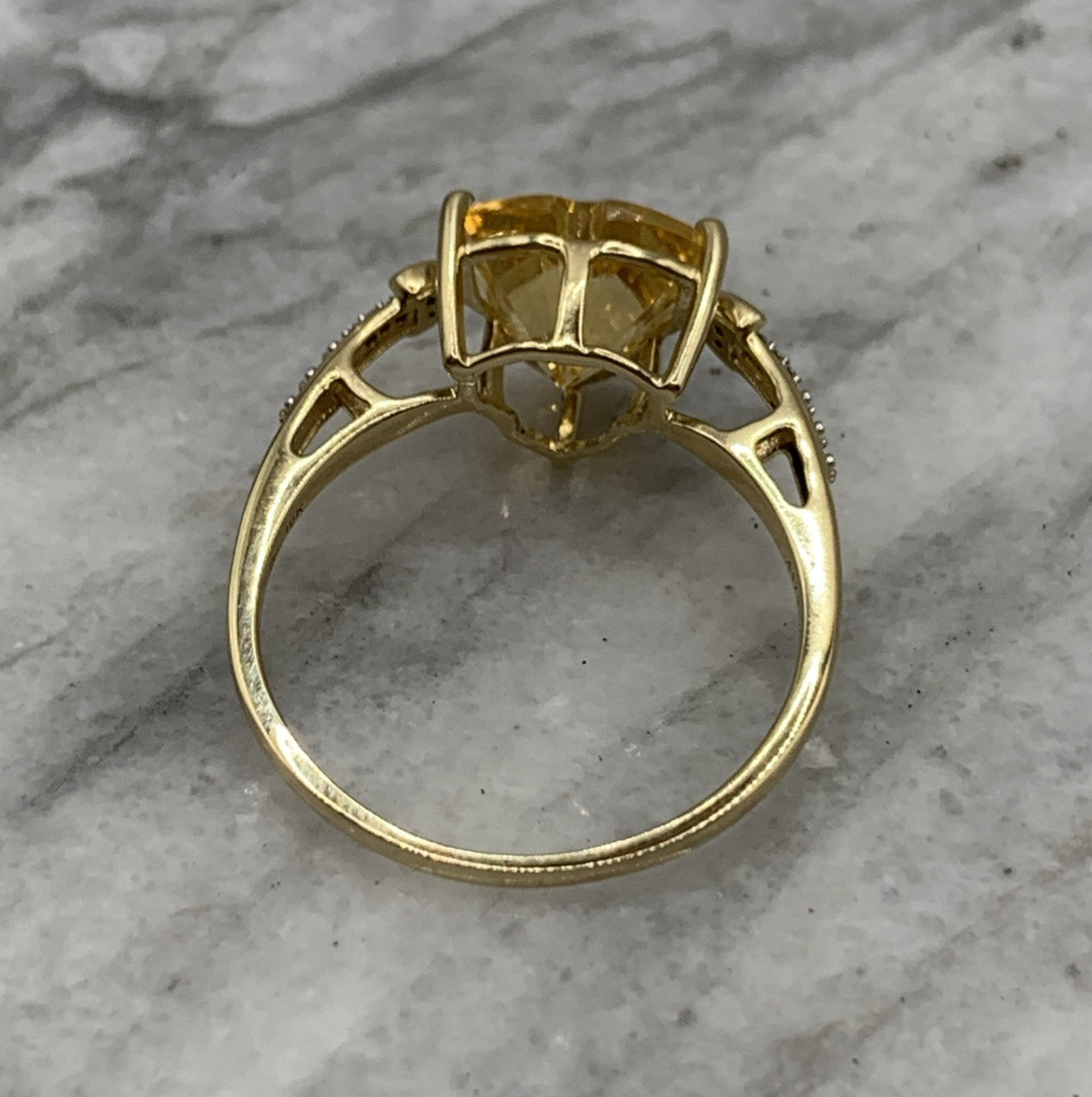 Citrine Ring 10 ct Gold Fancy Cut Diamond Accent 417 Yellow Gold - Size V