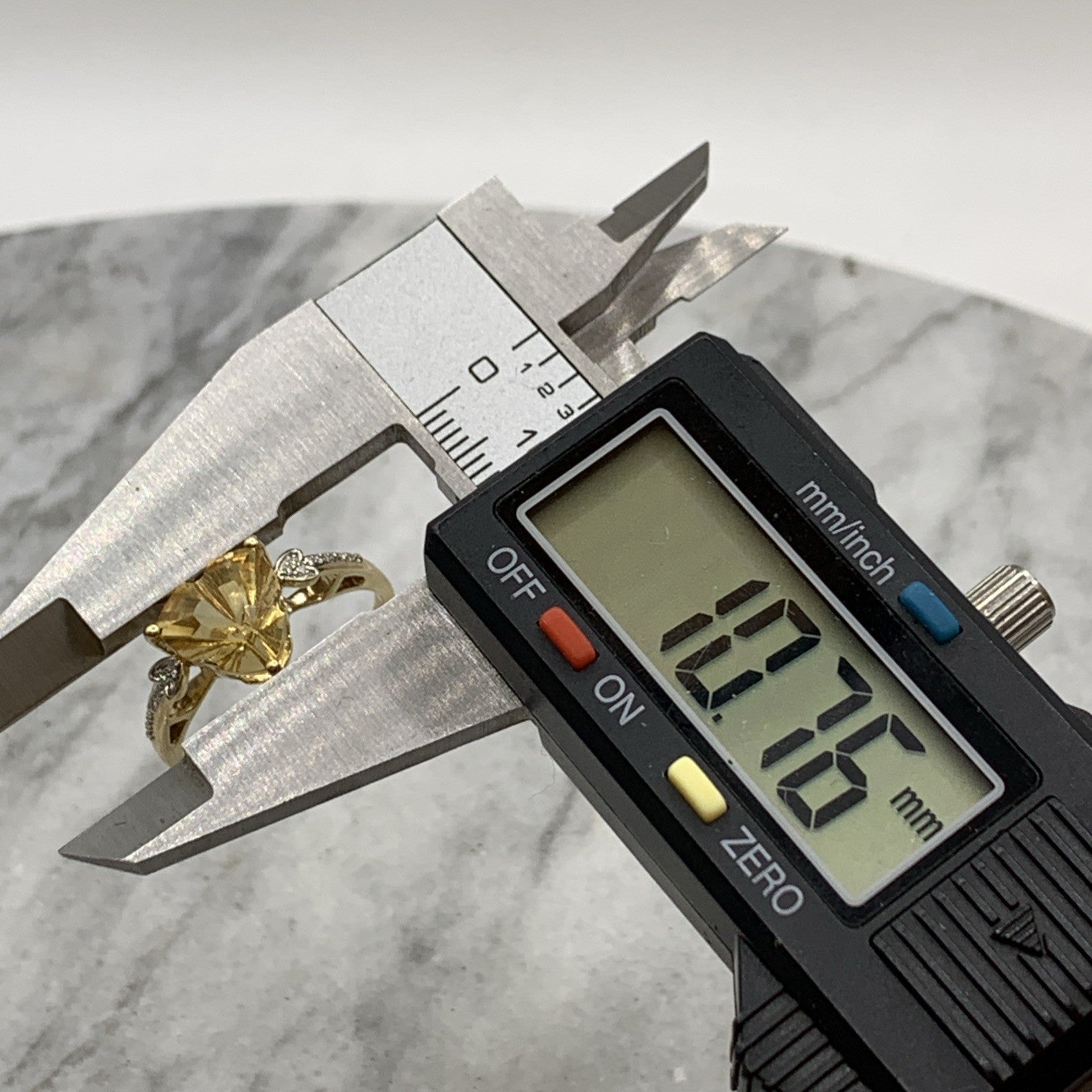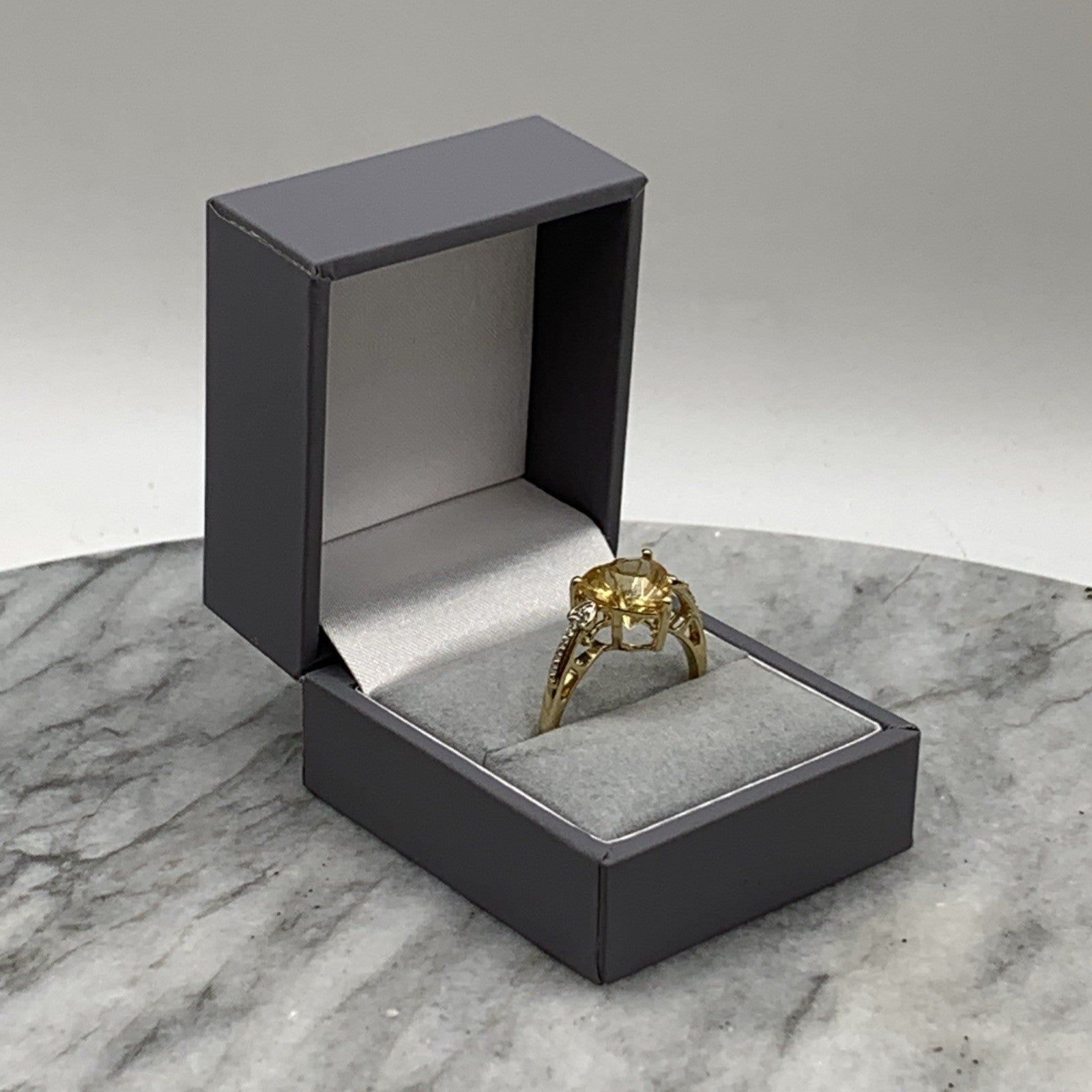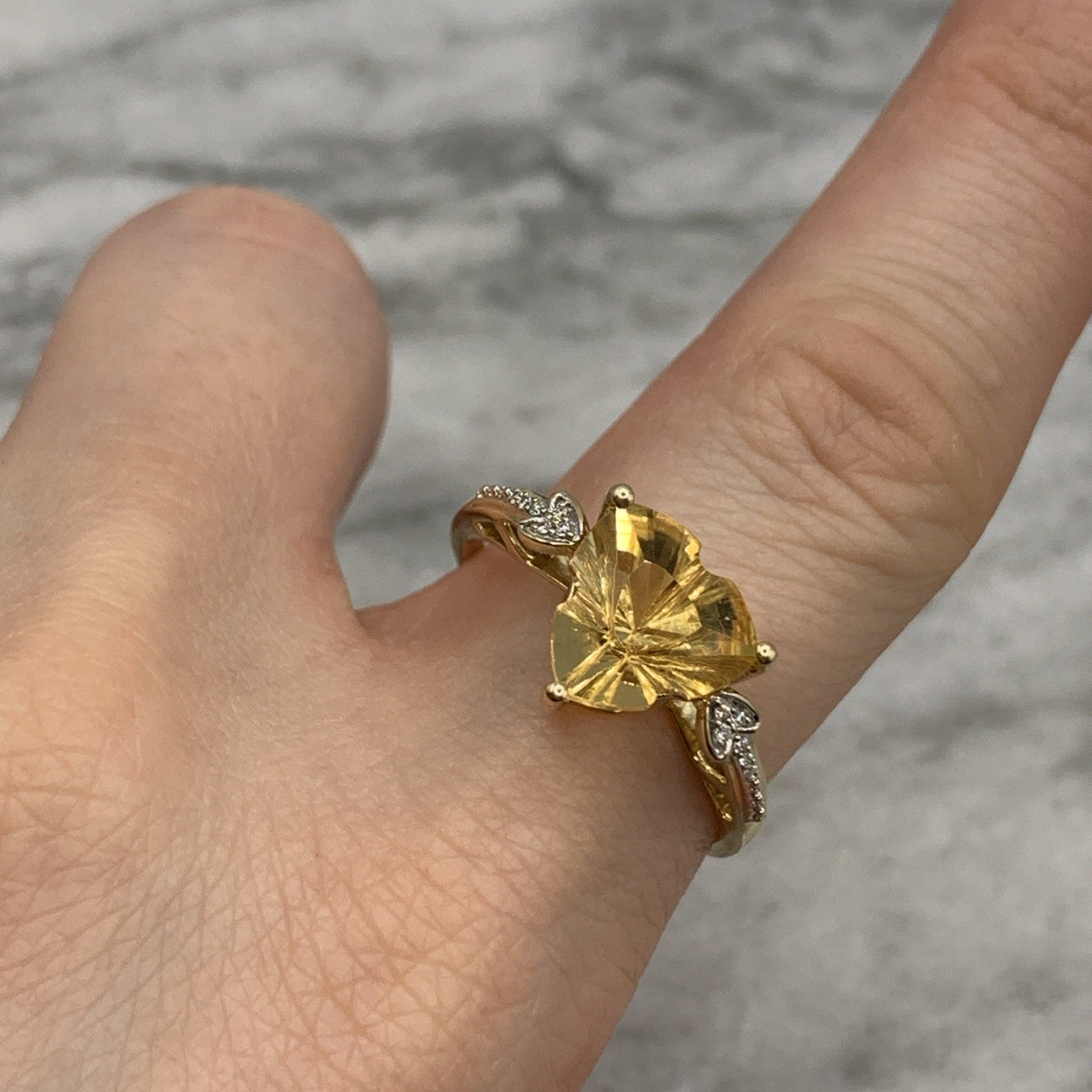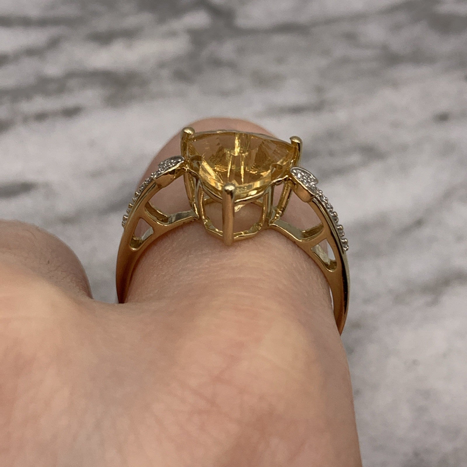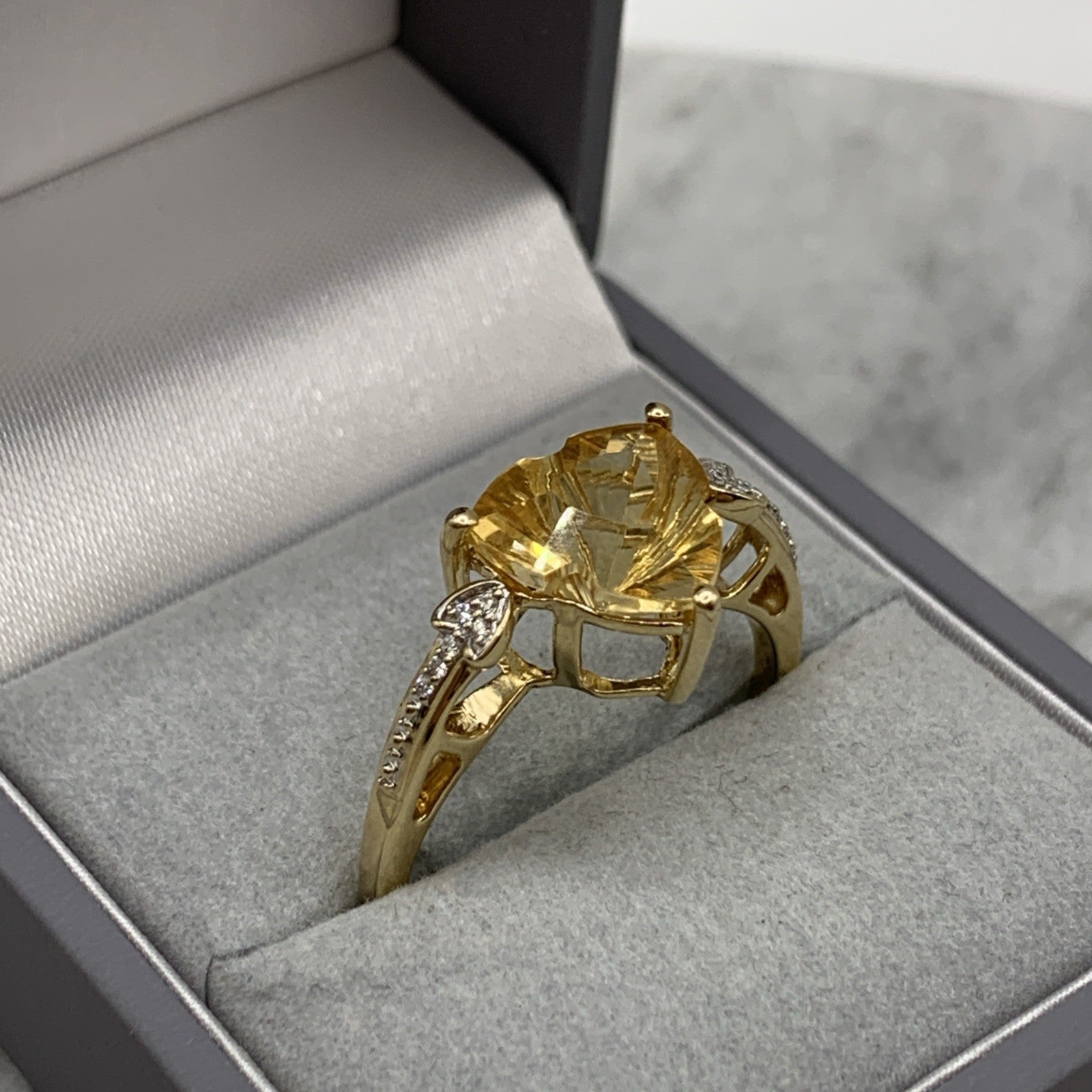 Citrine Ring 10 ct Gold Fancy Cut Diamond Accent 417 Yellow Gold - Size V