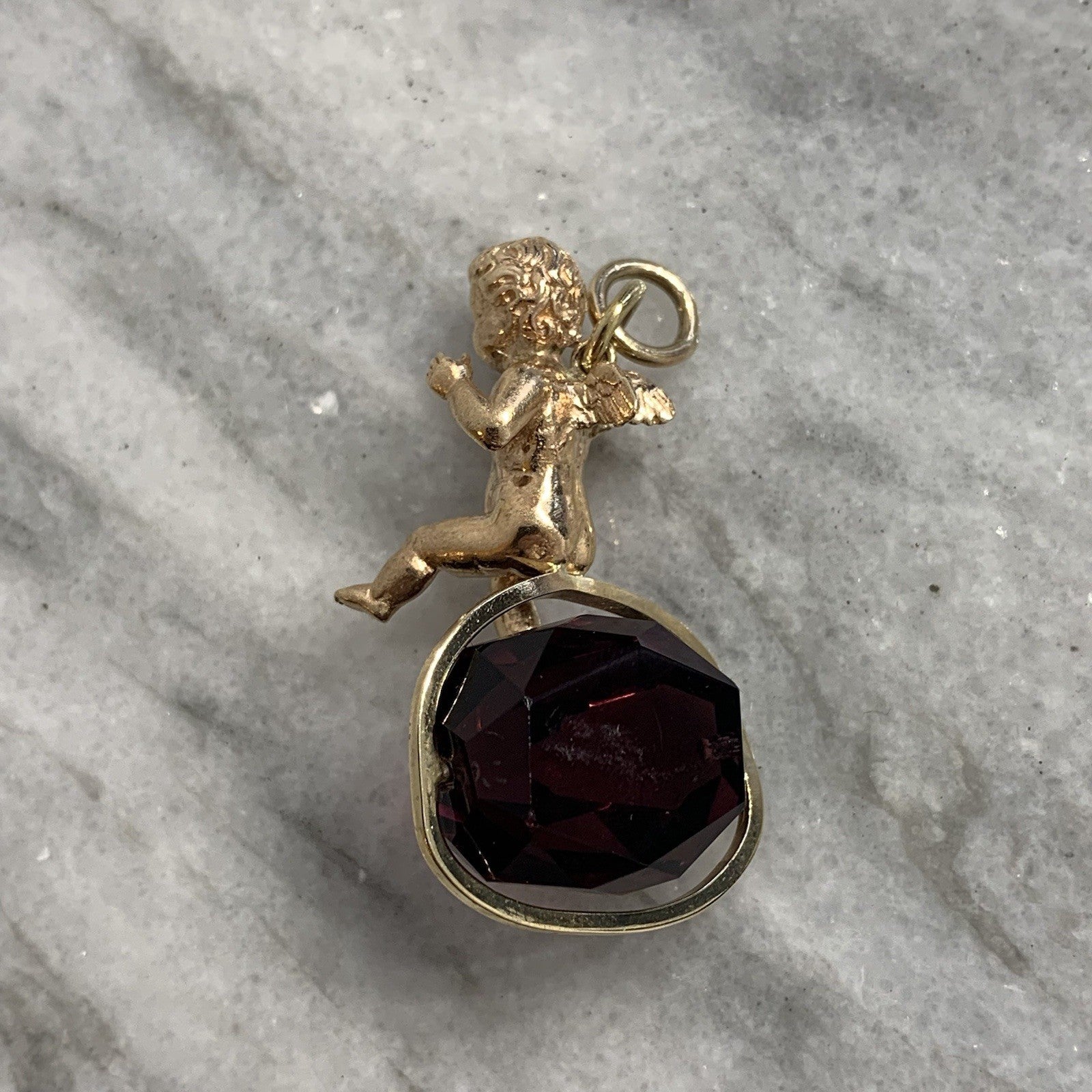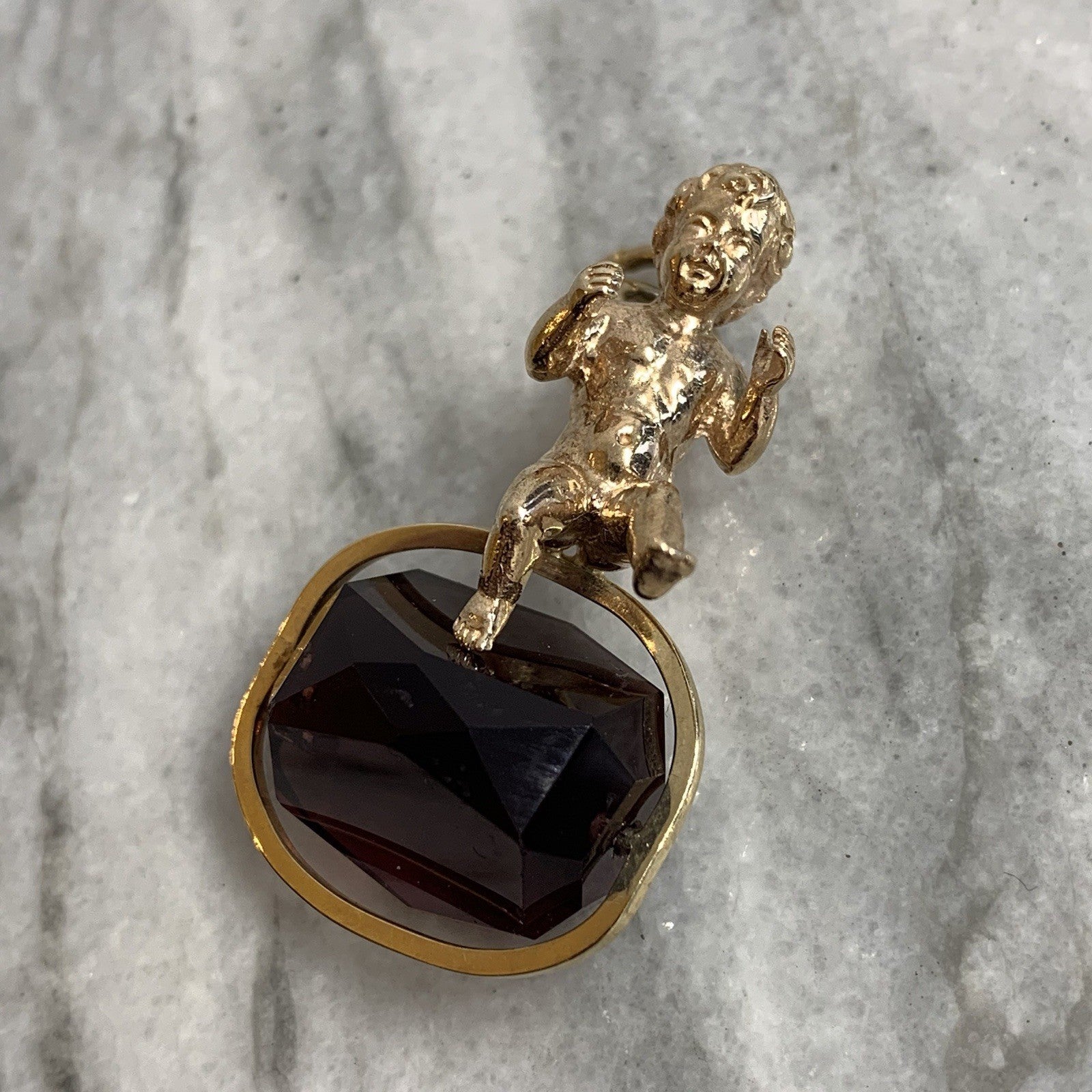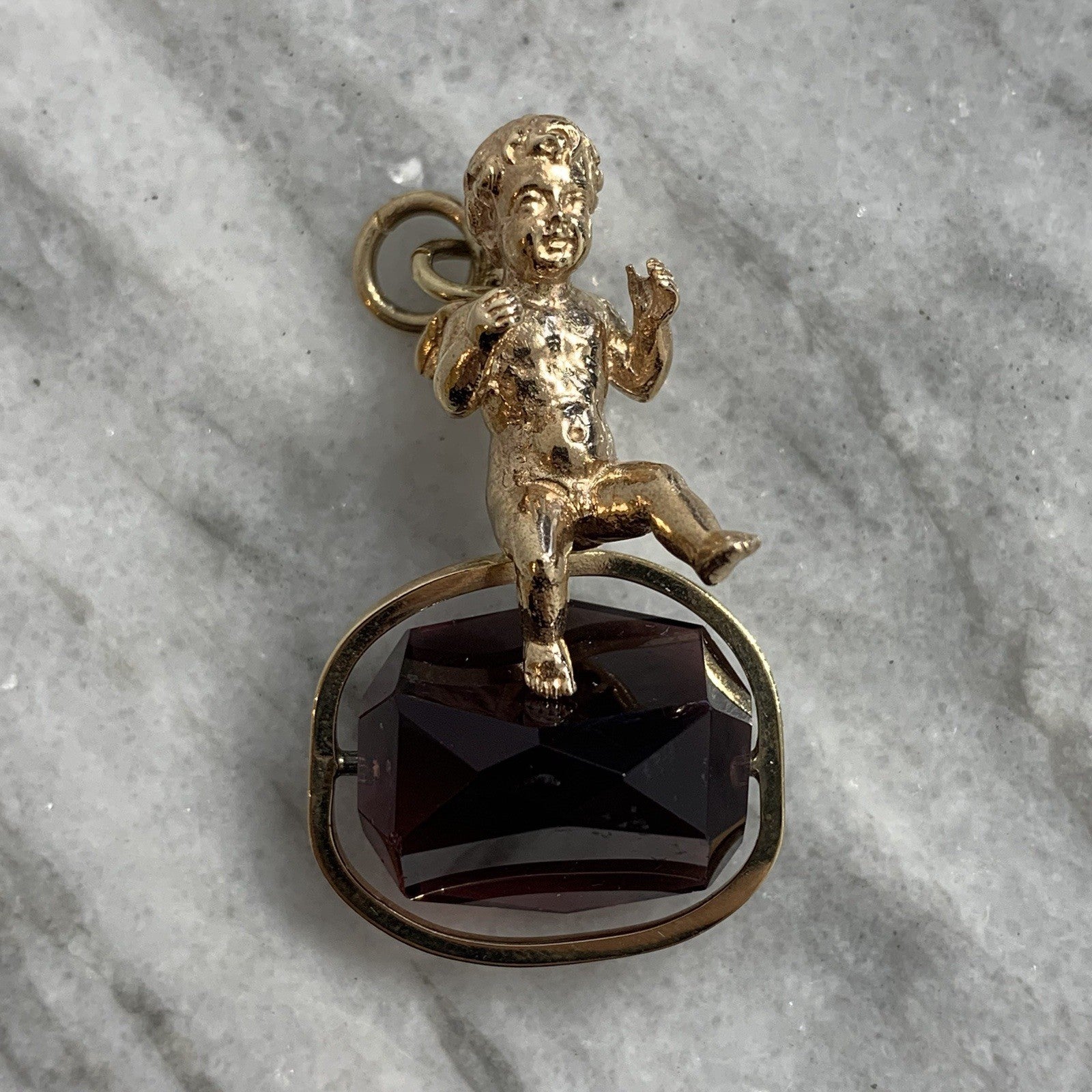 Cupid Swivel Fob Antique Glass Stone Pendant 9ct 375 Rose Gold
