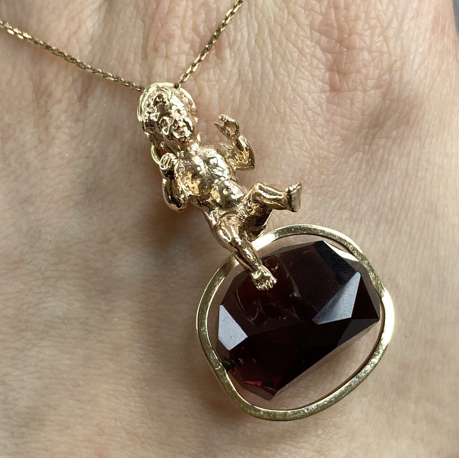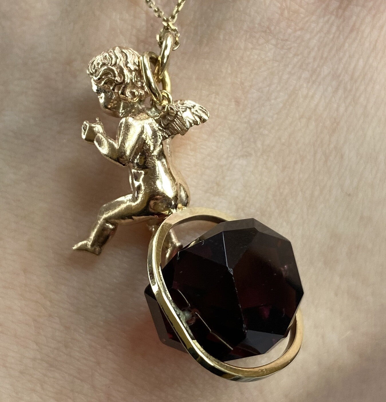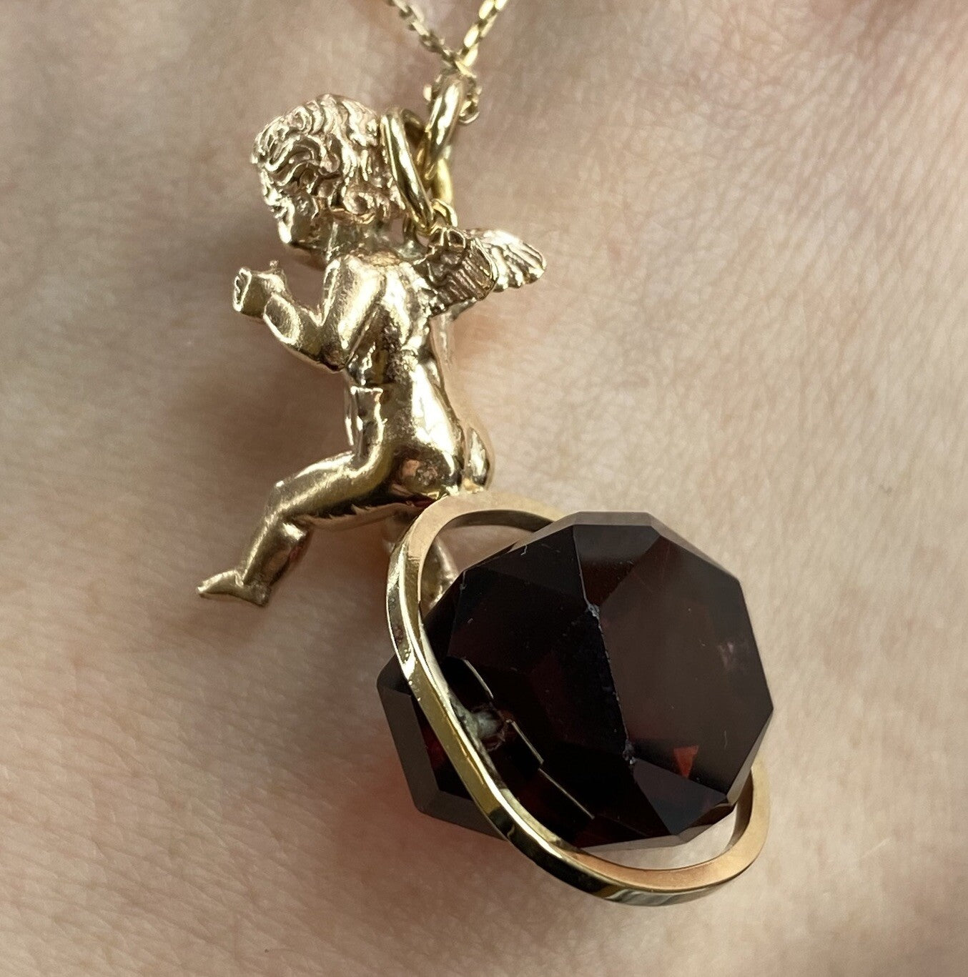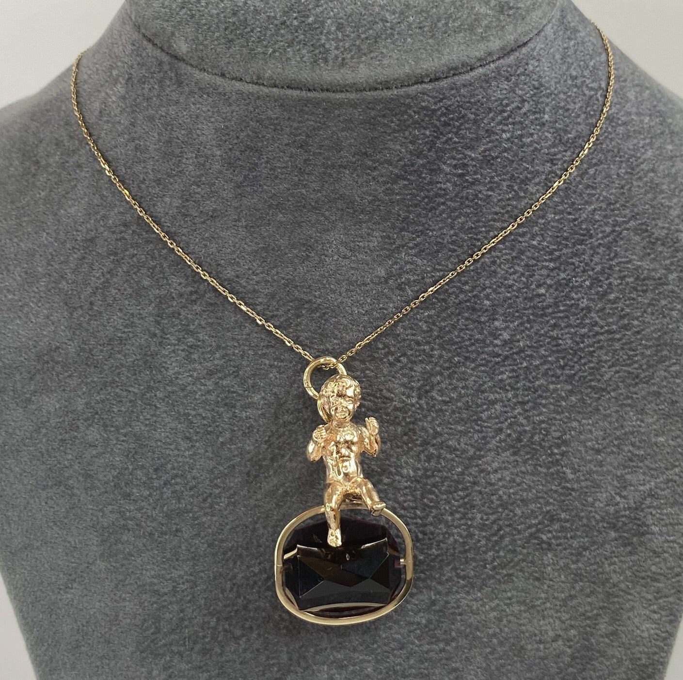 Cupid Swivel Fob Antique Glass Stone Pendant 9ct 375 Rose Gold