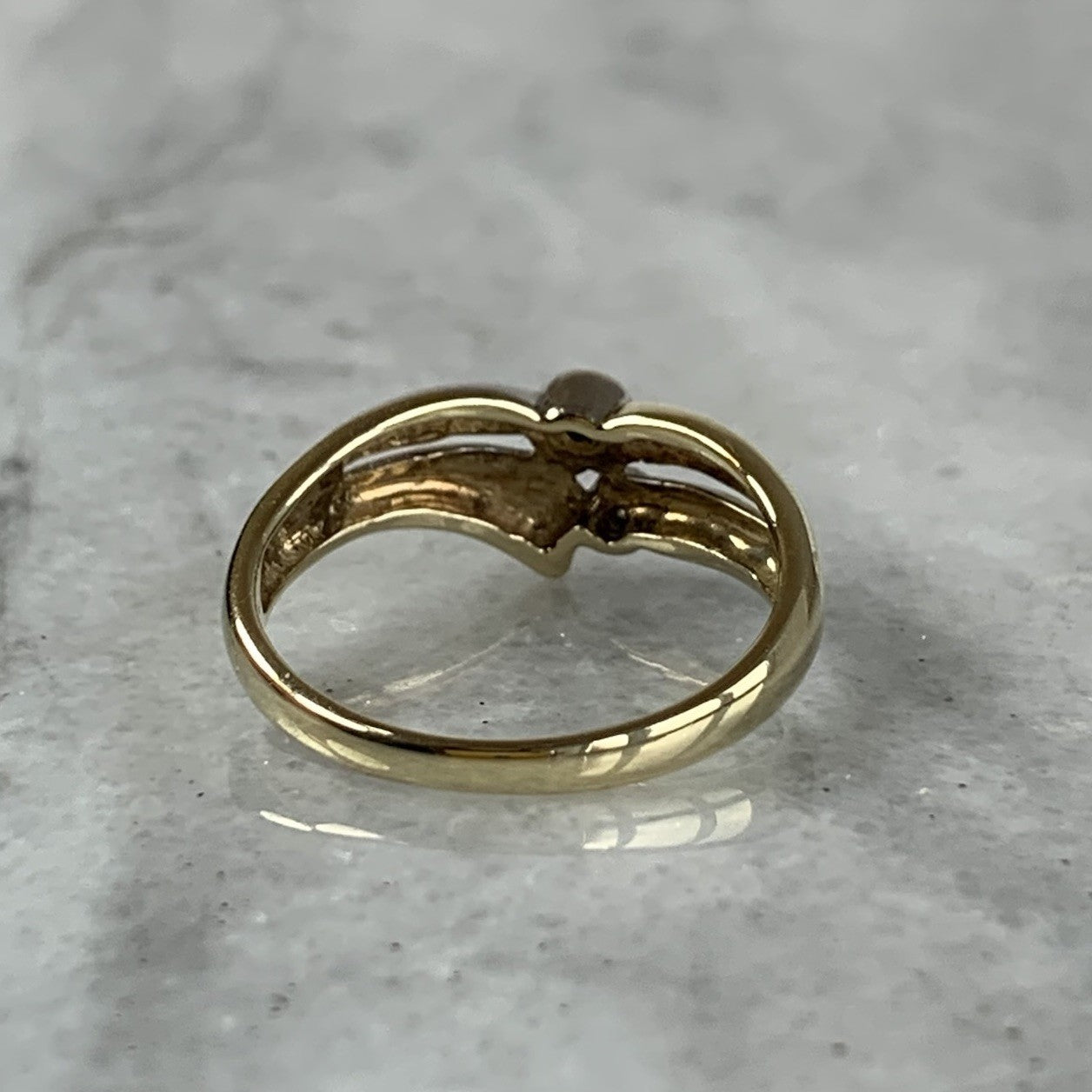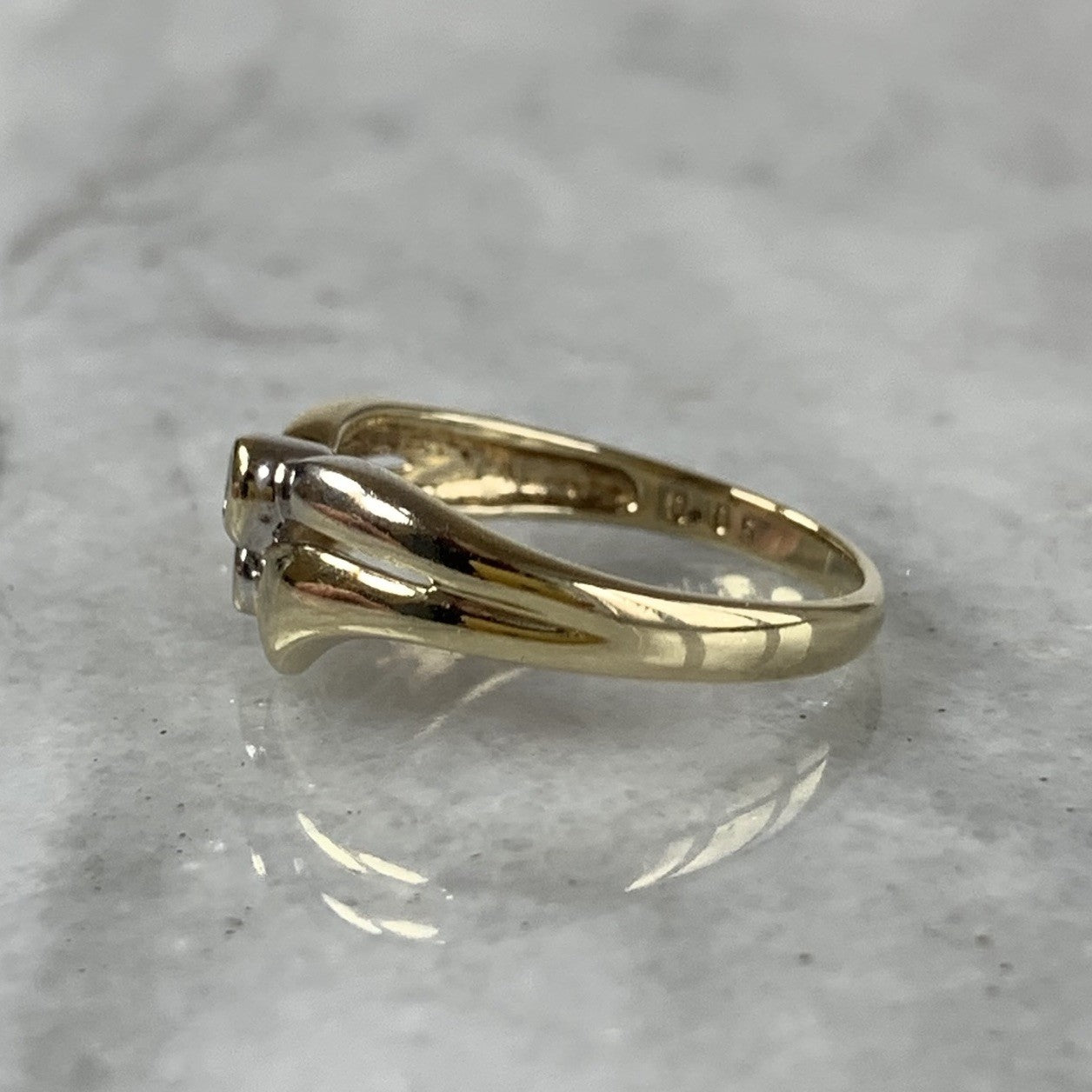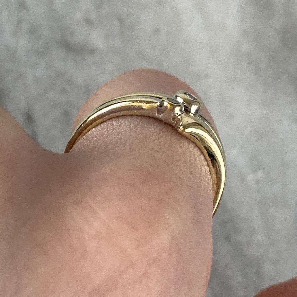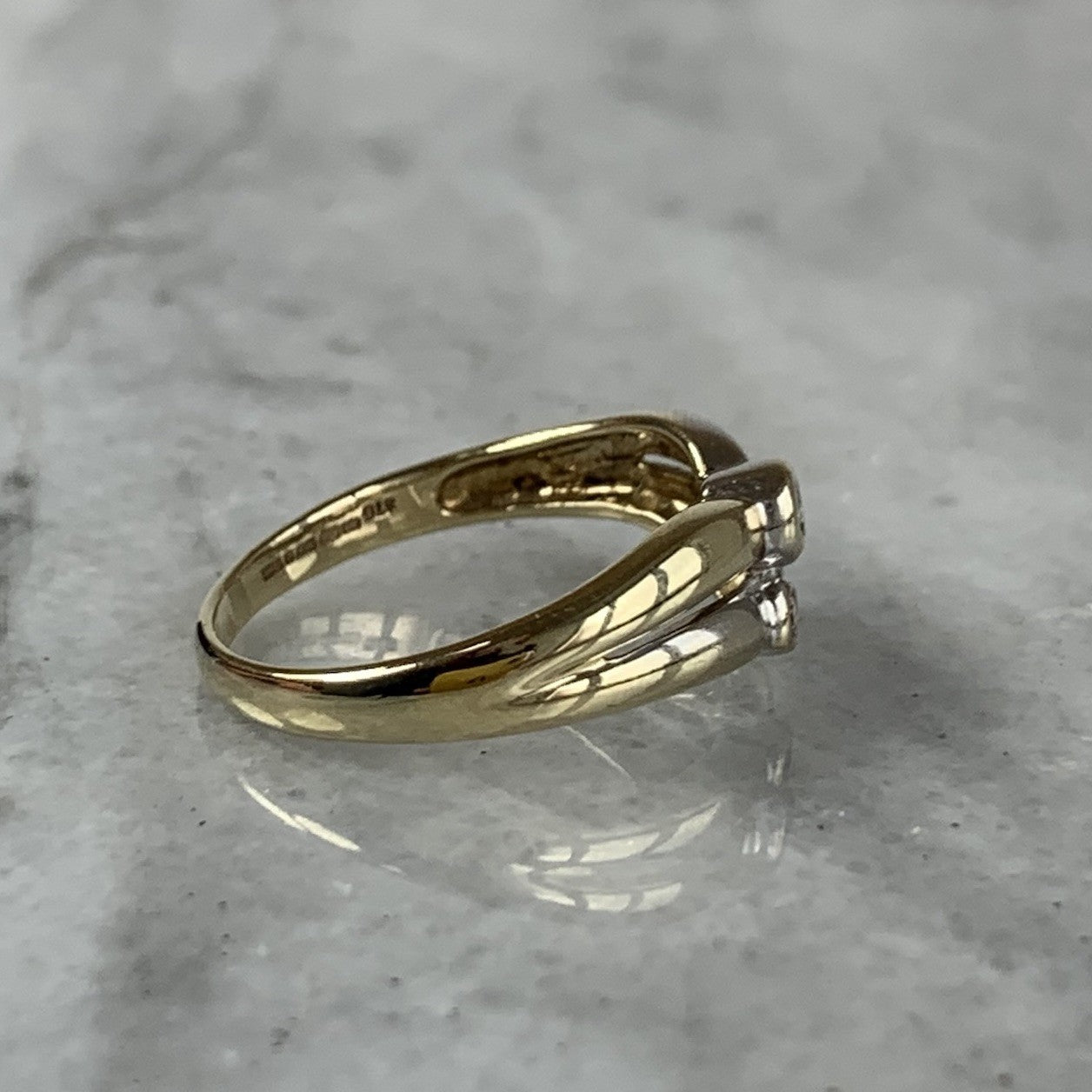 Diamond .05ct Double Wishbone Bezel Set Ring 9ct 375 Yellow Gold - Size O 1/2