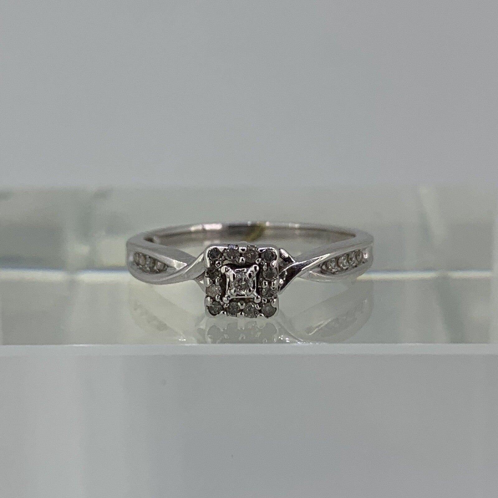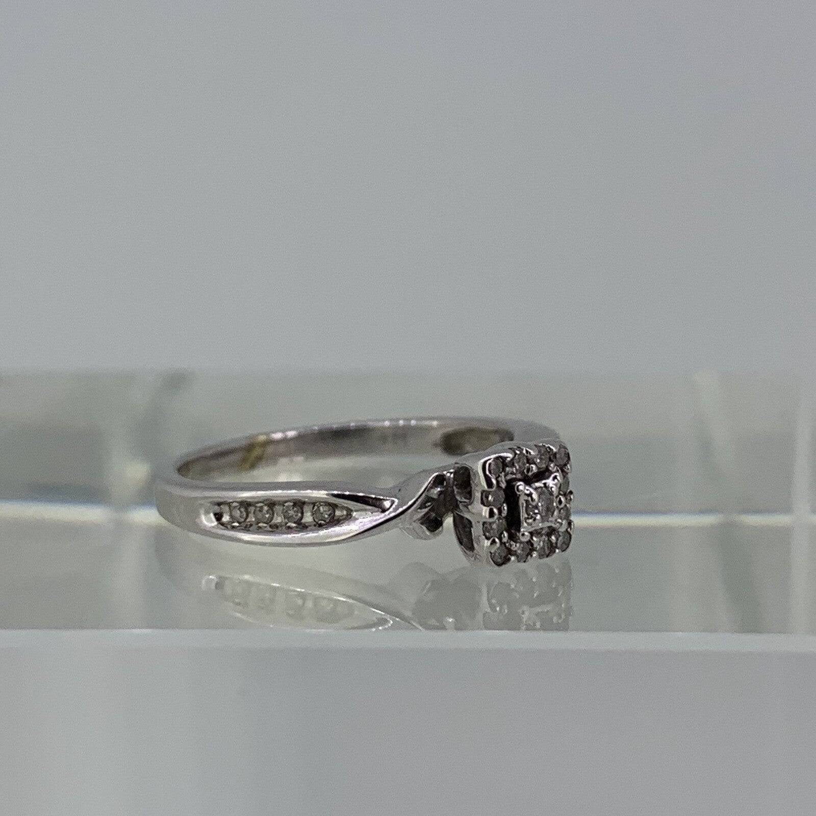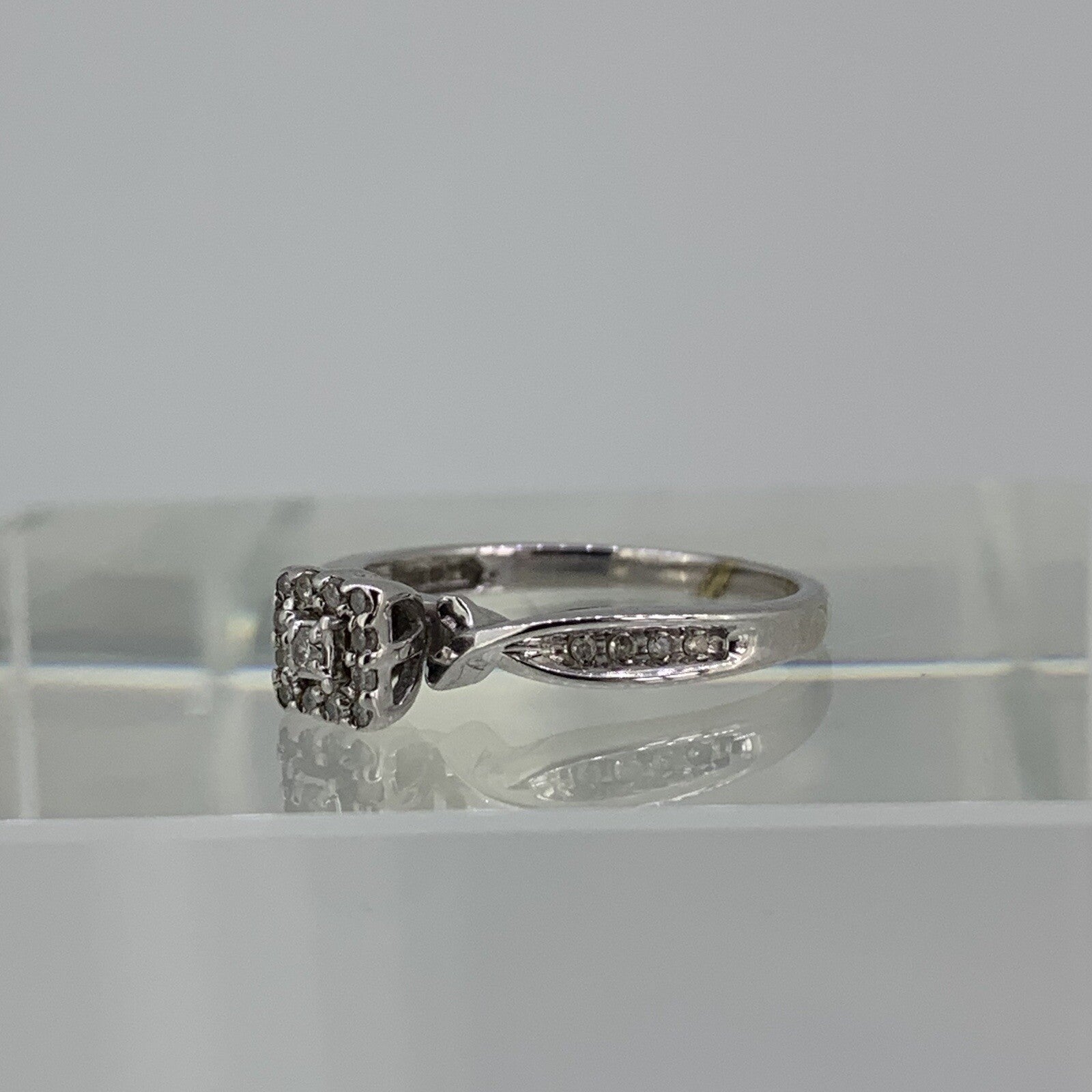 Diamond .10ct Square Cluster Halo Ring White Gold 9ct 9k - Size J