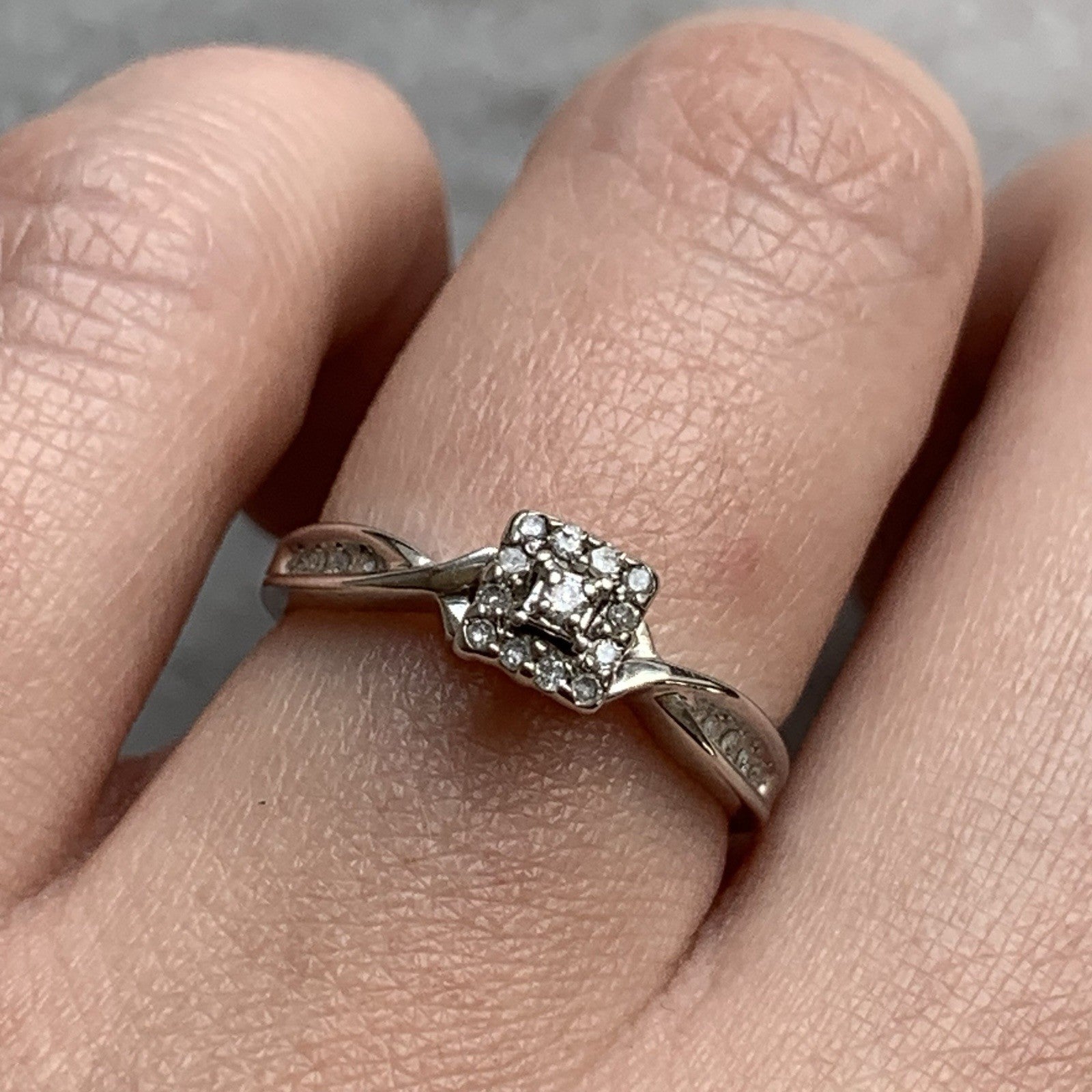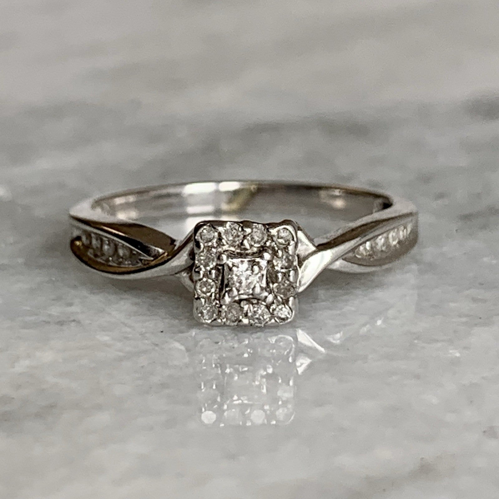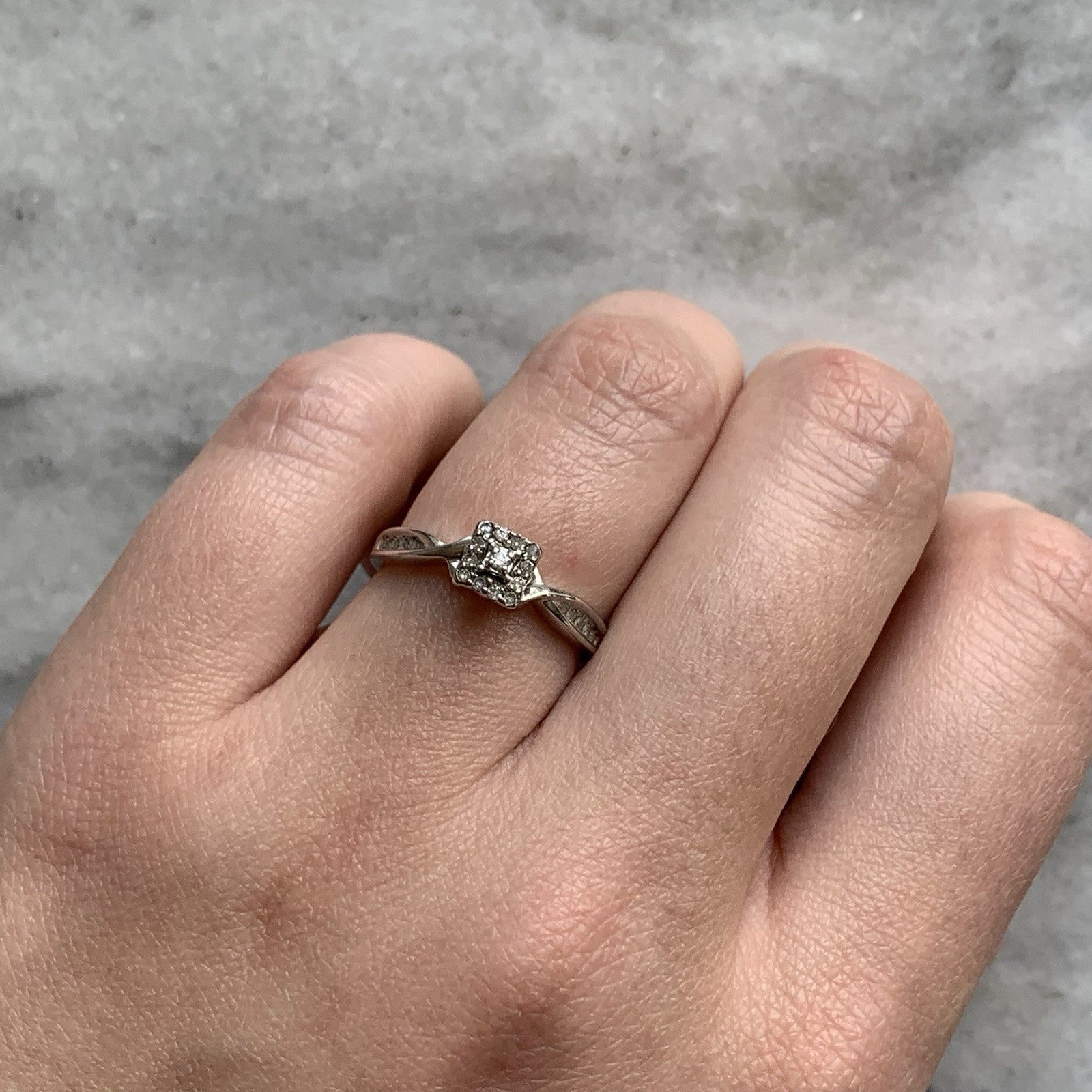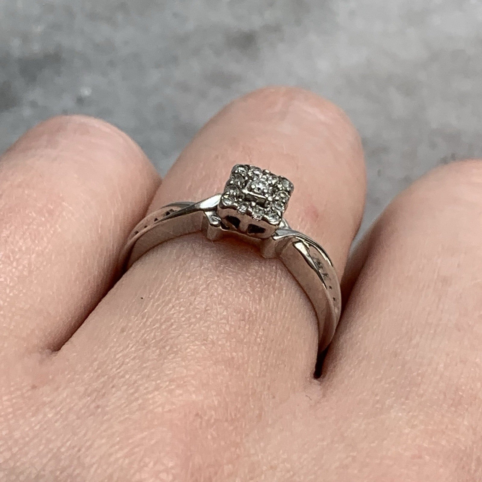 Diamond .10ct Square Cluster Halo Ring White Gold 9ct 9k - Size J
