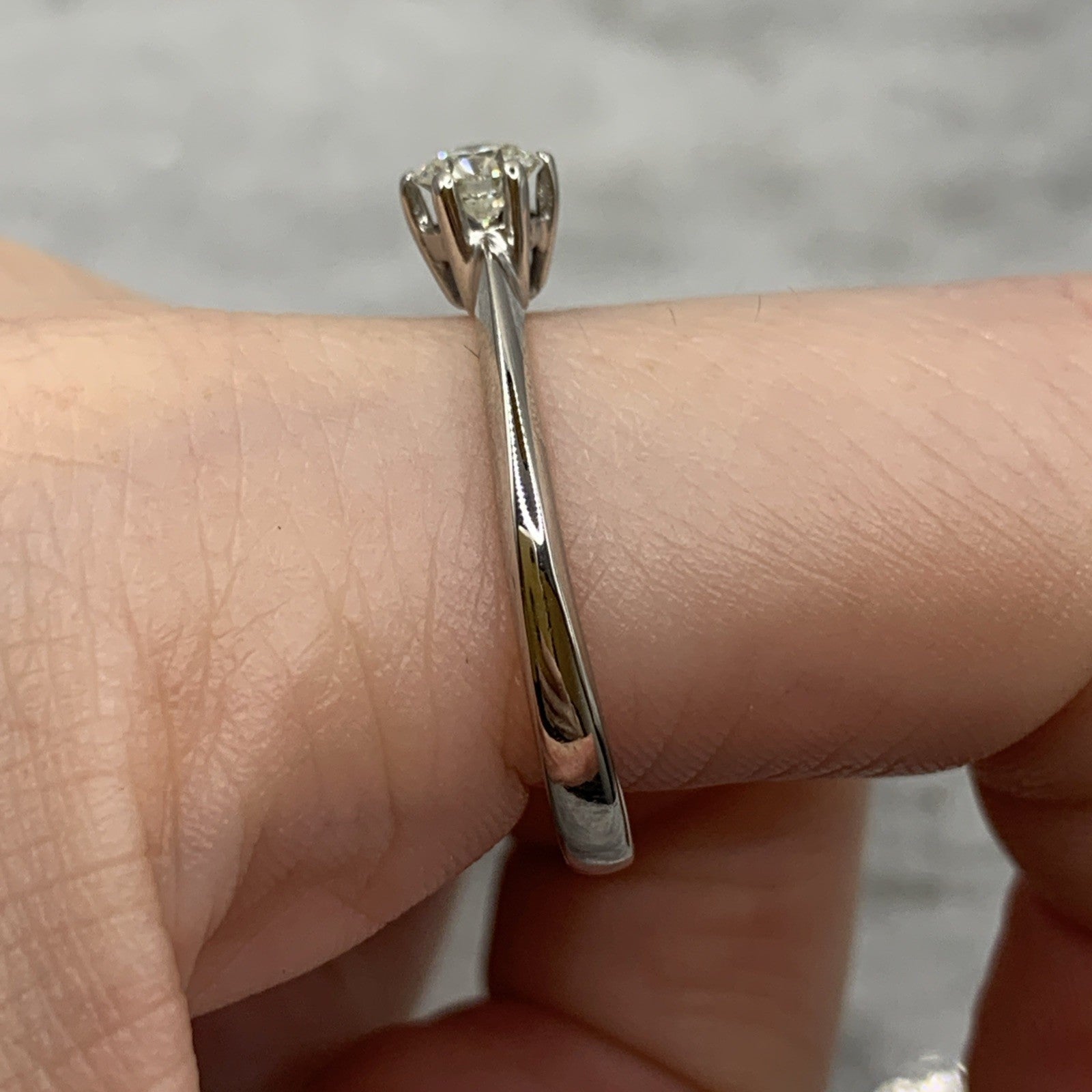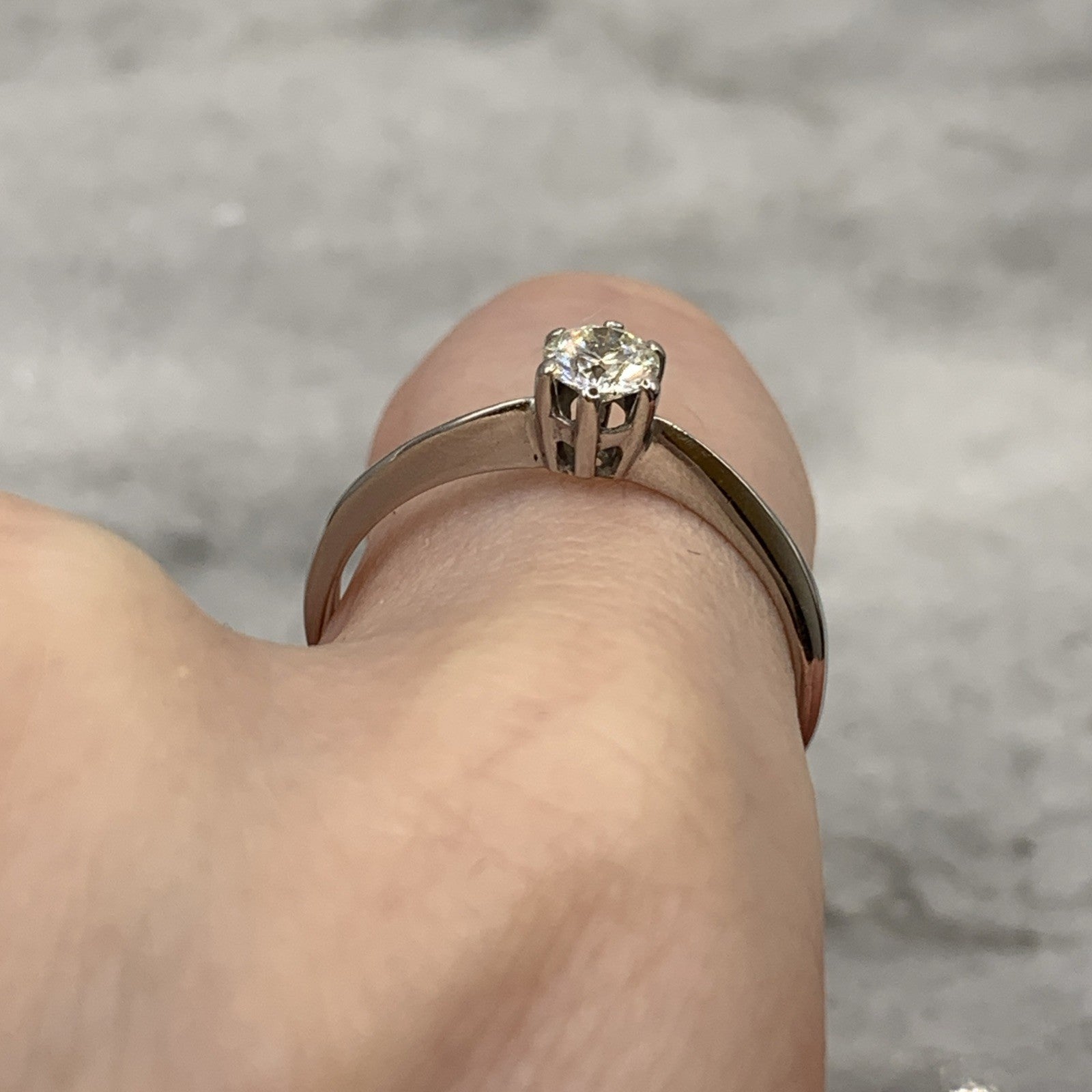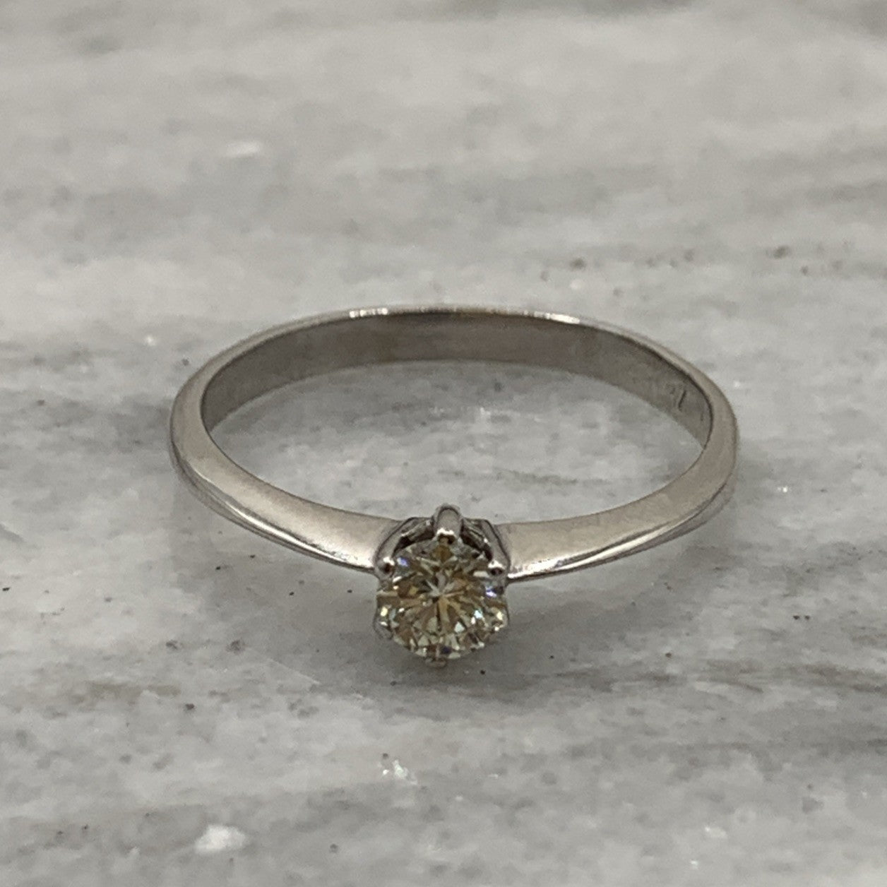 A timeless white gold rig featuring a 0.36ct solitaire diamond.