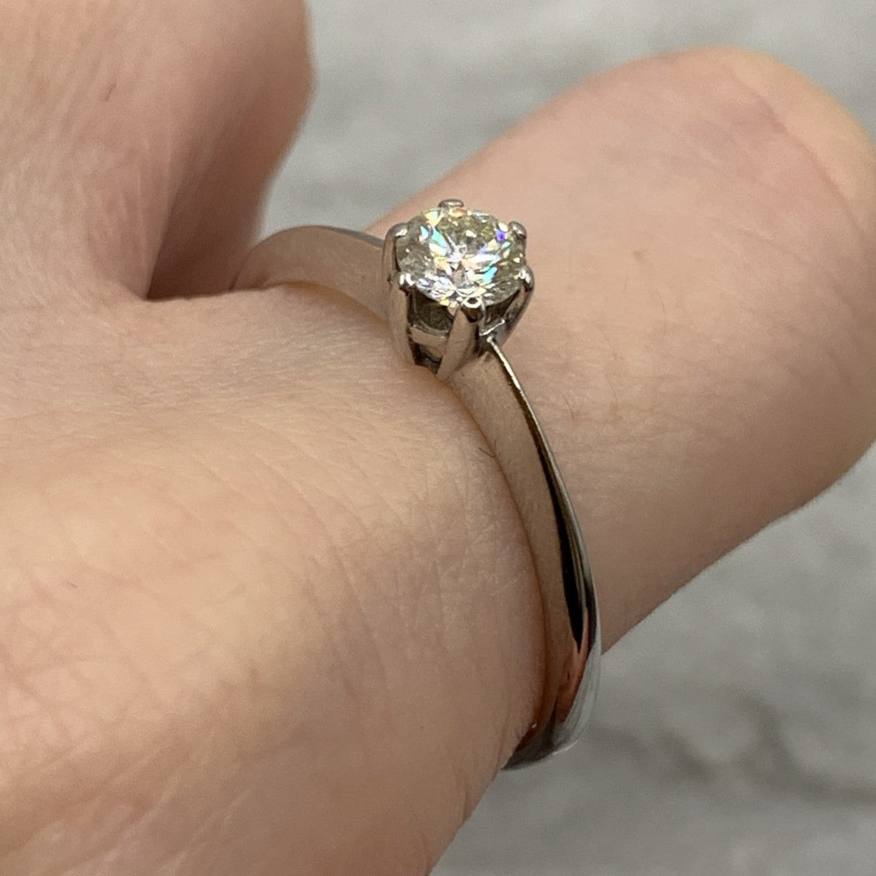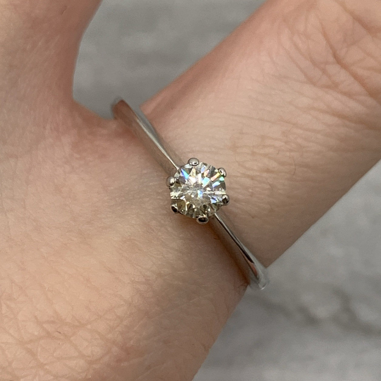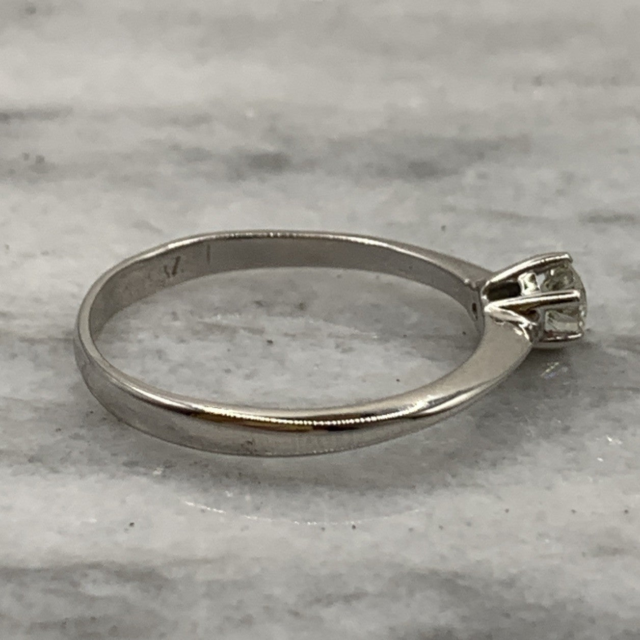 A timeless white gold rig featuring a 0.36ct solitaire diamond.