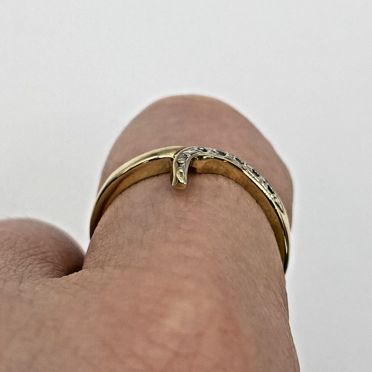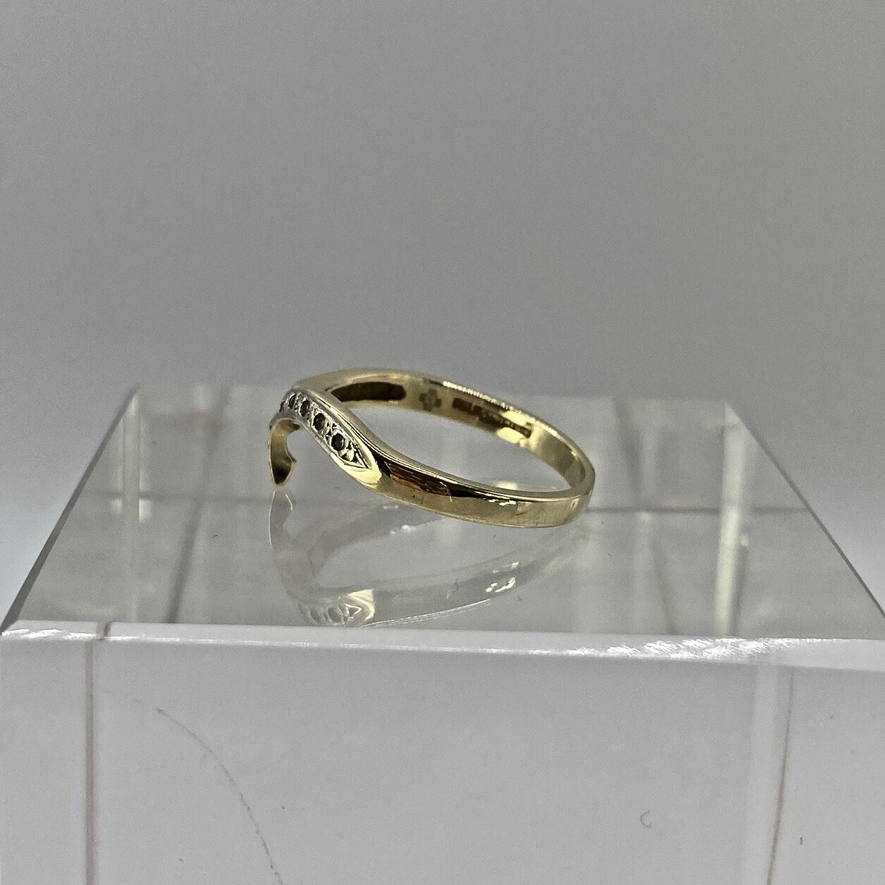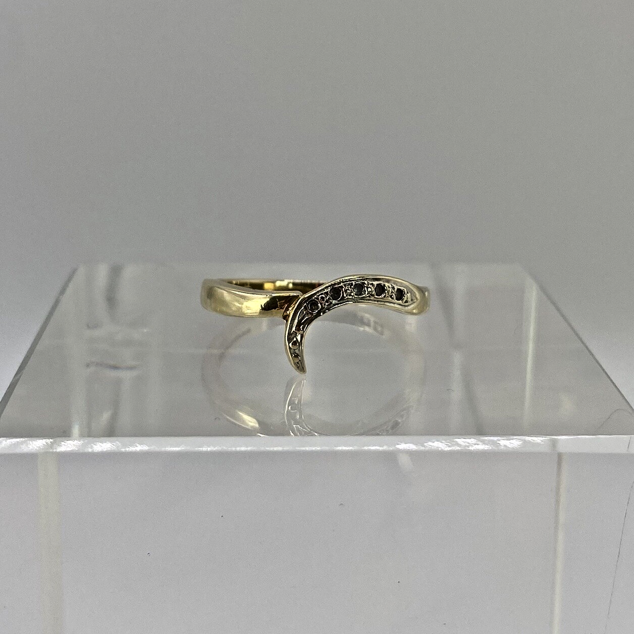 Diamond 9 ct Gold Ring - 375 Yellow Gold - Size O - Fancy Wishbone Style