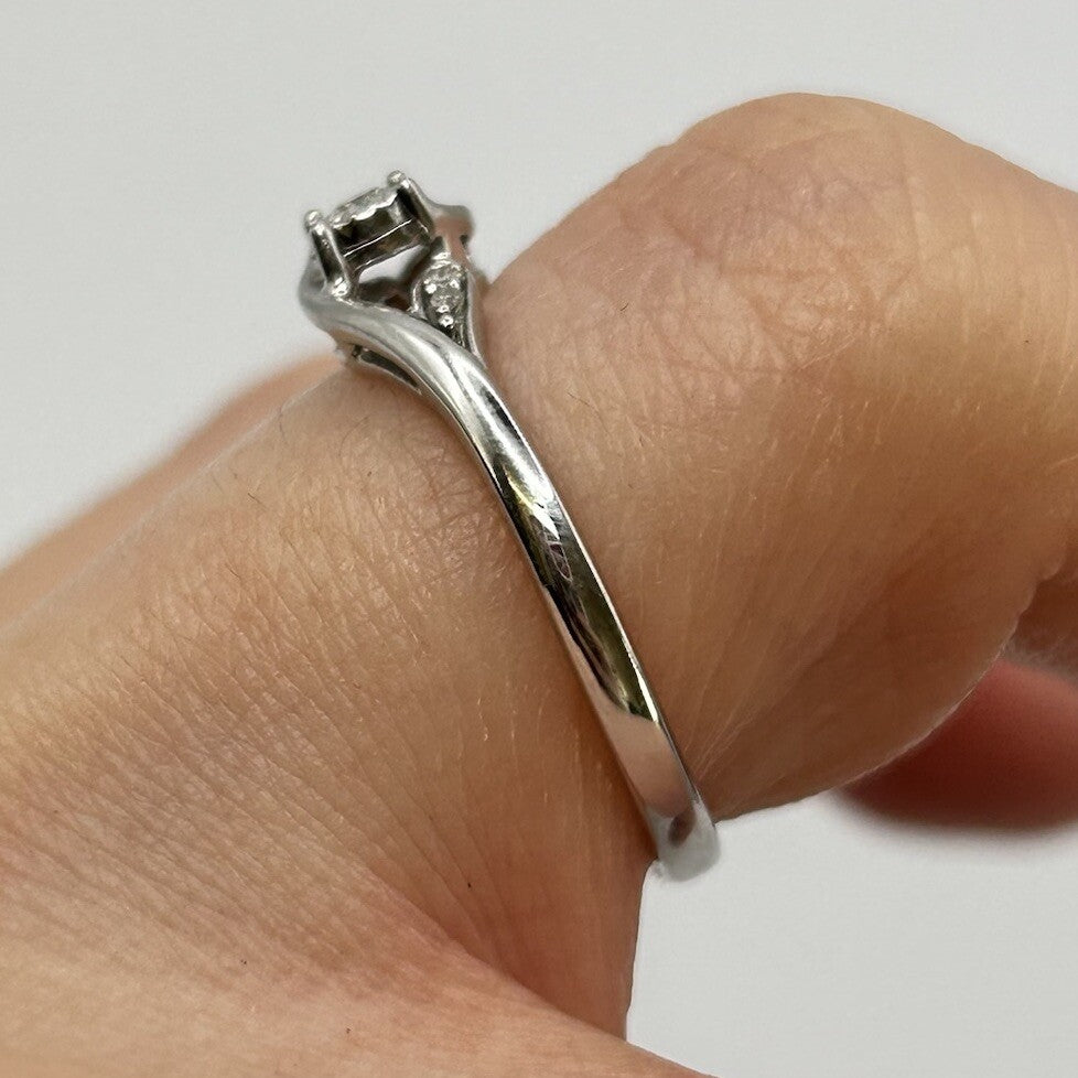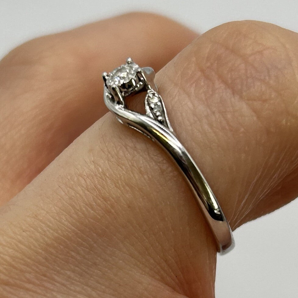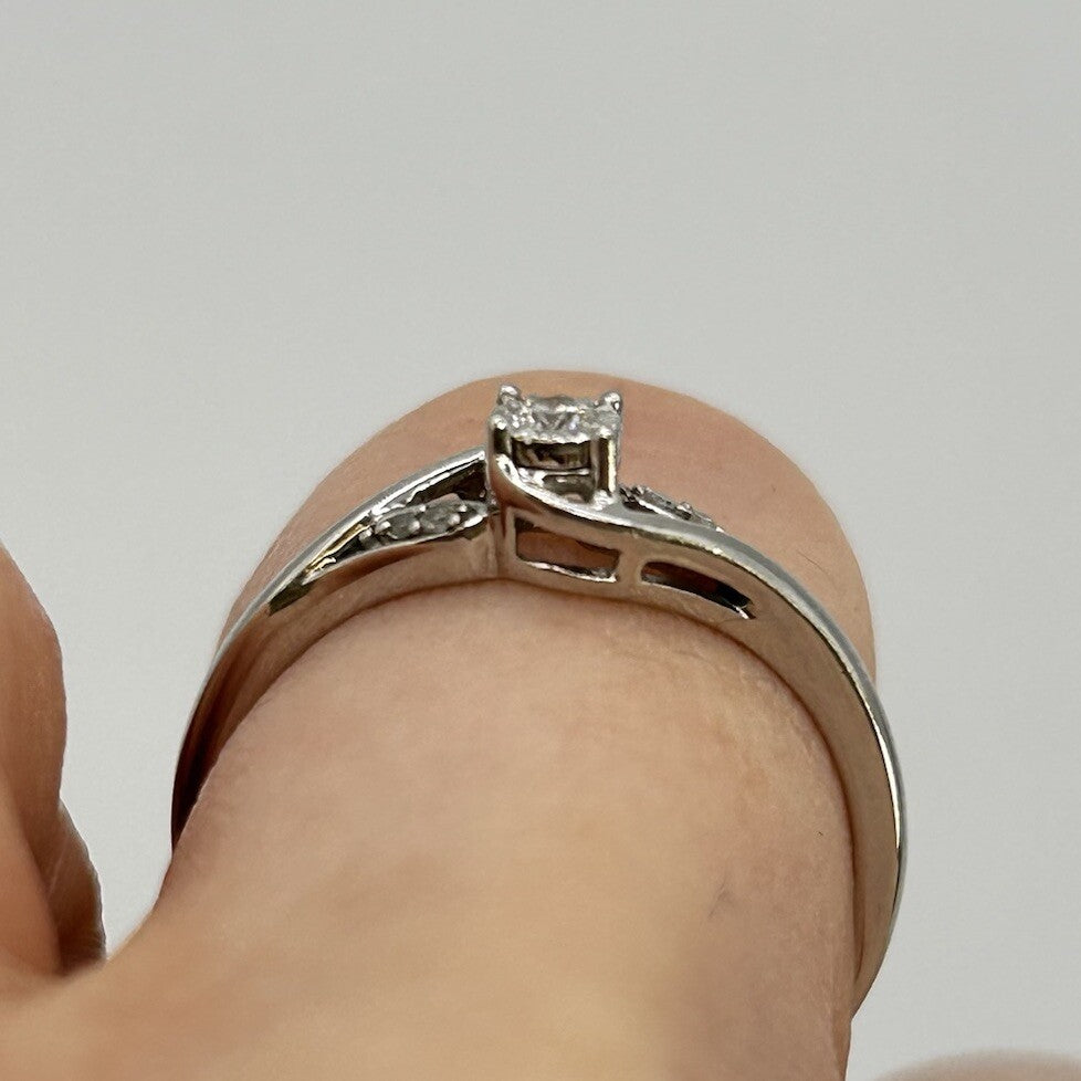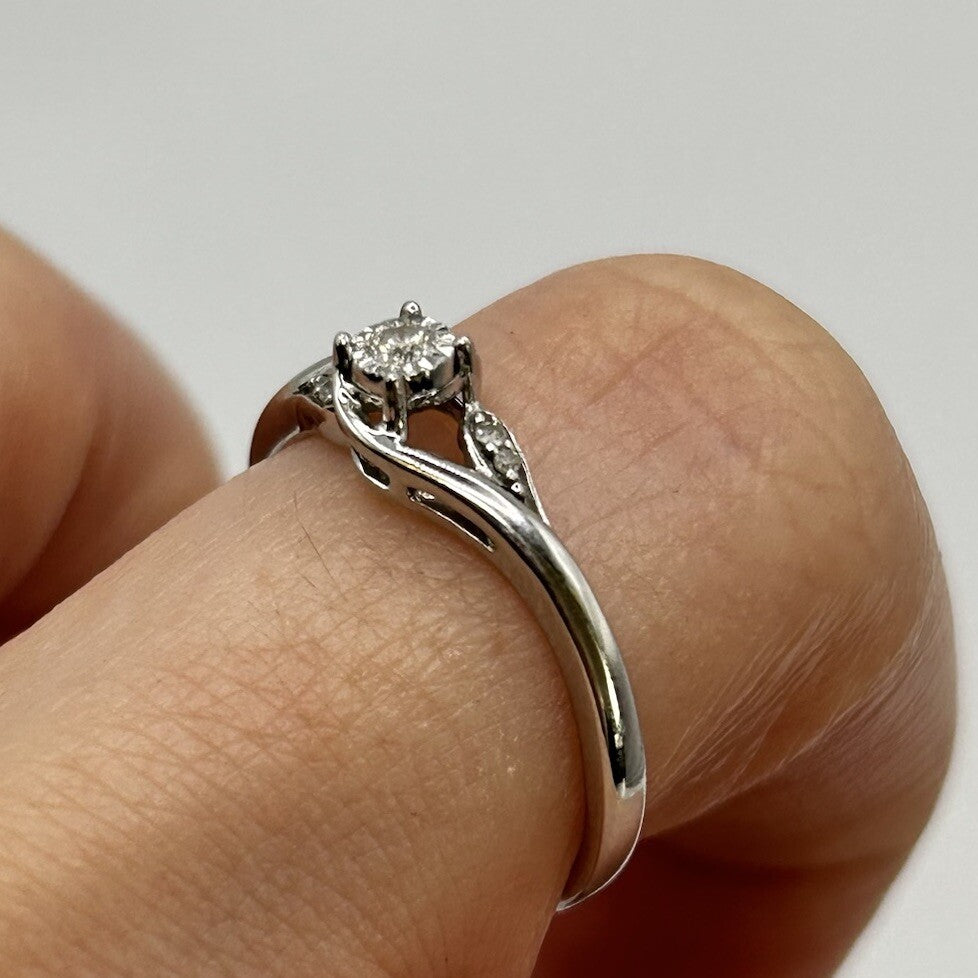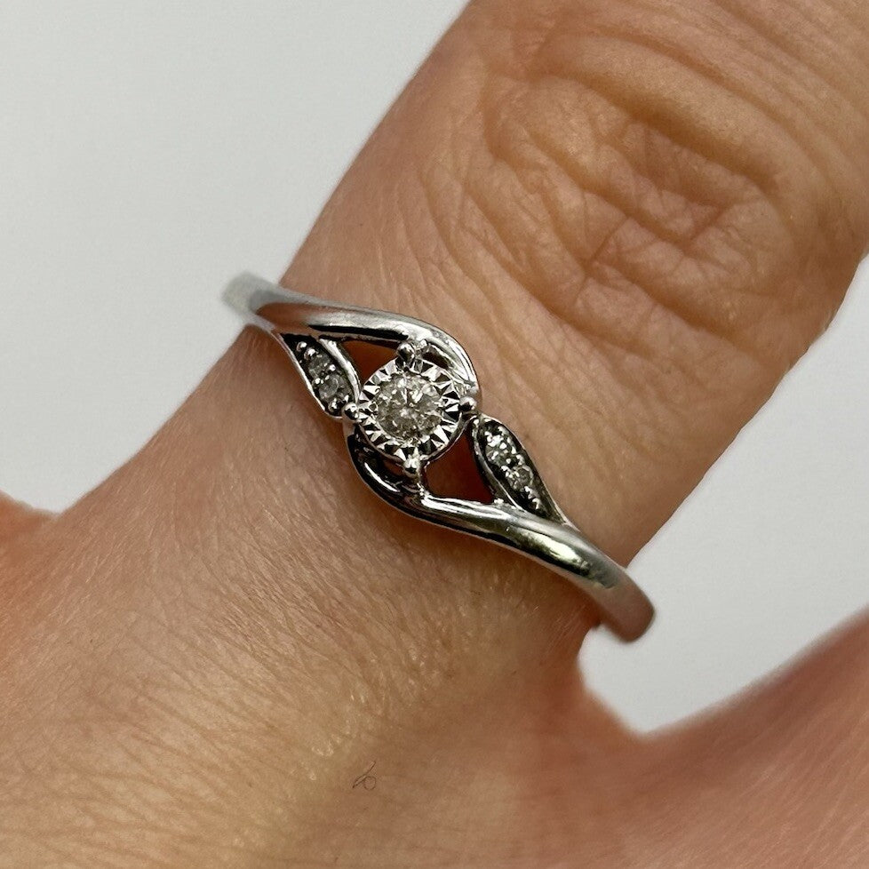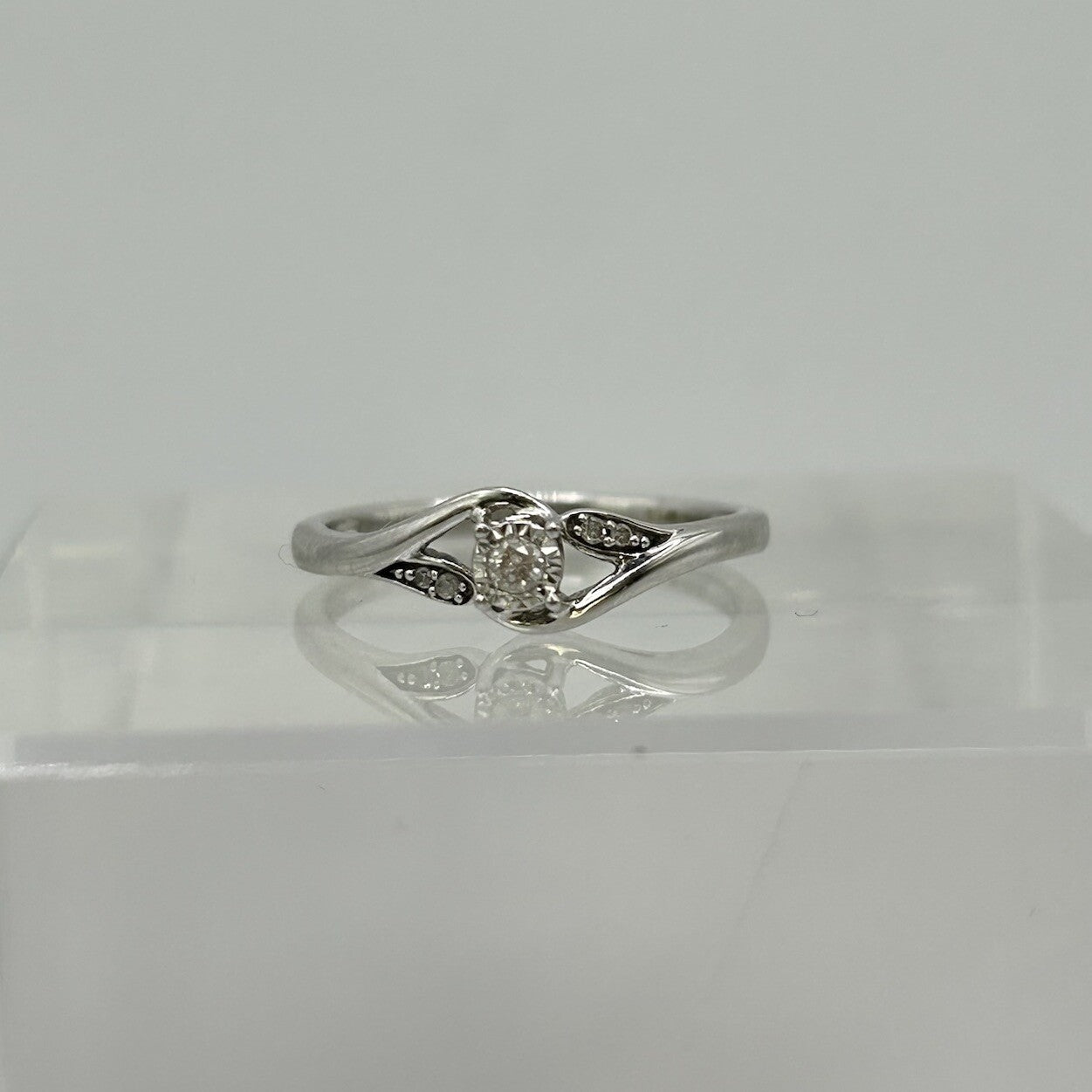 Diamond 9 ct White Gold Ring - Solitaire Bypass With Accents - Size M