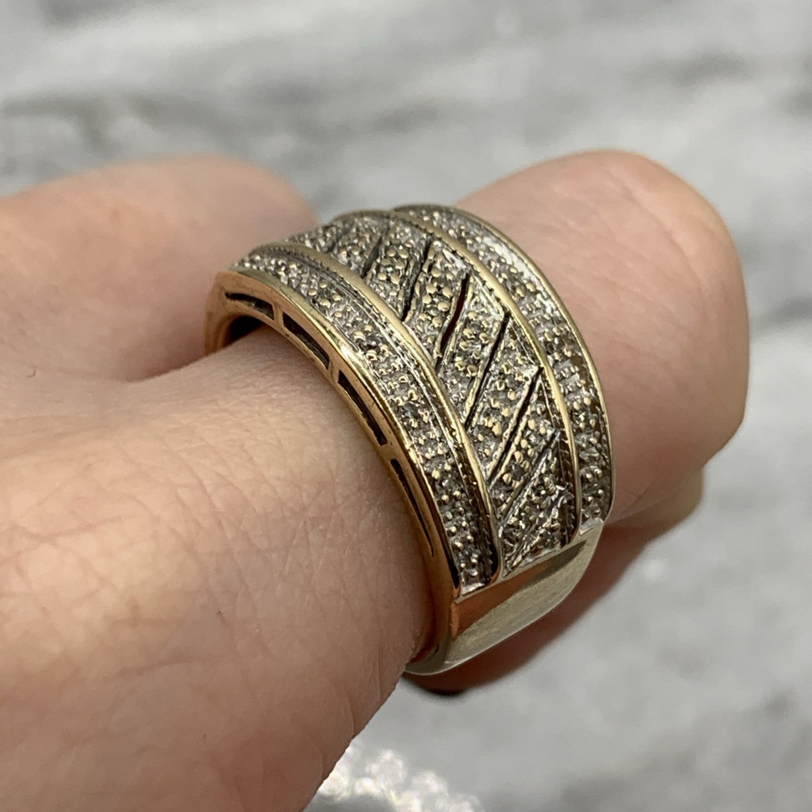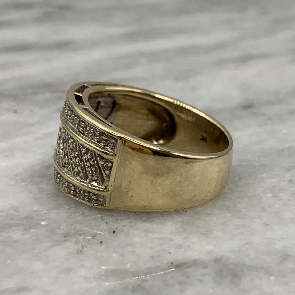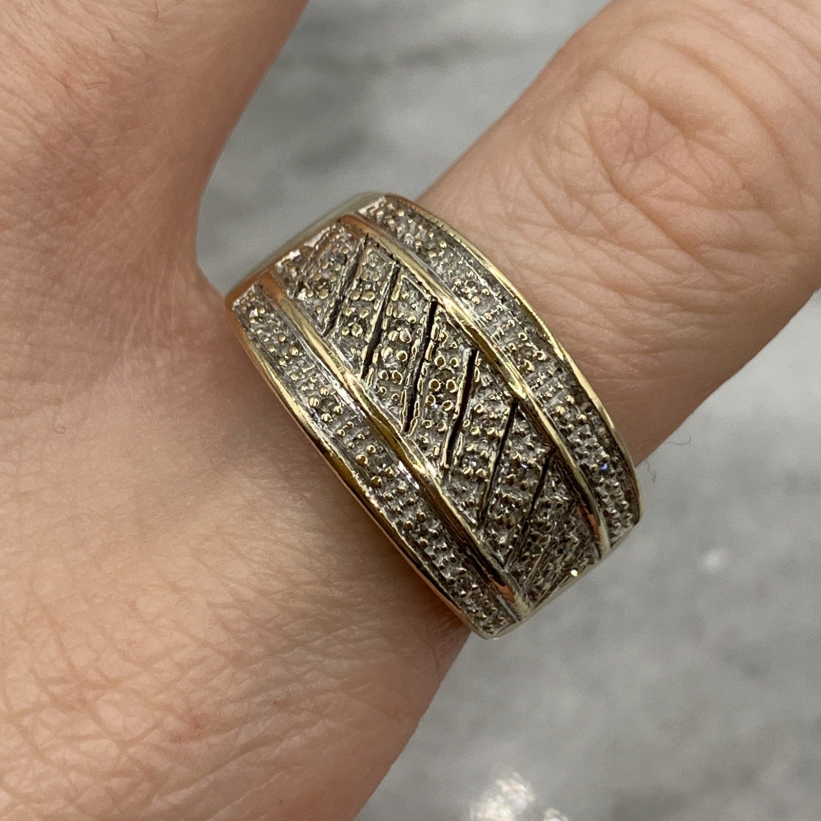 Diamond Cluster Chunky Band Ring 9ct 375 Yellow Gold - Size R 1/2