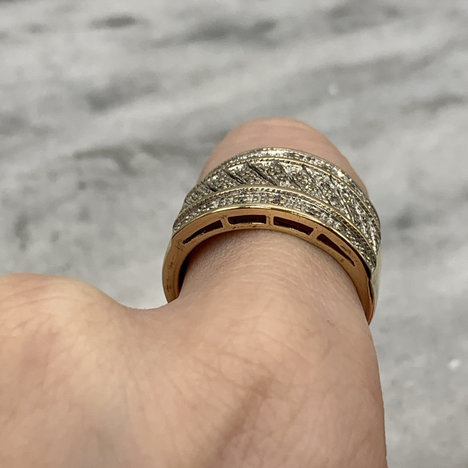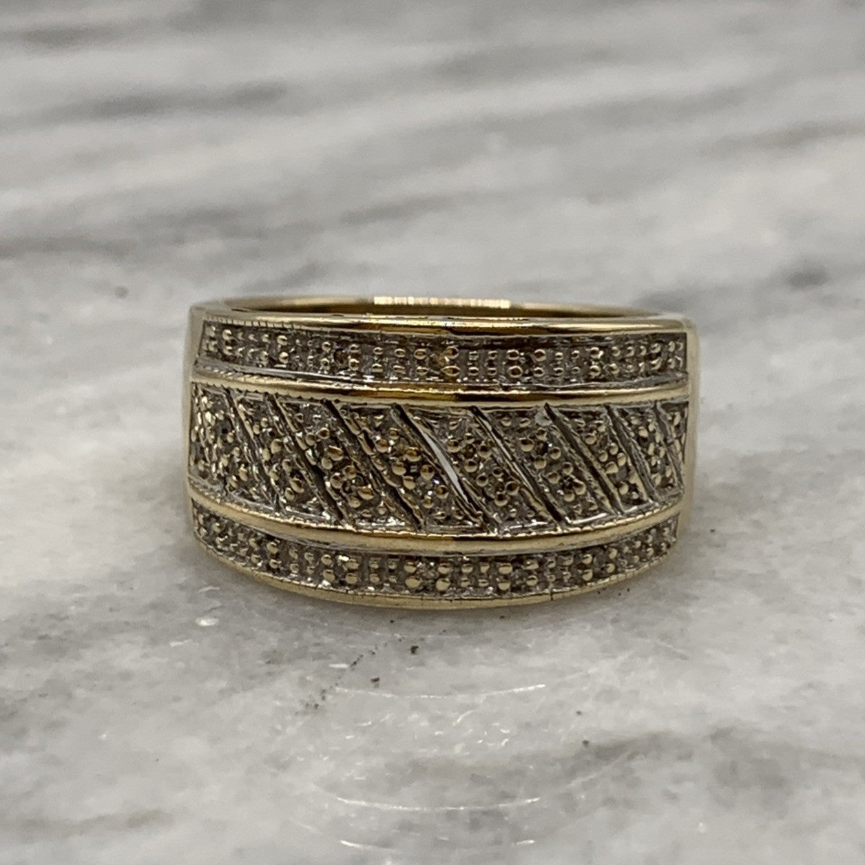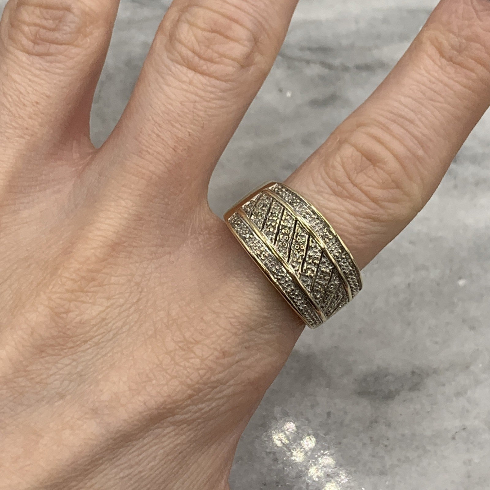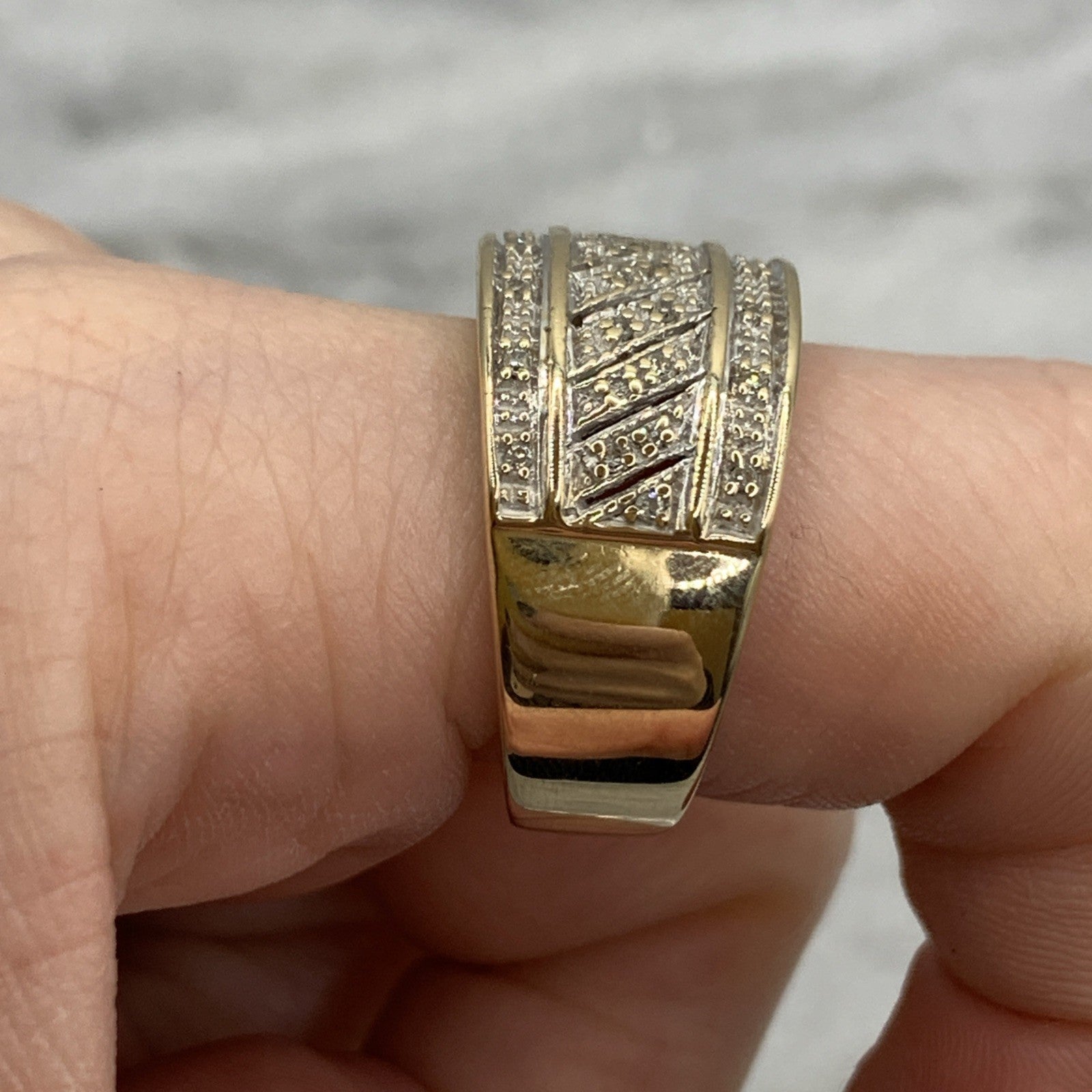 Diamond Cluster Chunky Band Ring 9ct 375 Yellow Gold - Size R 1/2