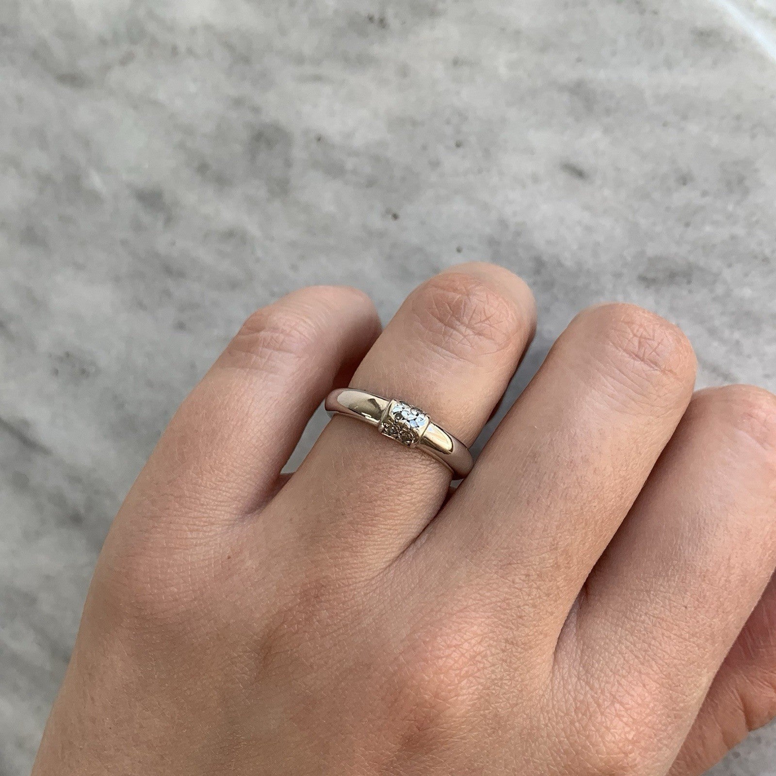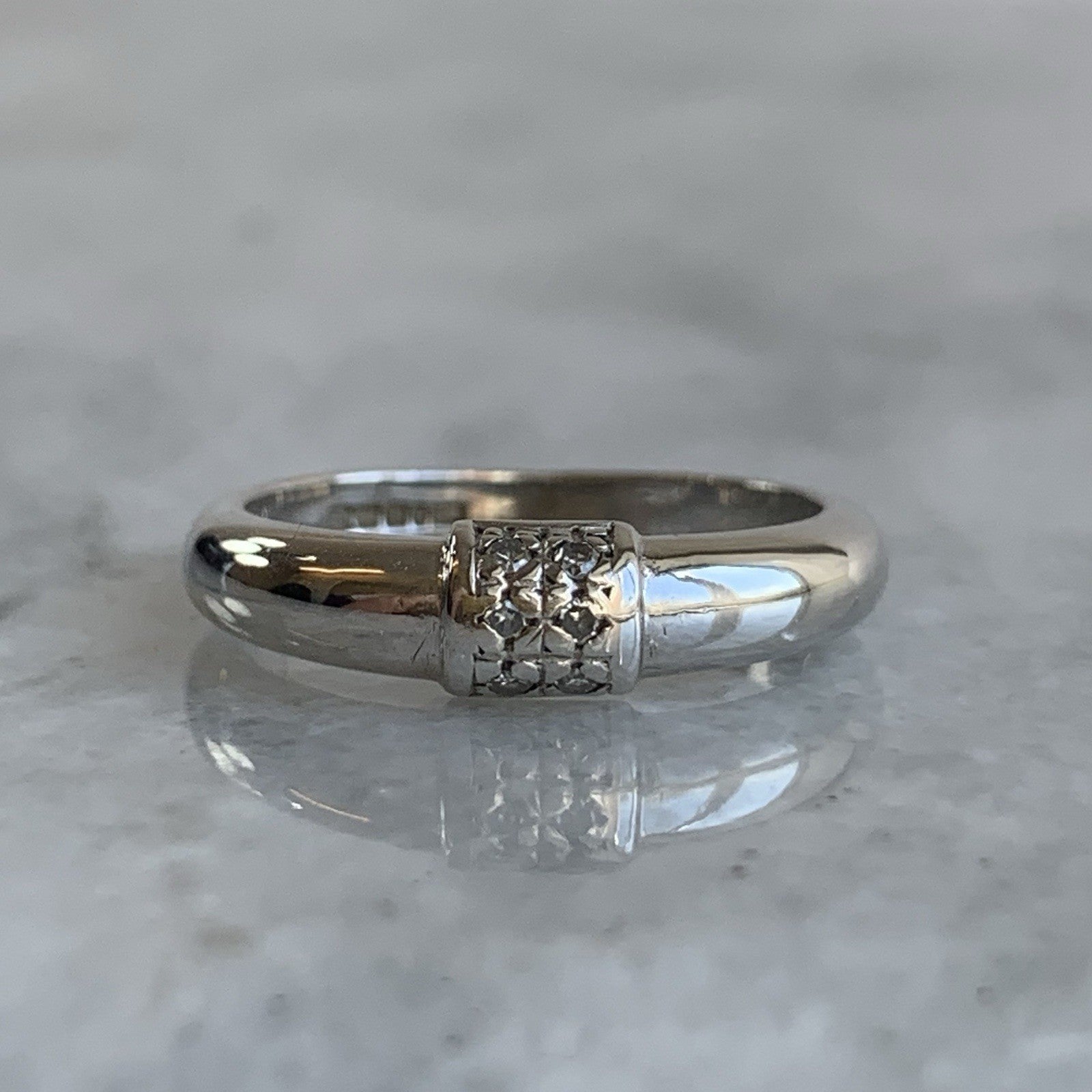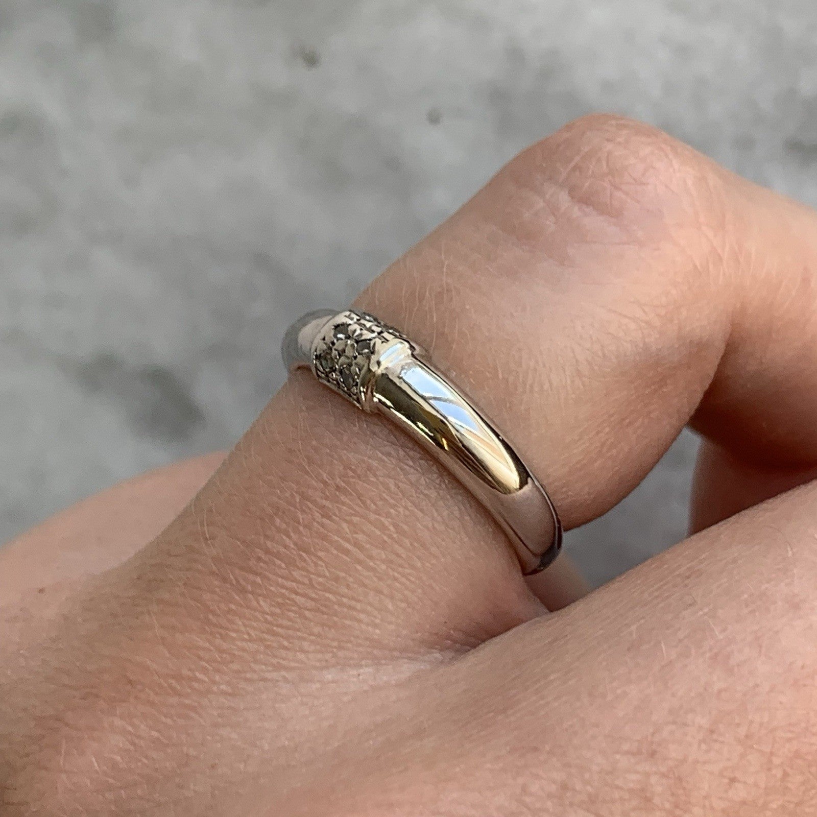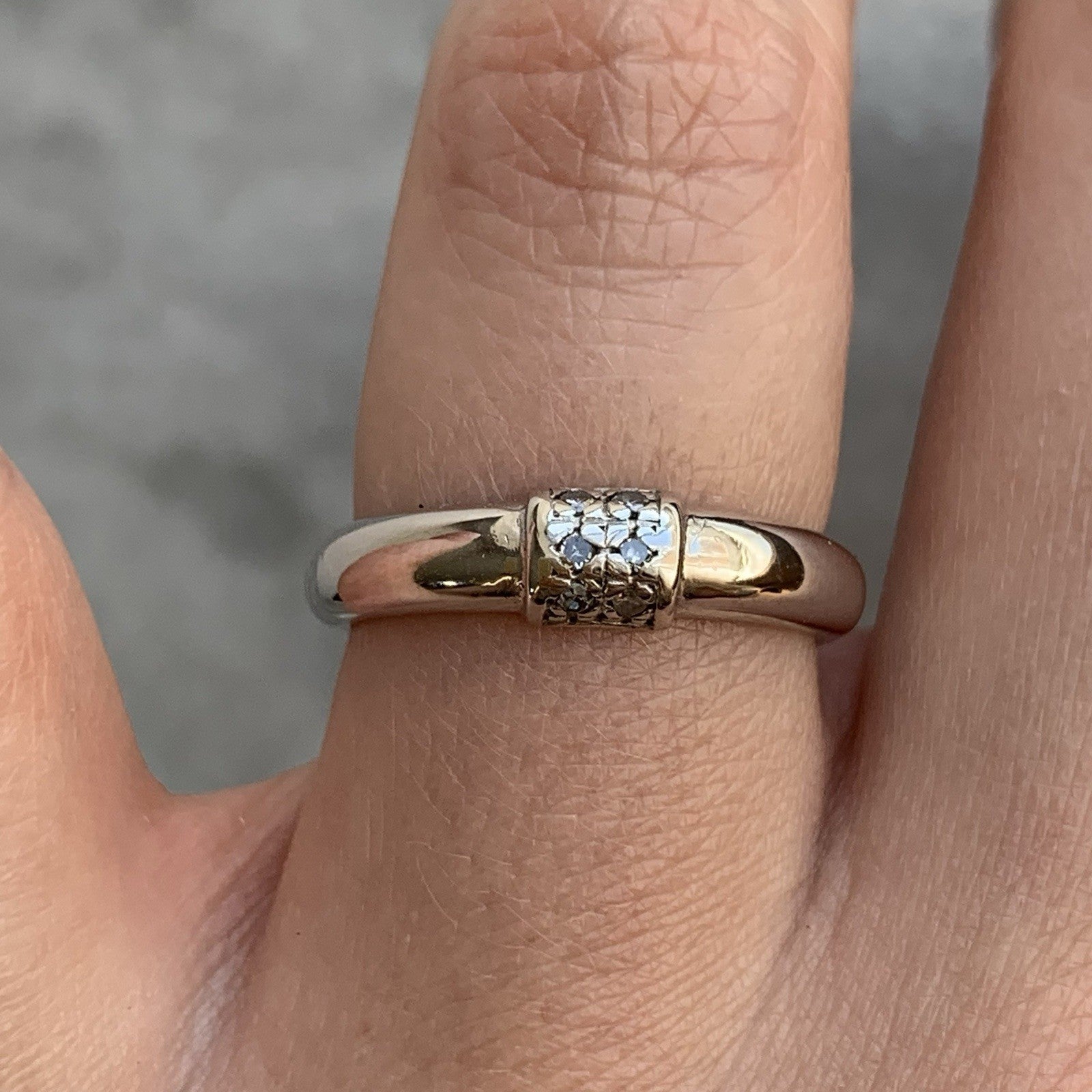 A band ring with a chunky rounded shape, accented by a central cluster of petite diamonds.