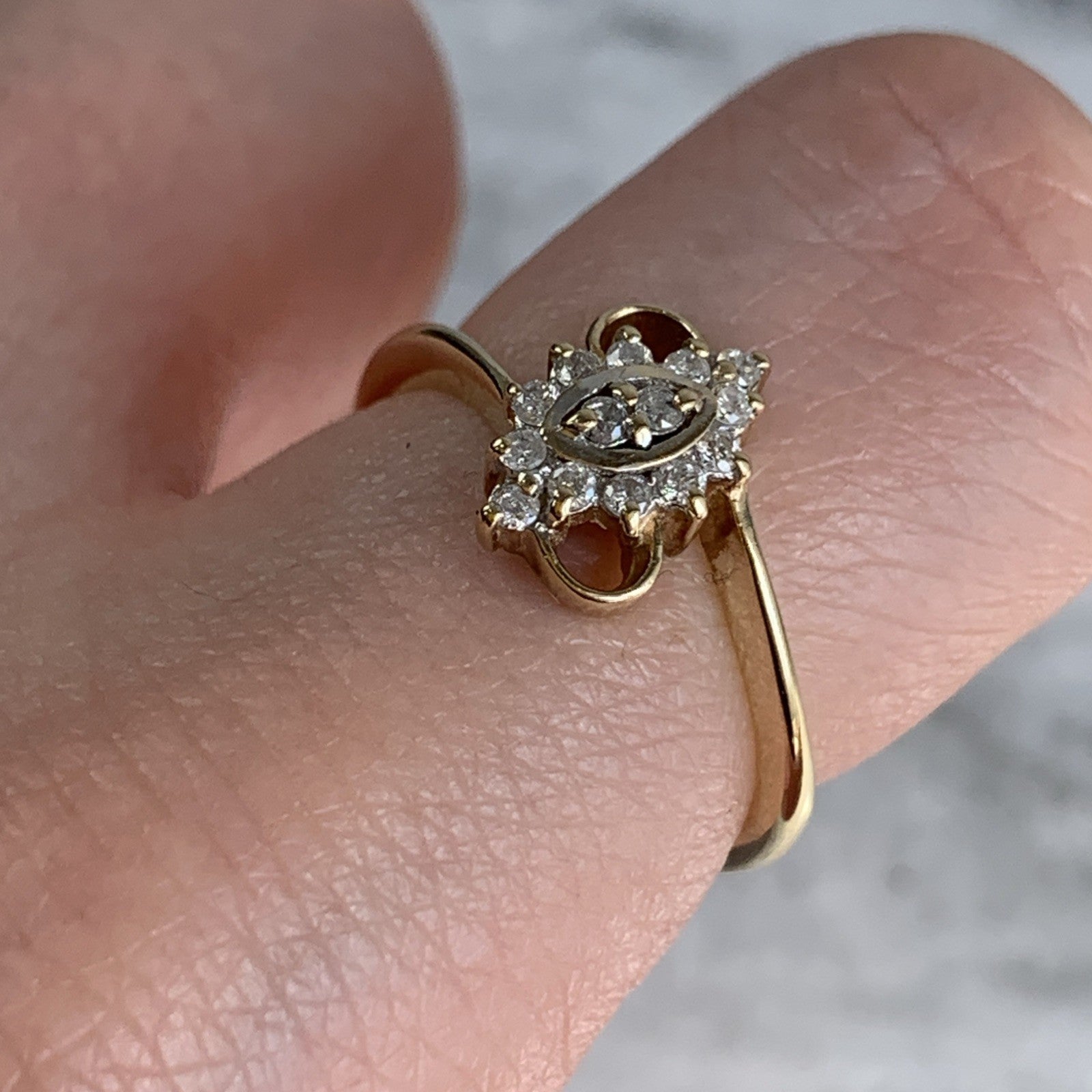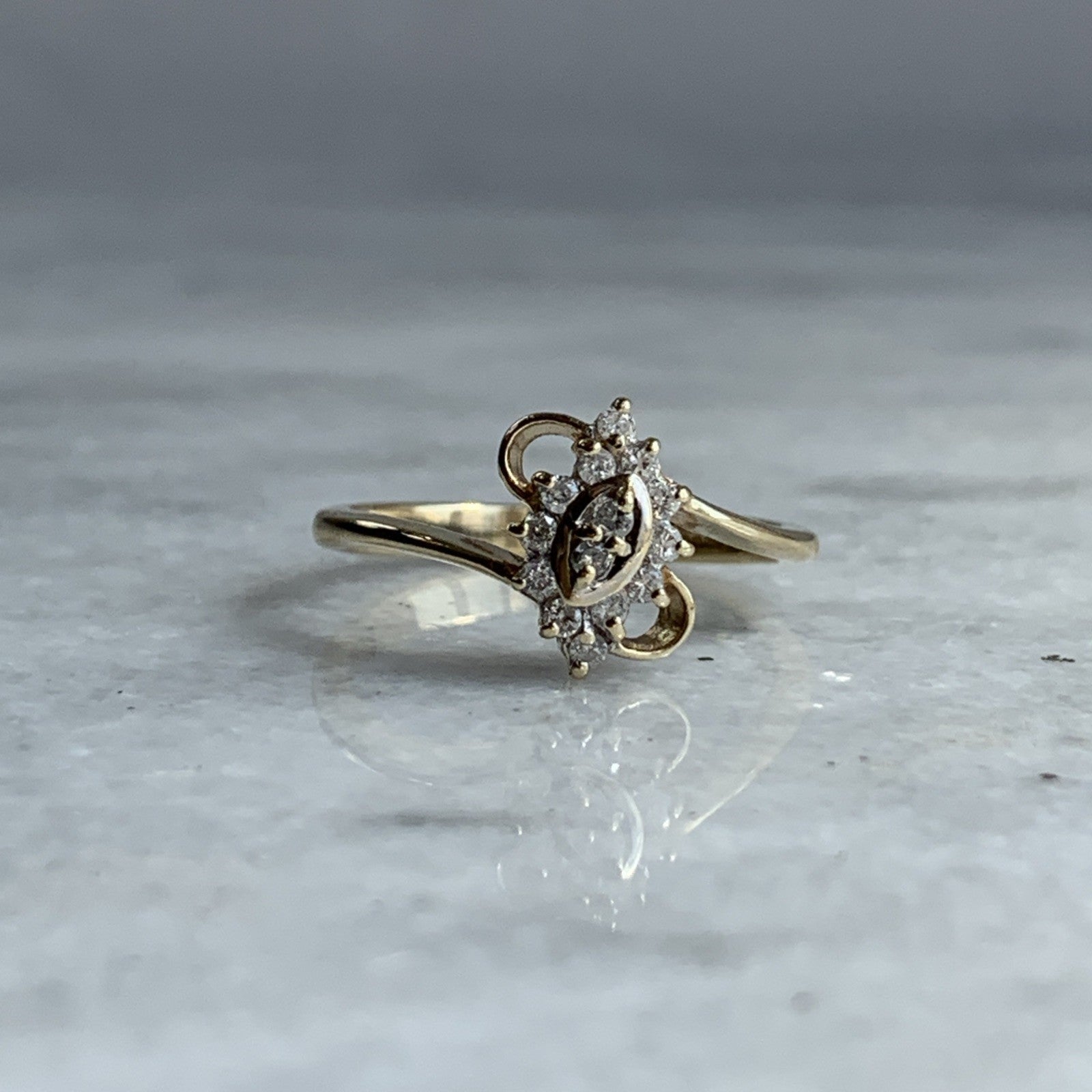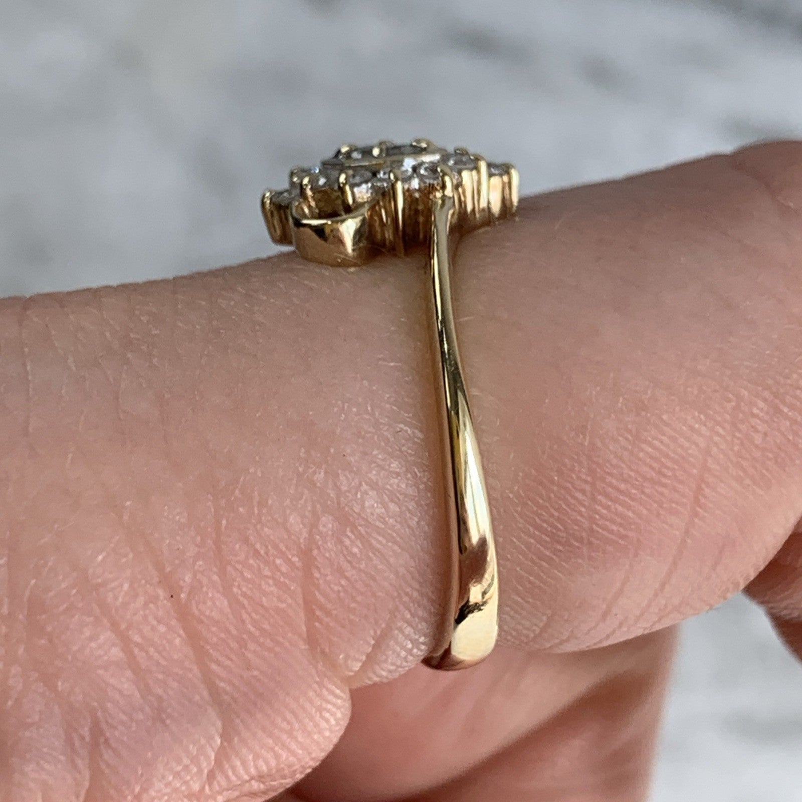 Diamond Marquise Cluster Twist Ring 9ct 375 Yellow Gold - Size N