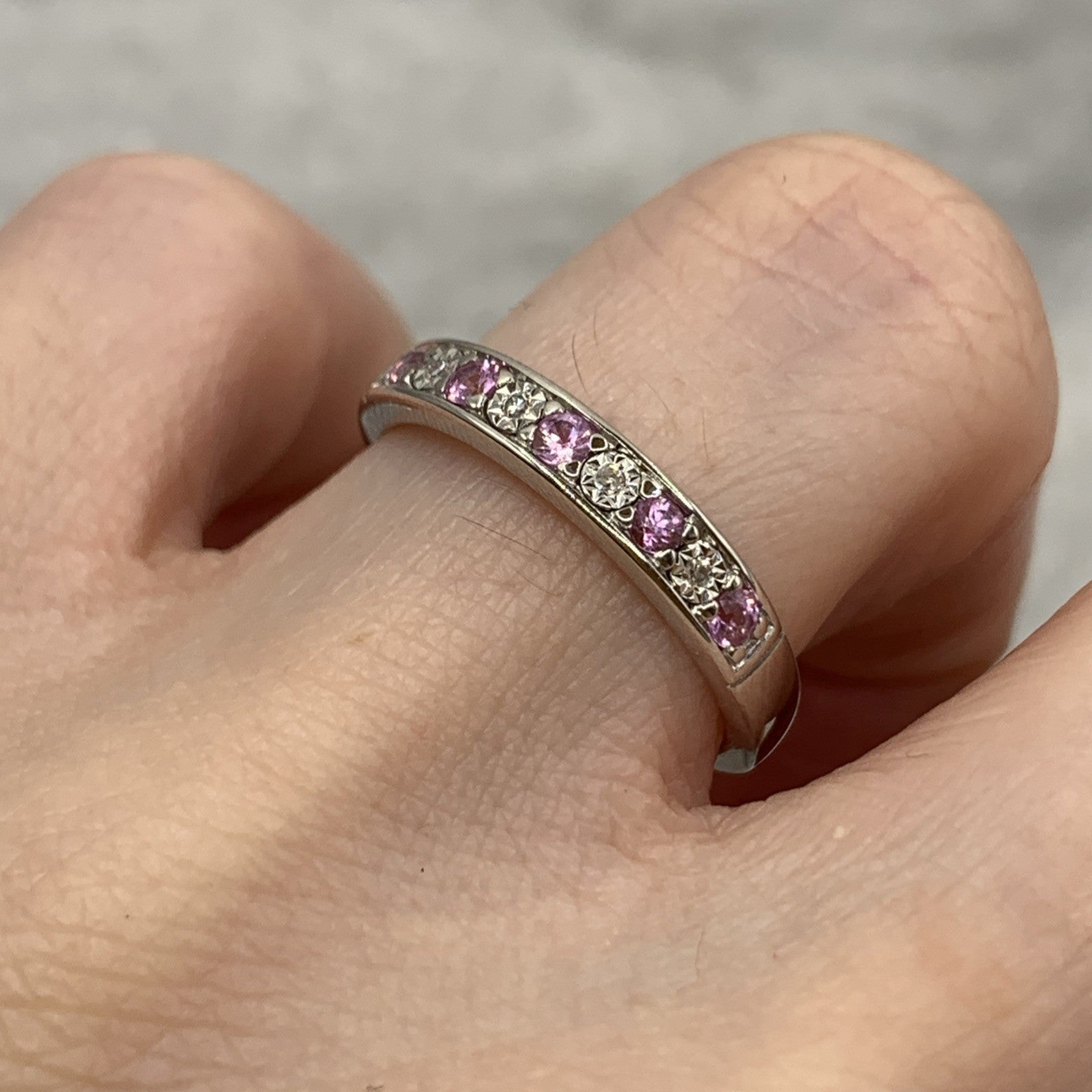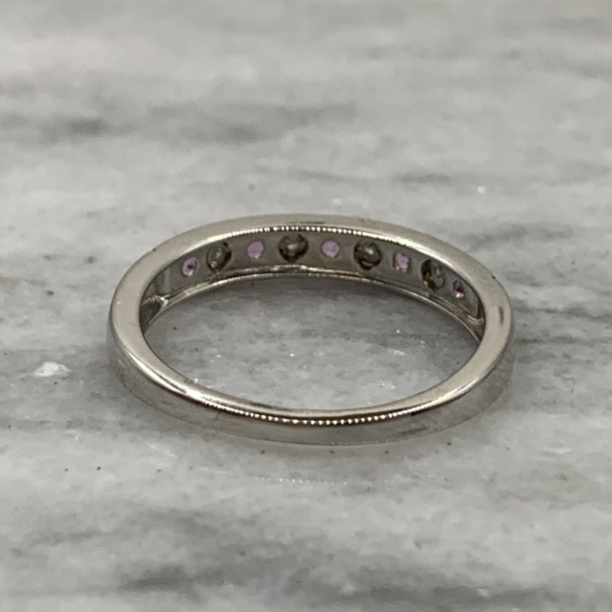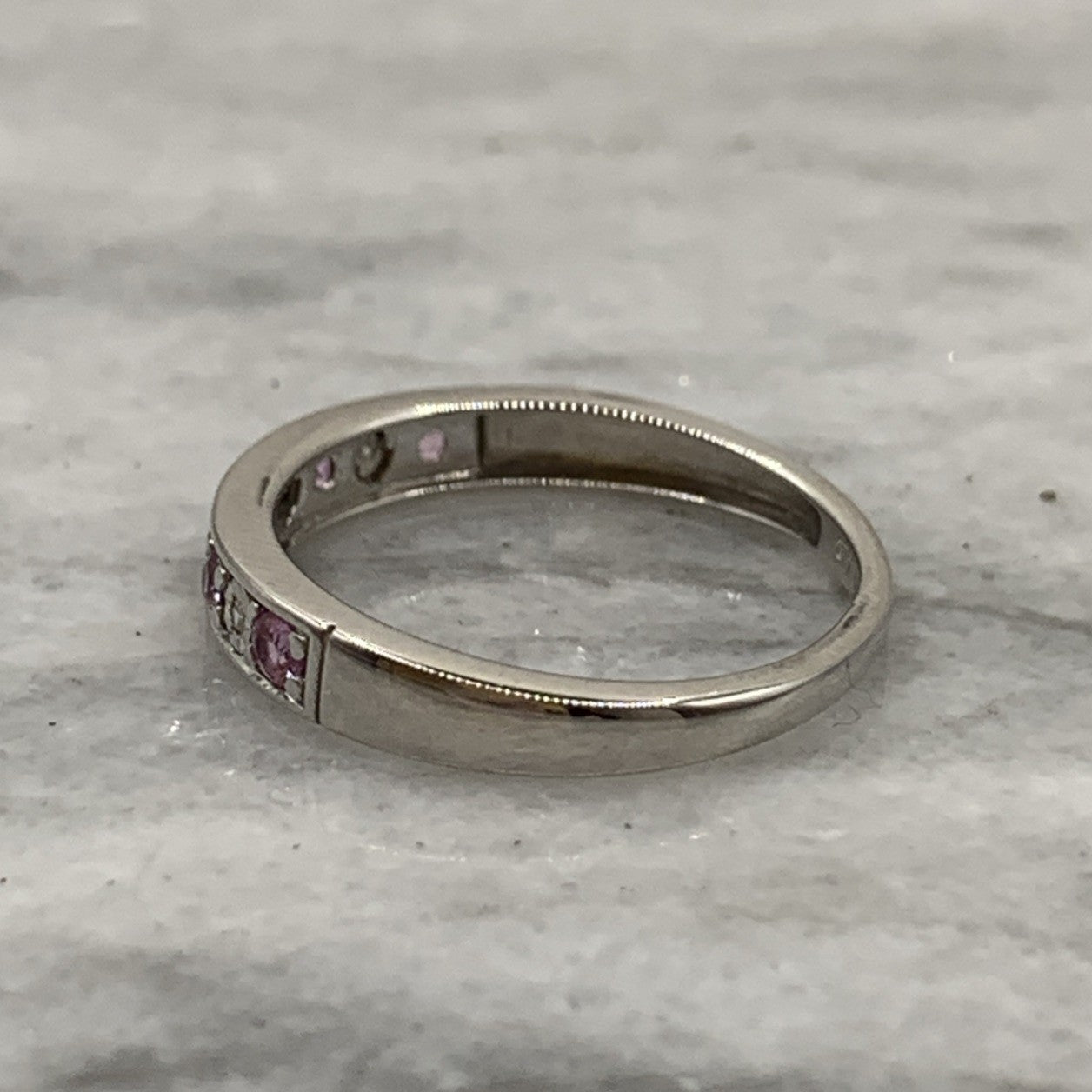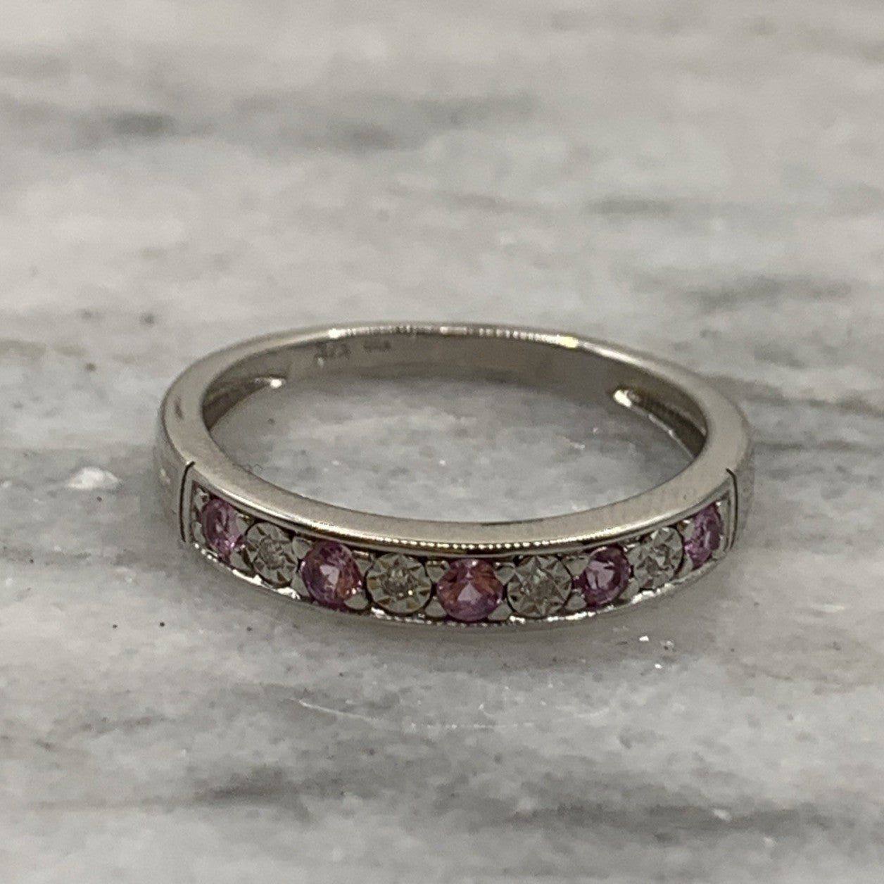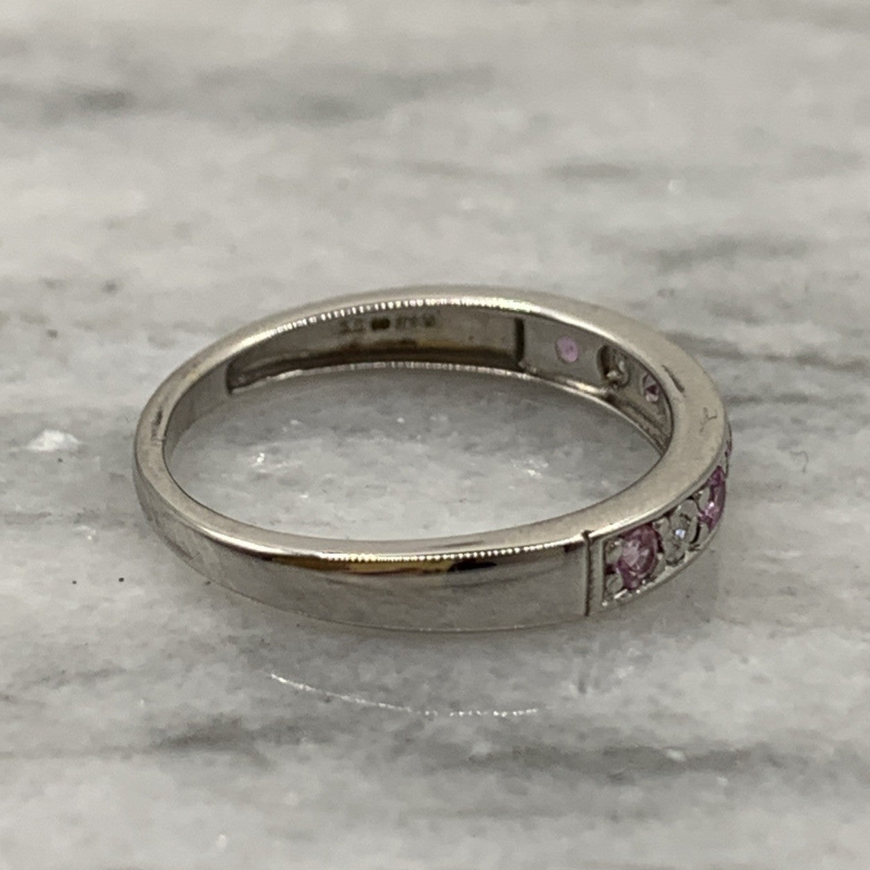 Diamond & Pink Topaz Band Ring 9ct 375 White Gold - Size L 1/2
