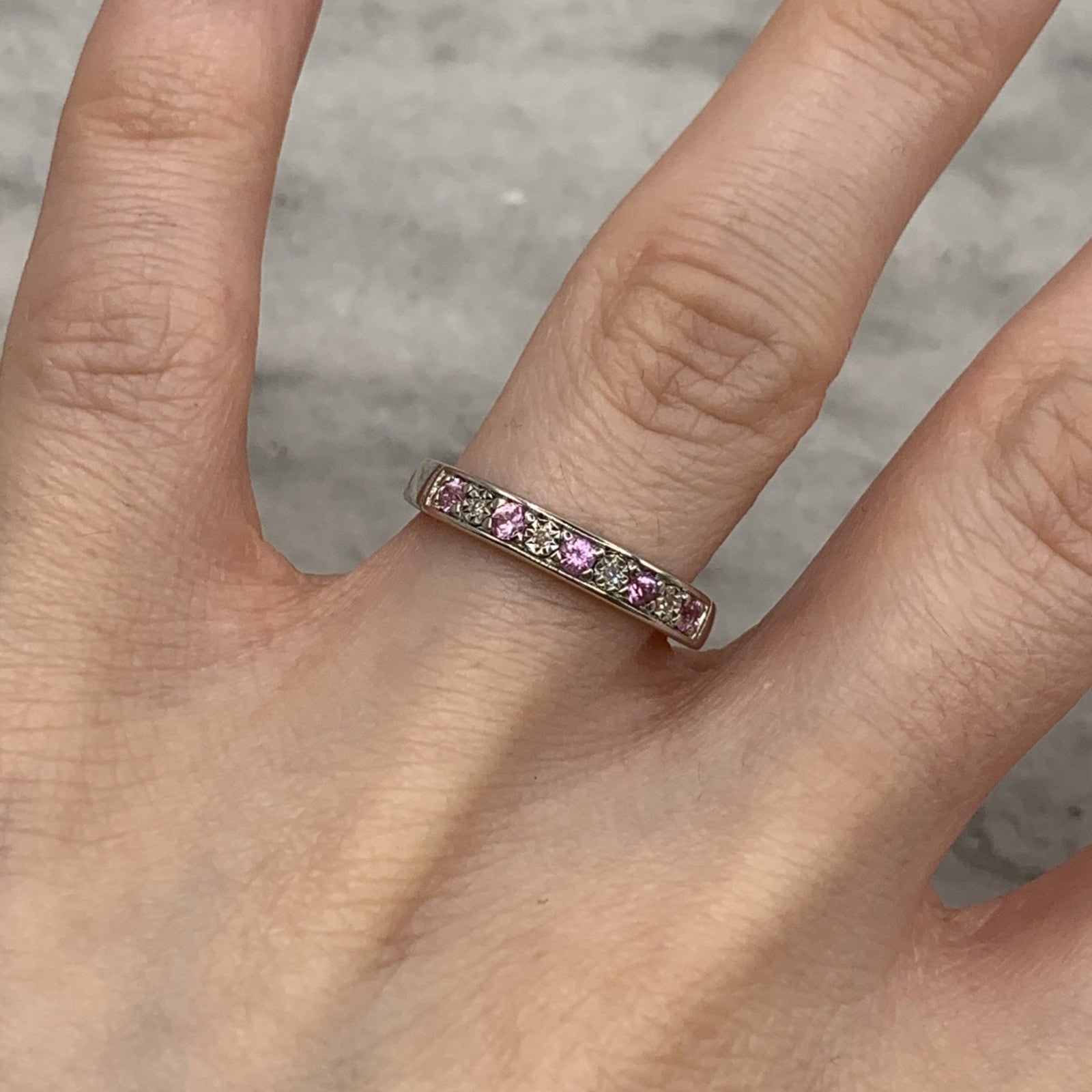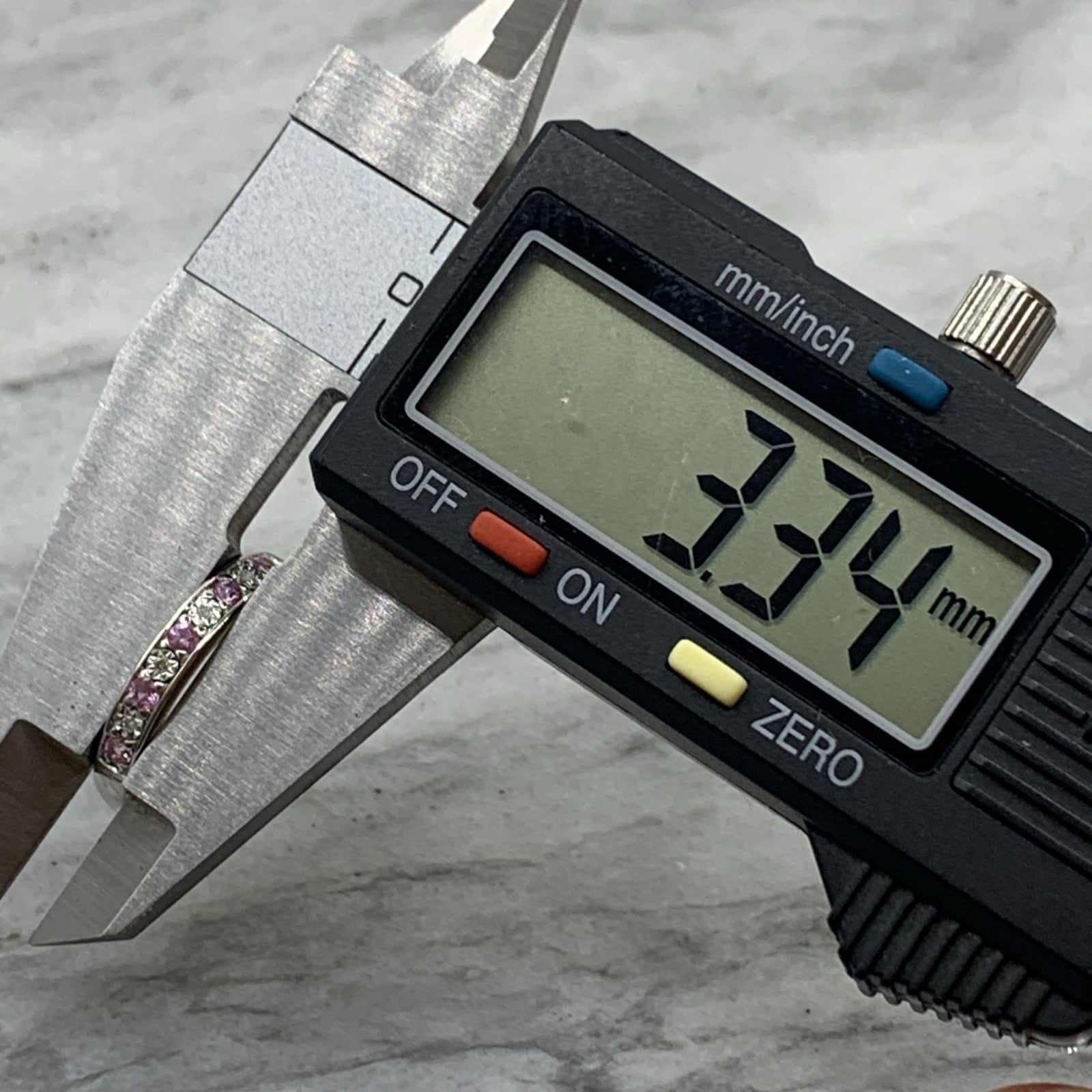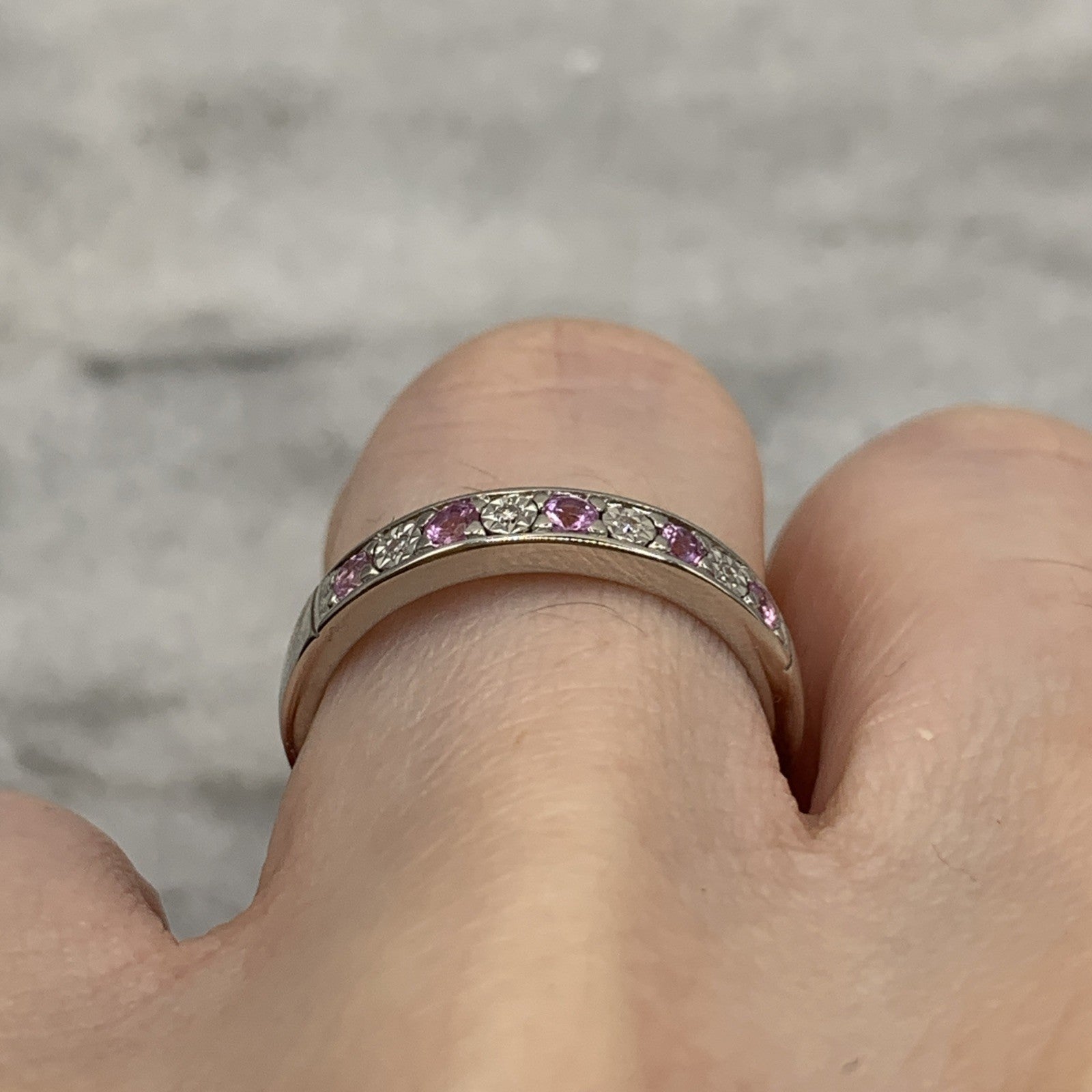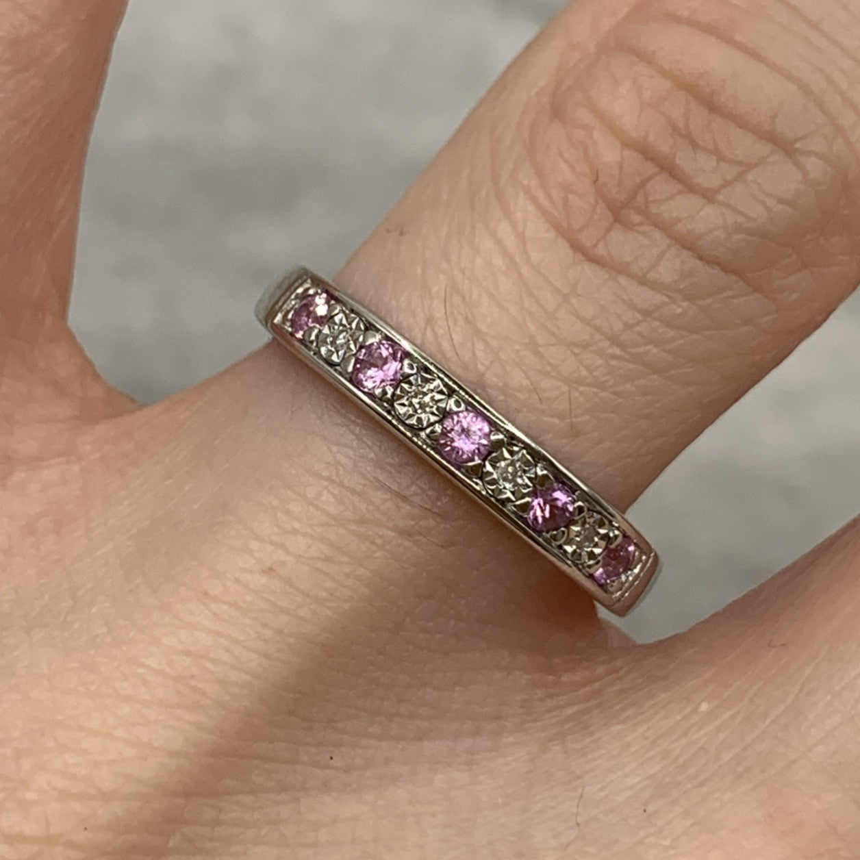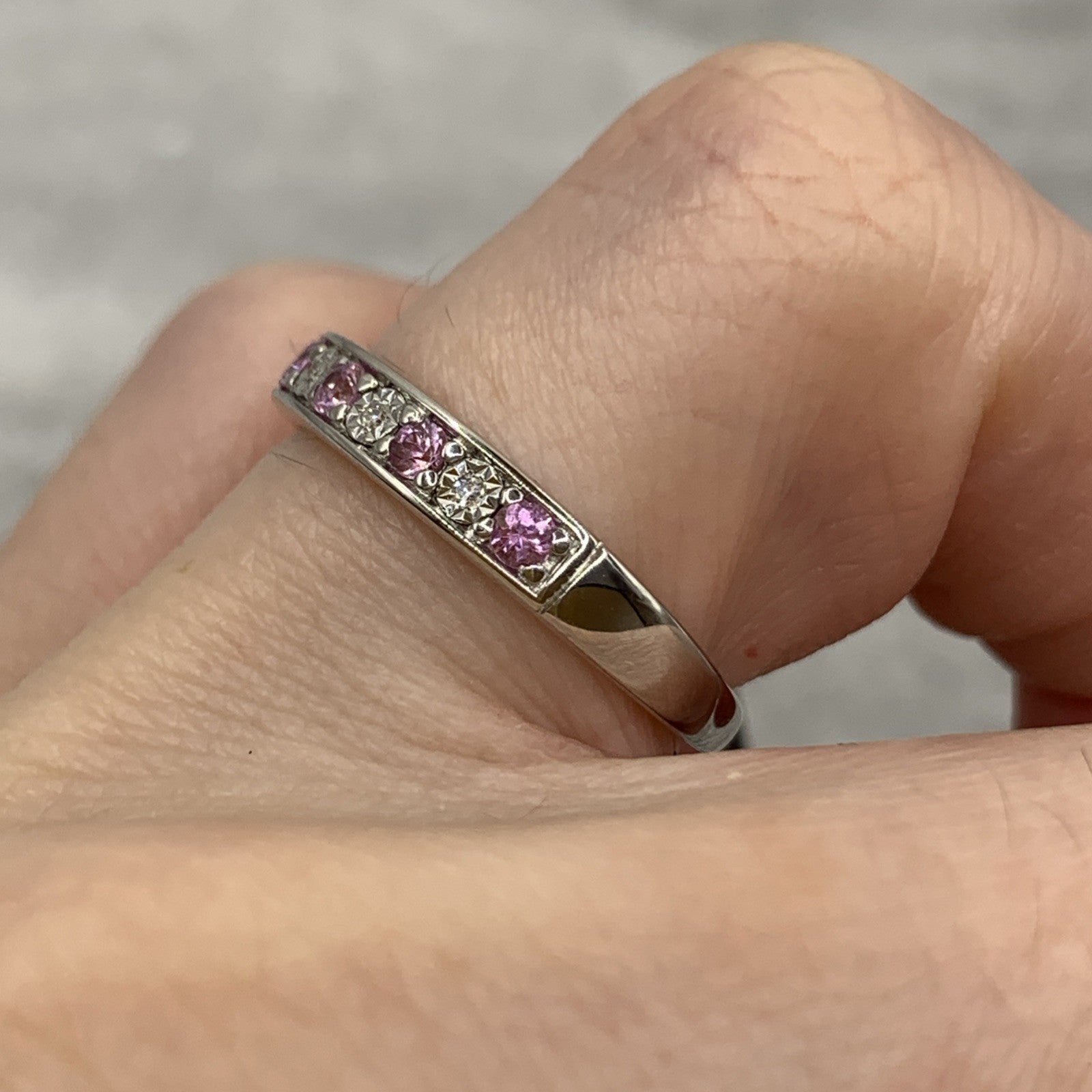 Diamond & Pink Topaz Band Ring 9ct 375 White Gold - Size L 1/2