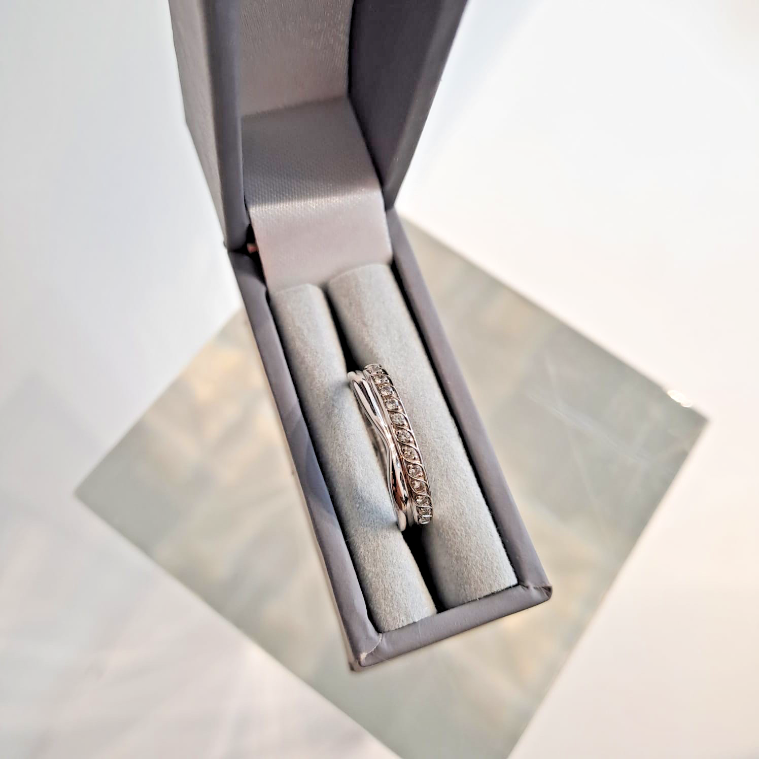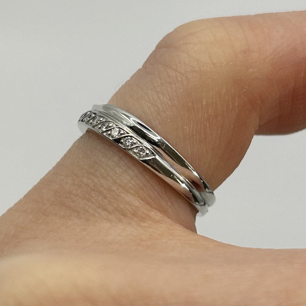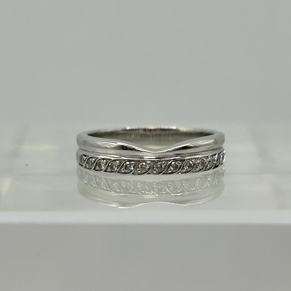 Diamond Ring 9 ct White Gold Curved Wishbone Band - Size G