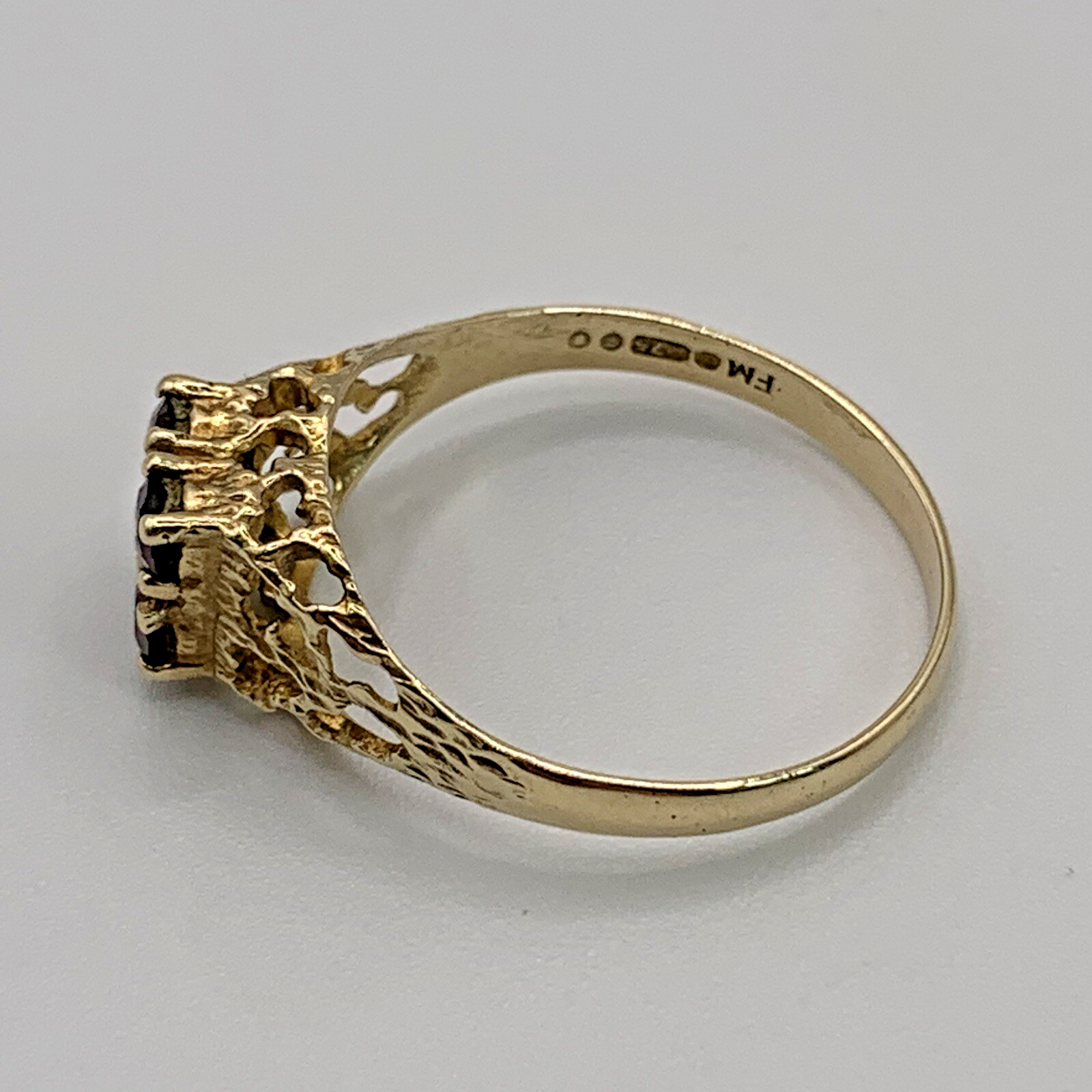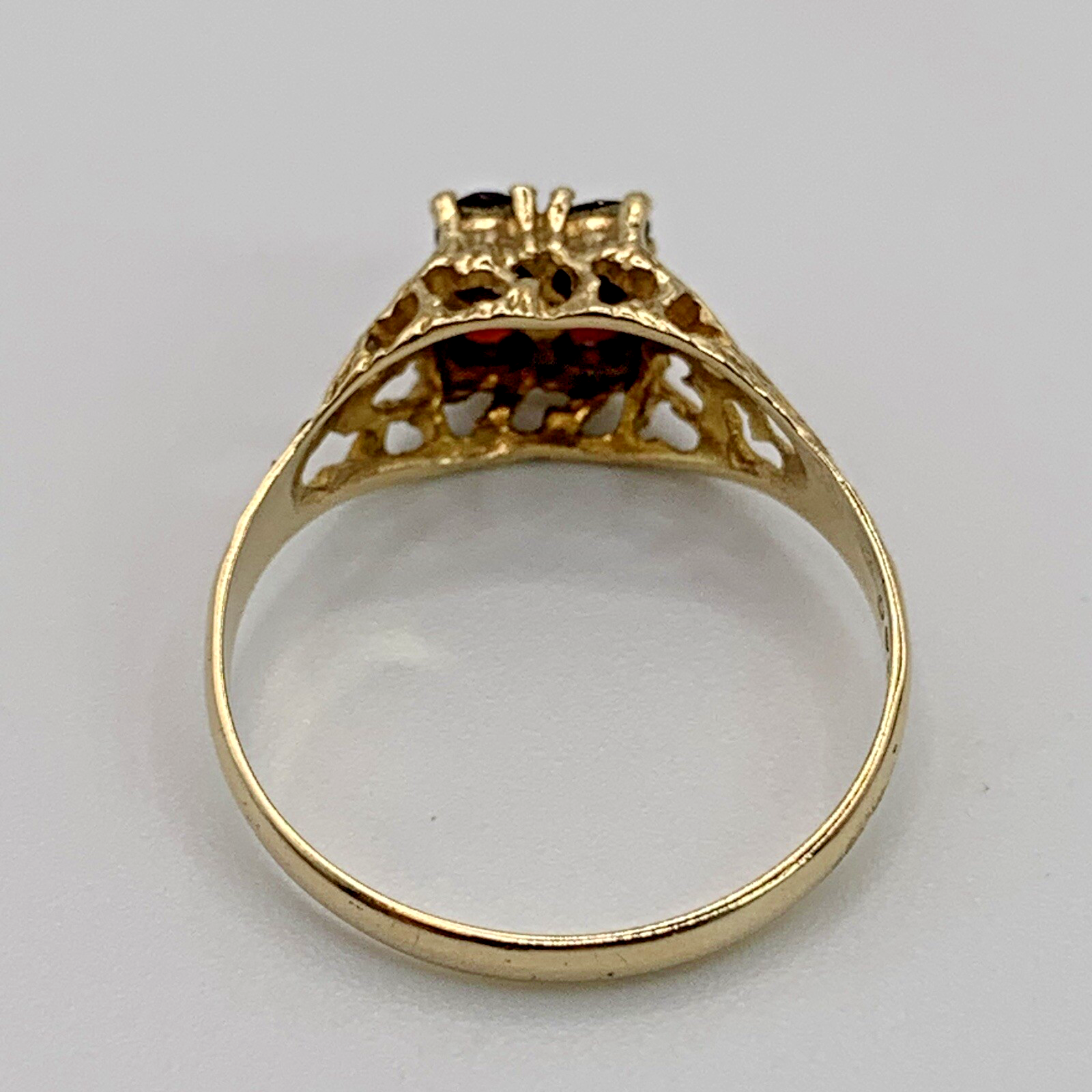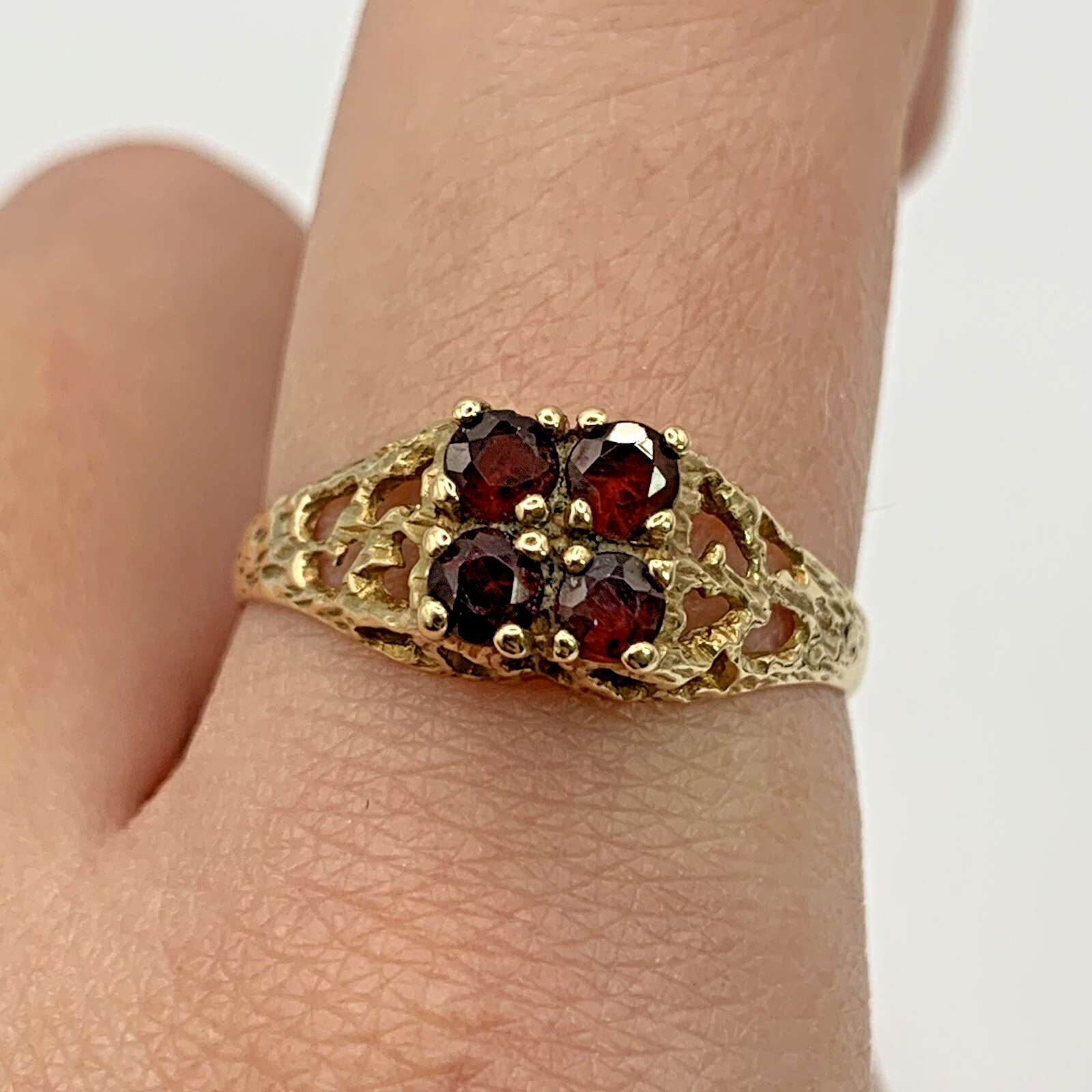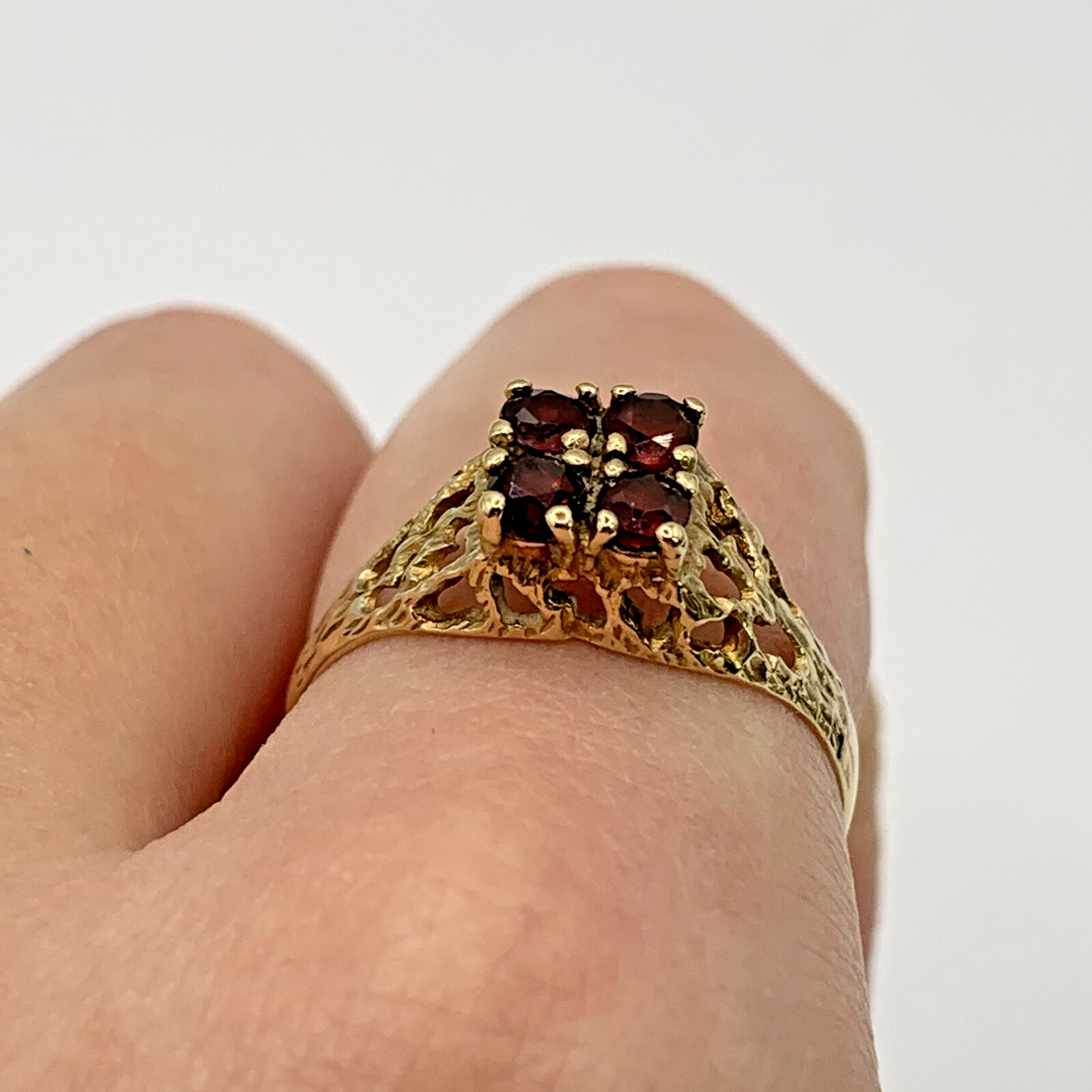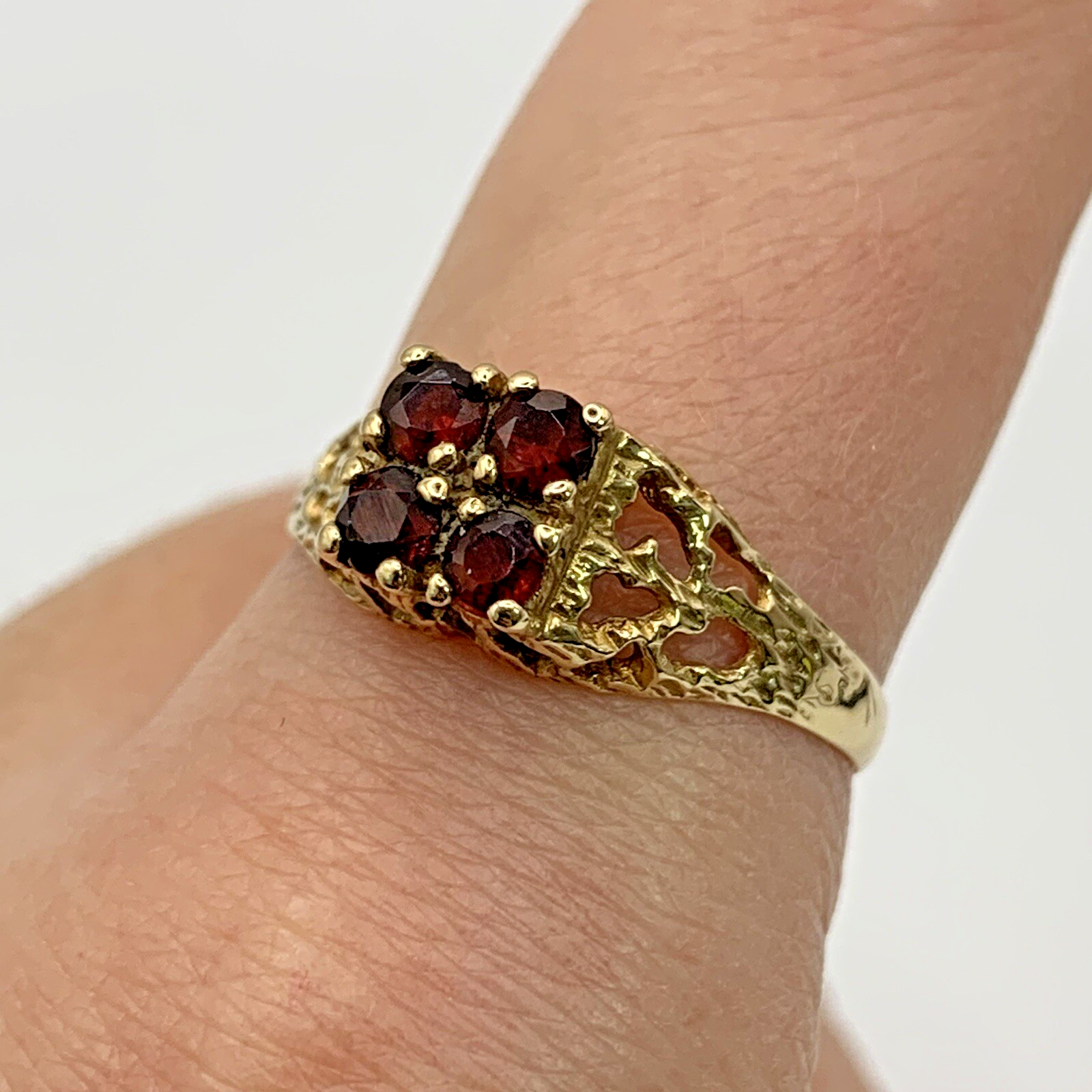 Garnet 9 ct Gold Ring 375 Yellow Gold Cluster with Textured Finish - Size S