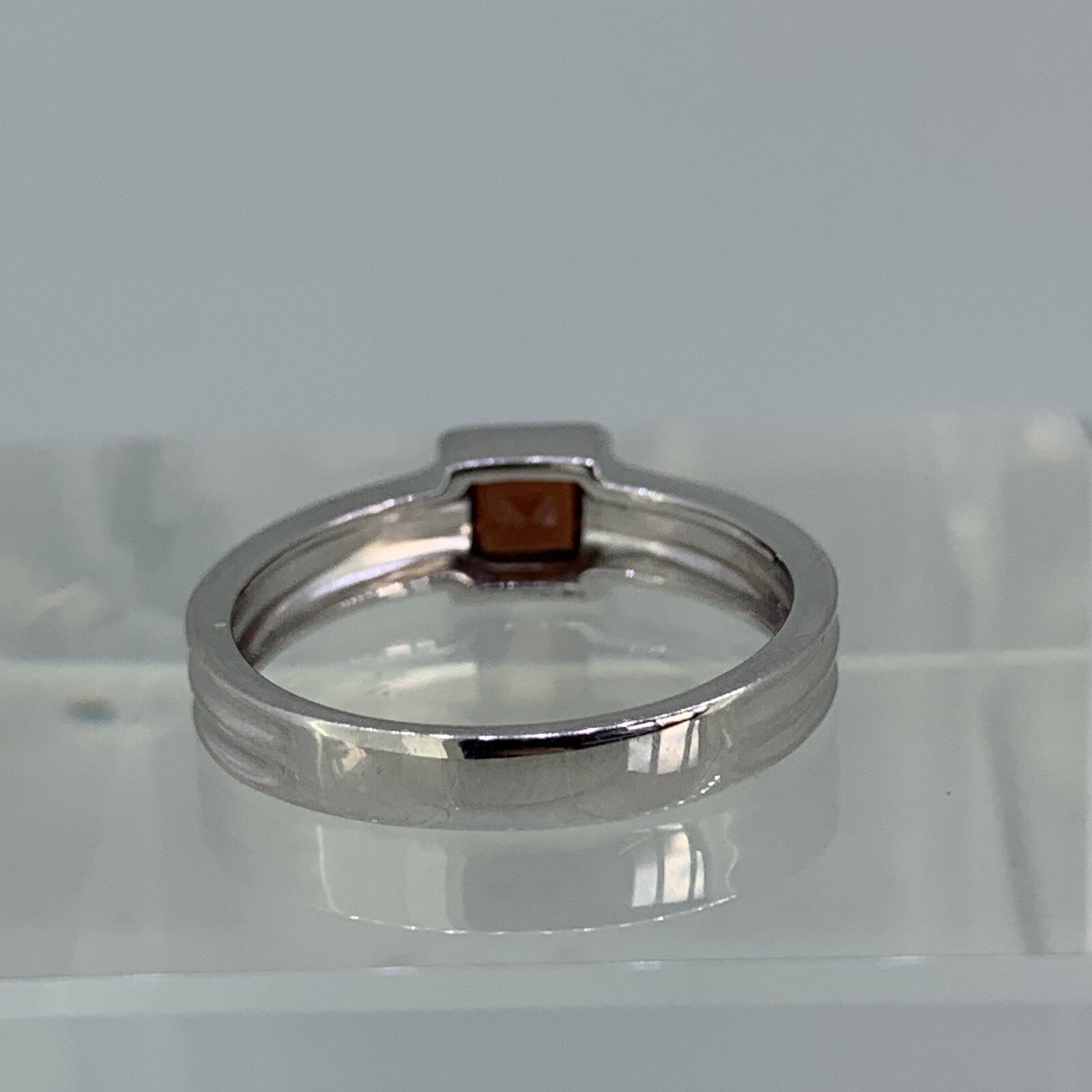 Garnet Square Bezel Set Solitaire Ring 9ct 9K White Gold - Size O