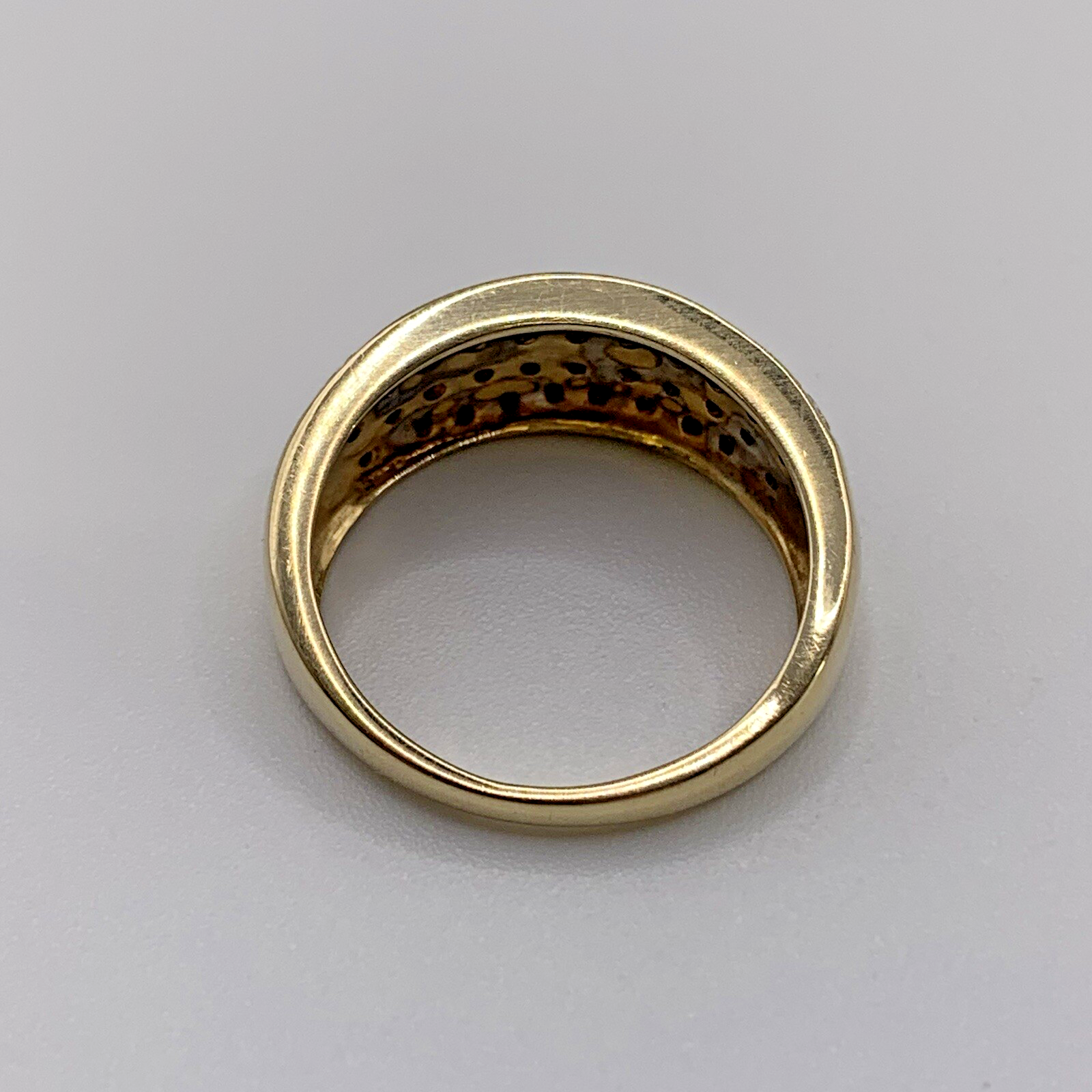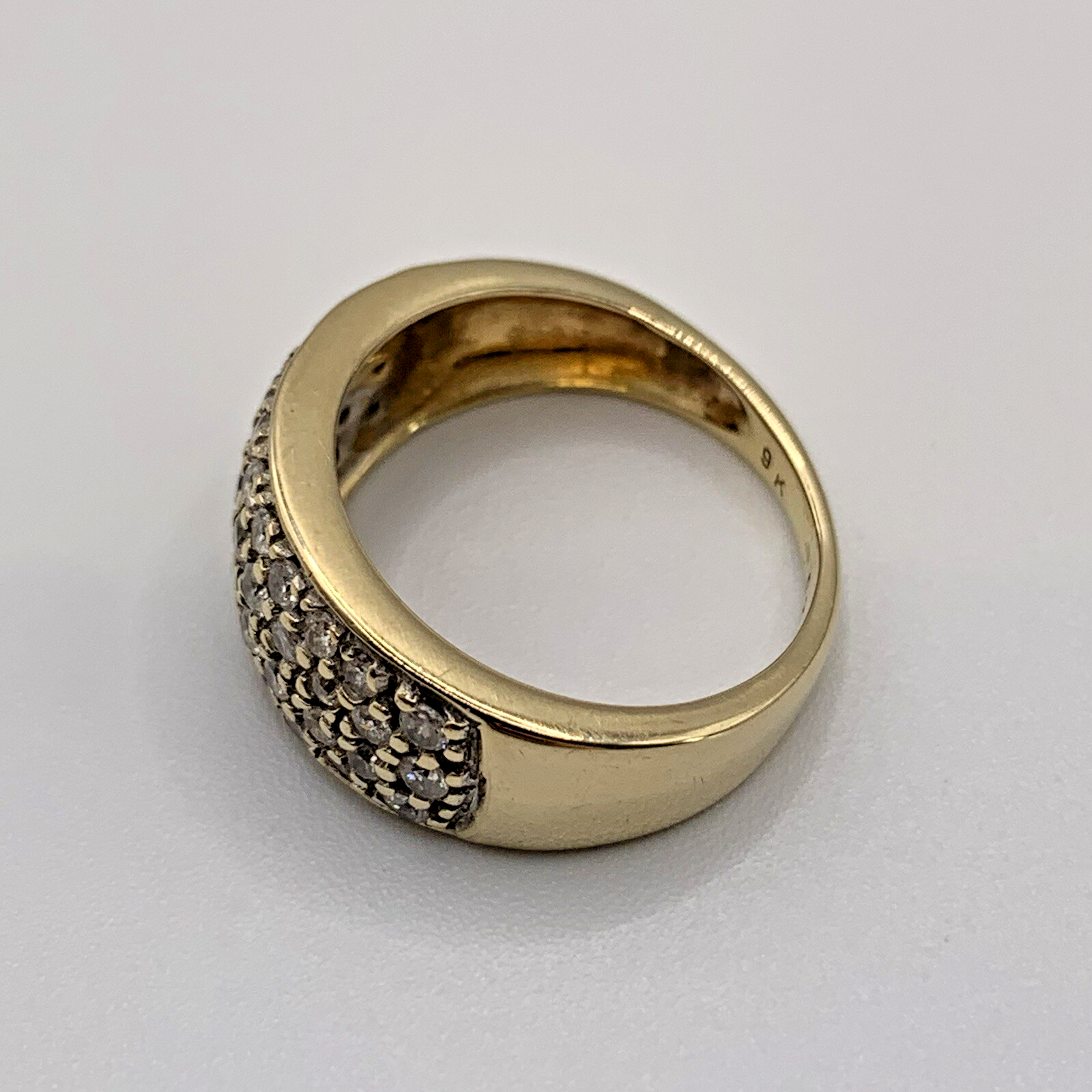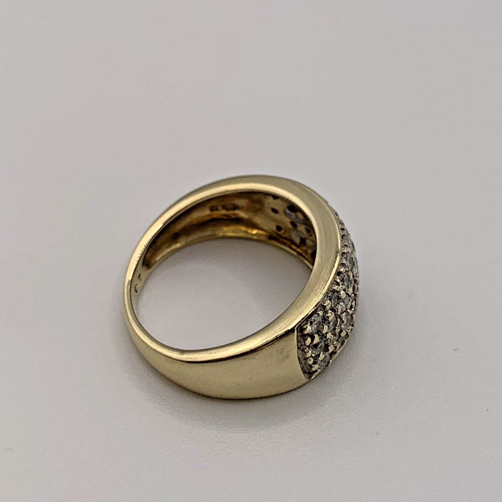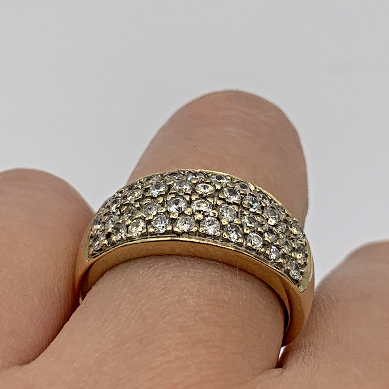 Gold Ring 9 ct 375 Yellow Gold CZ Cluster Chunky Band - Size K 1/2