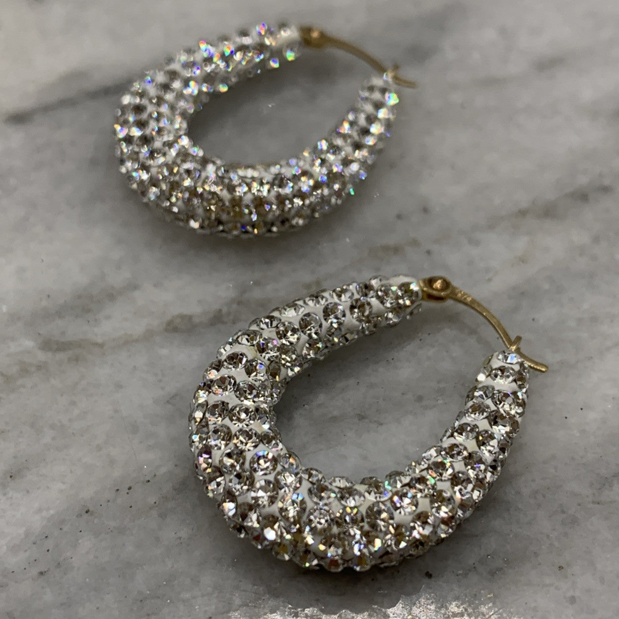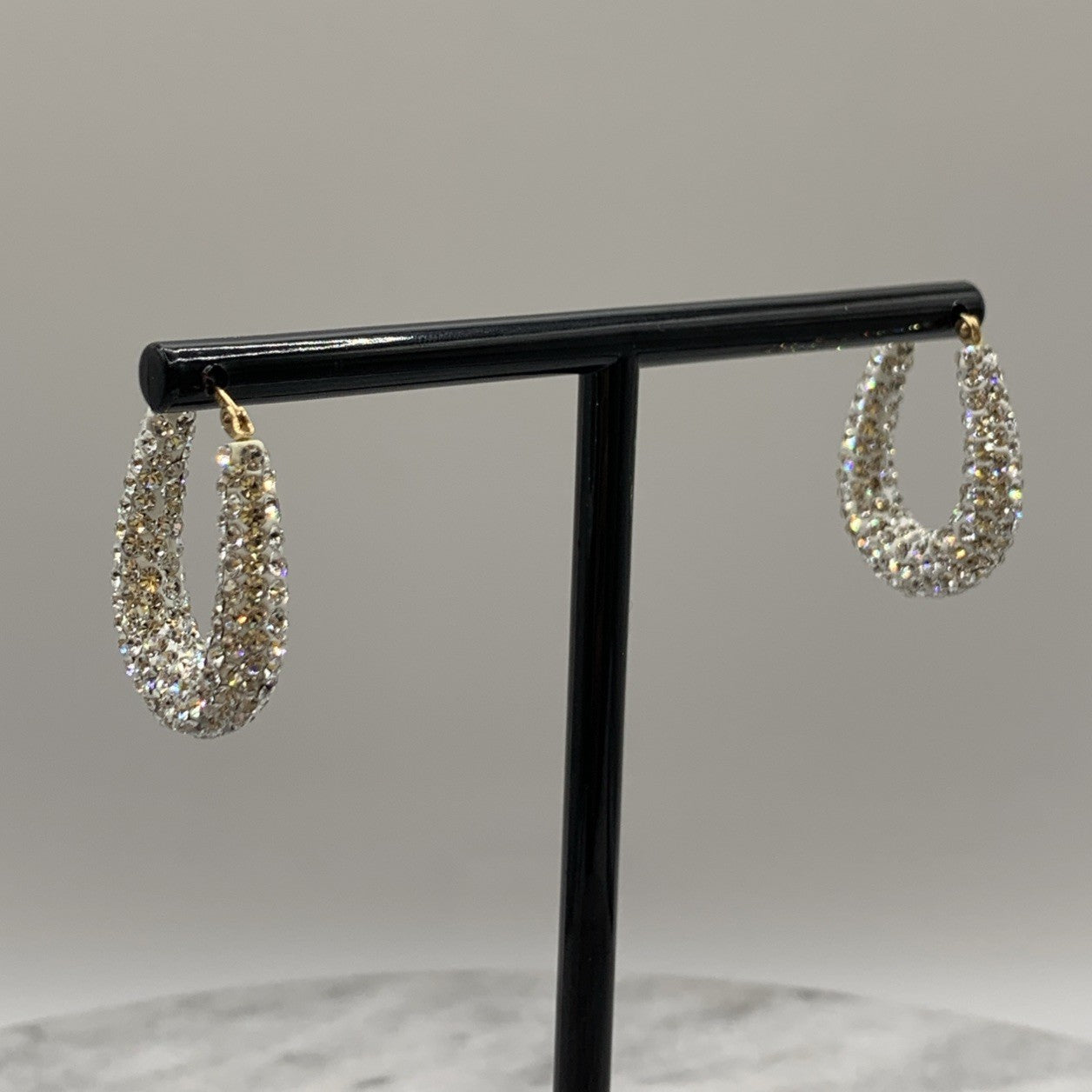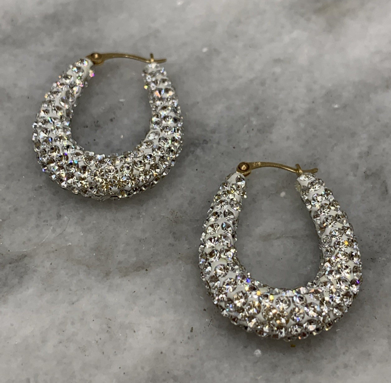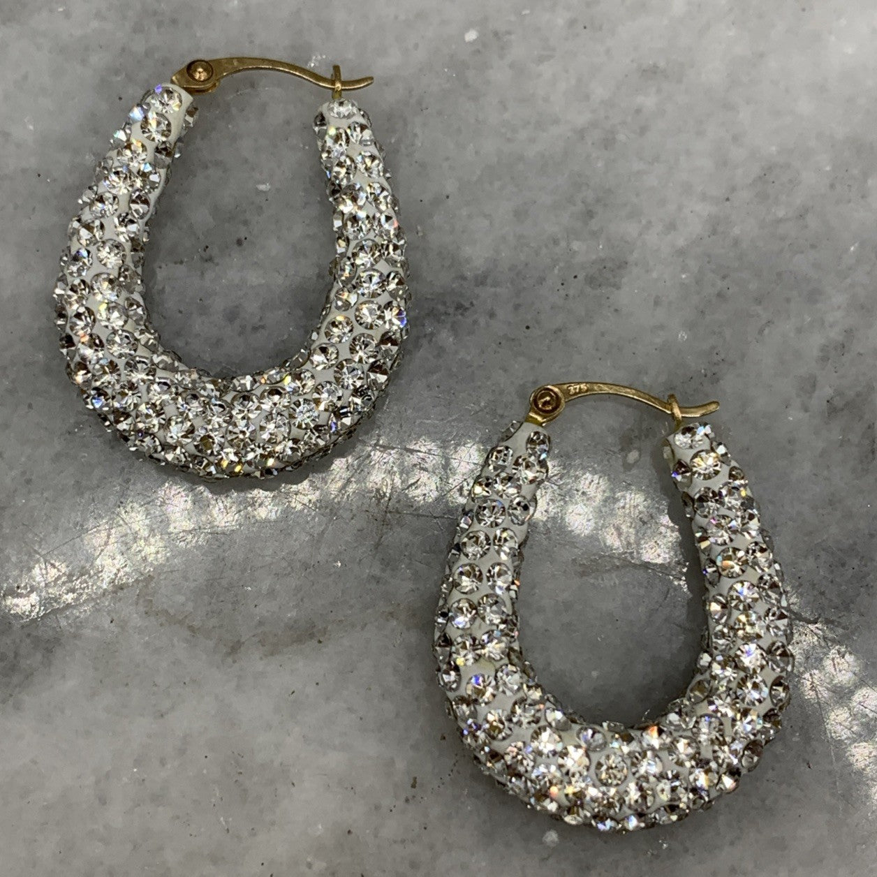 A statement pair of hoop earrings adorned with sparkling cubic zirconia gemstones. Latch fastening.