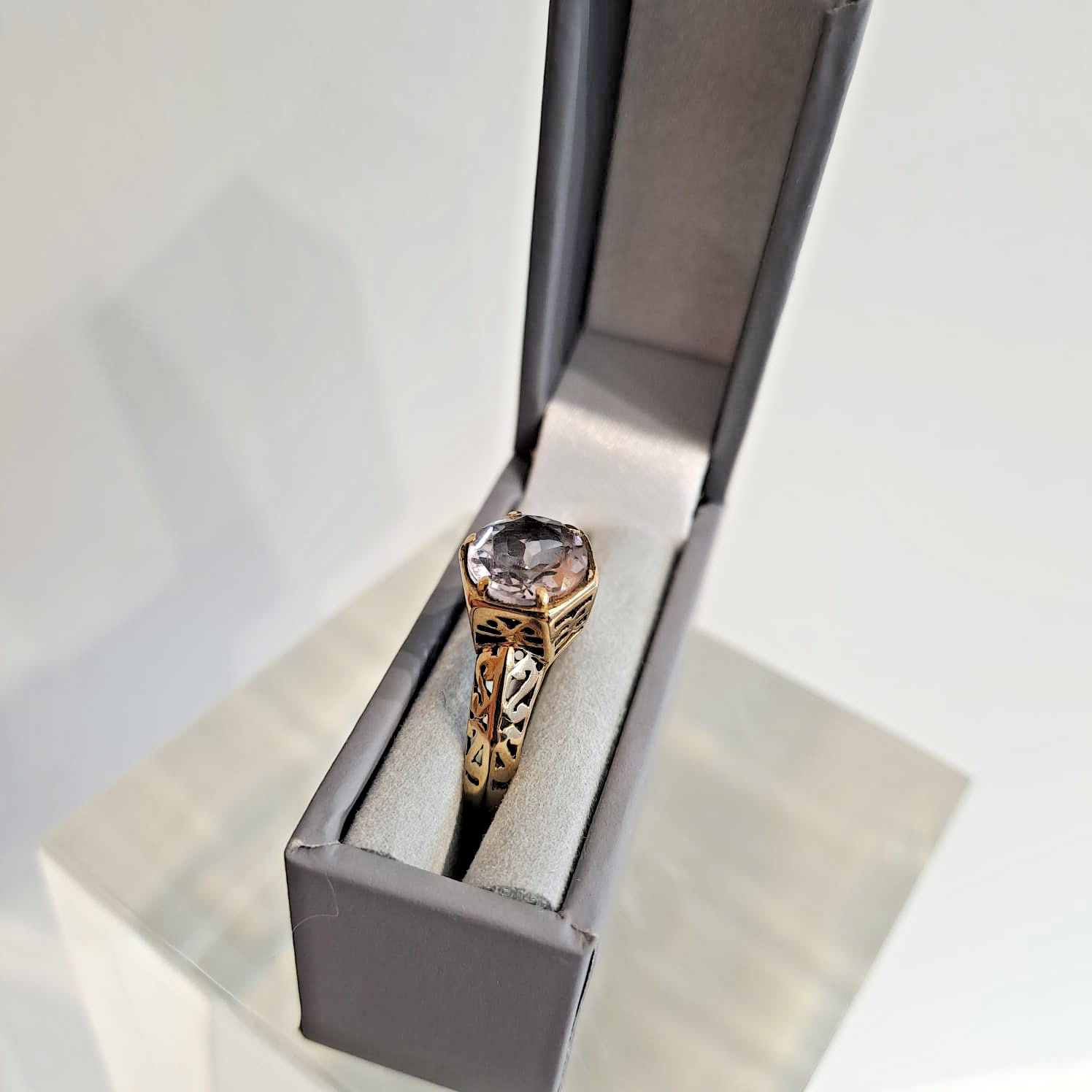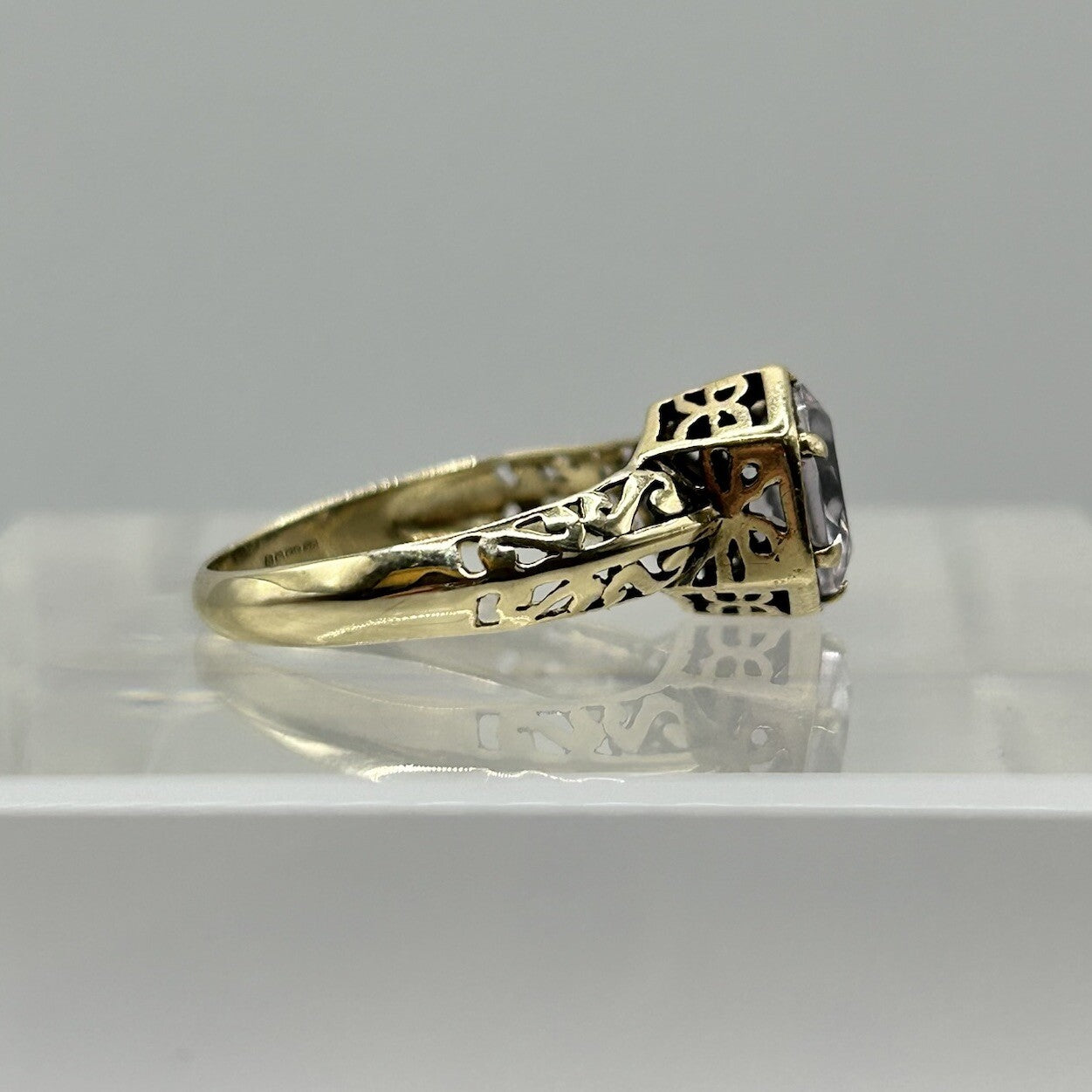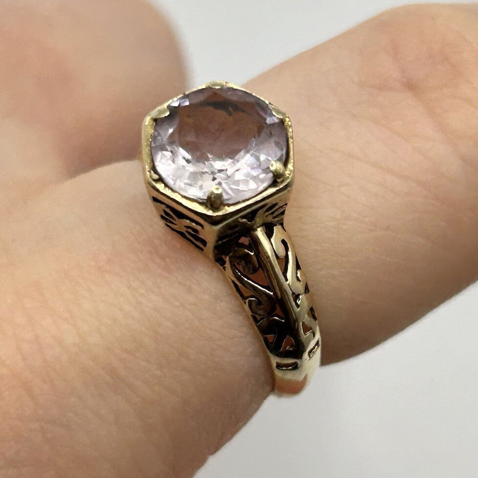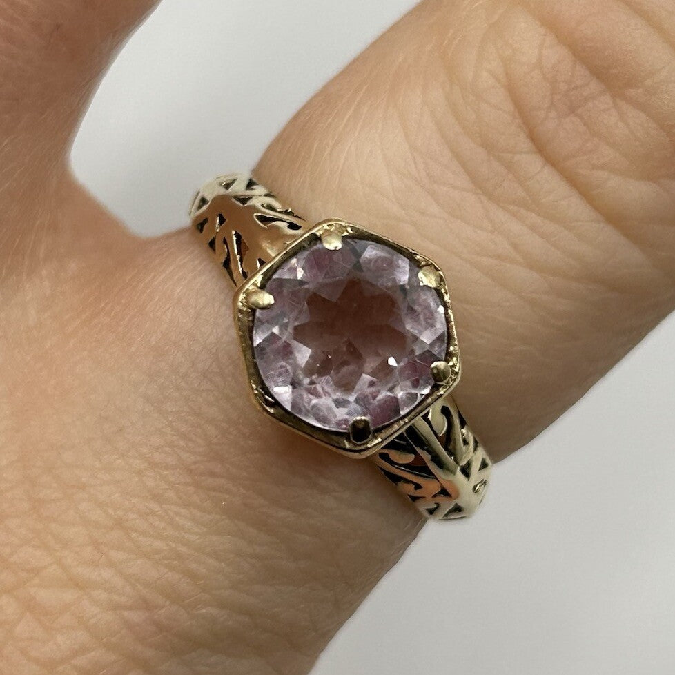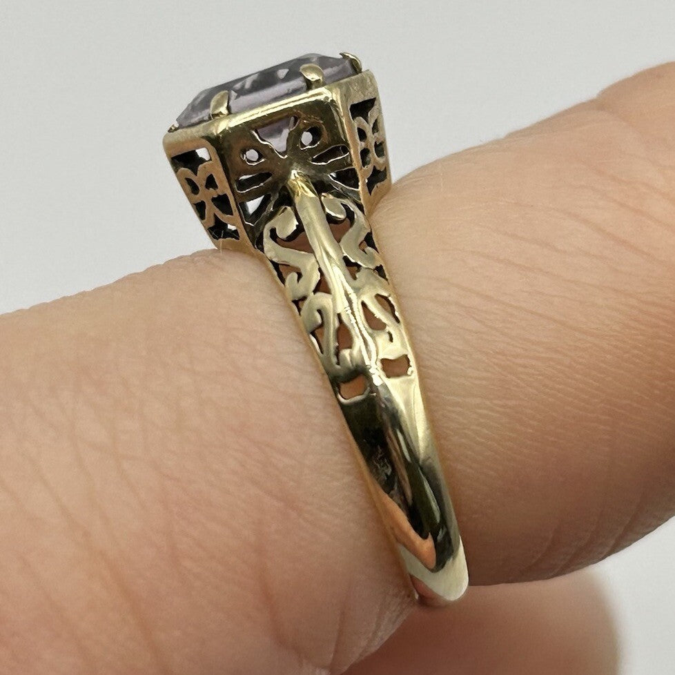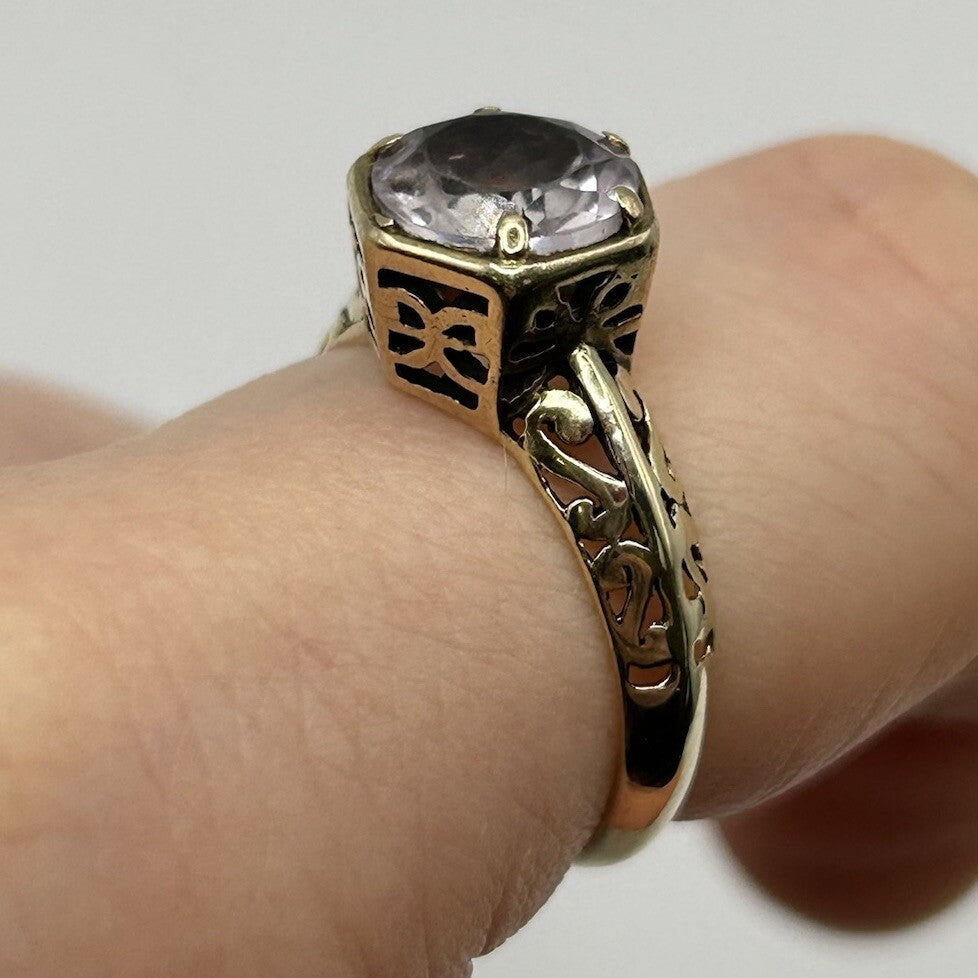 Pale Amethyst 9 ct Gold Ring - 375 Yellow Gold Solitaire Cut Out Design - Size N