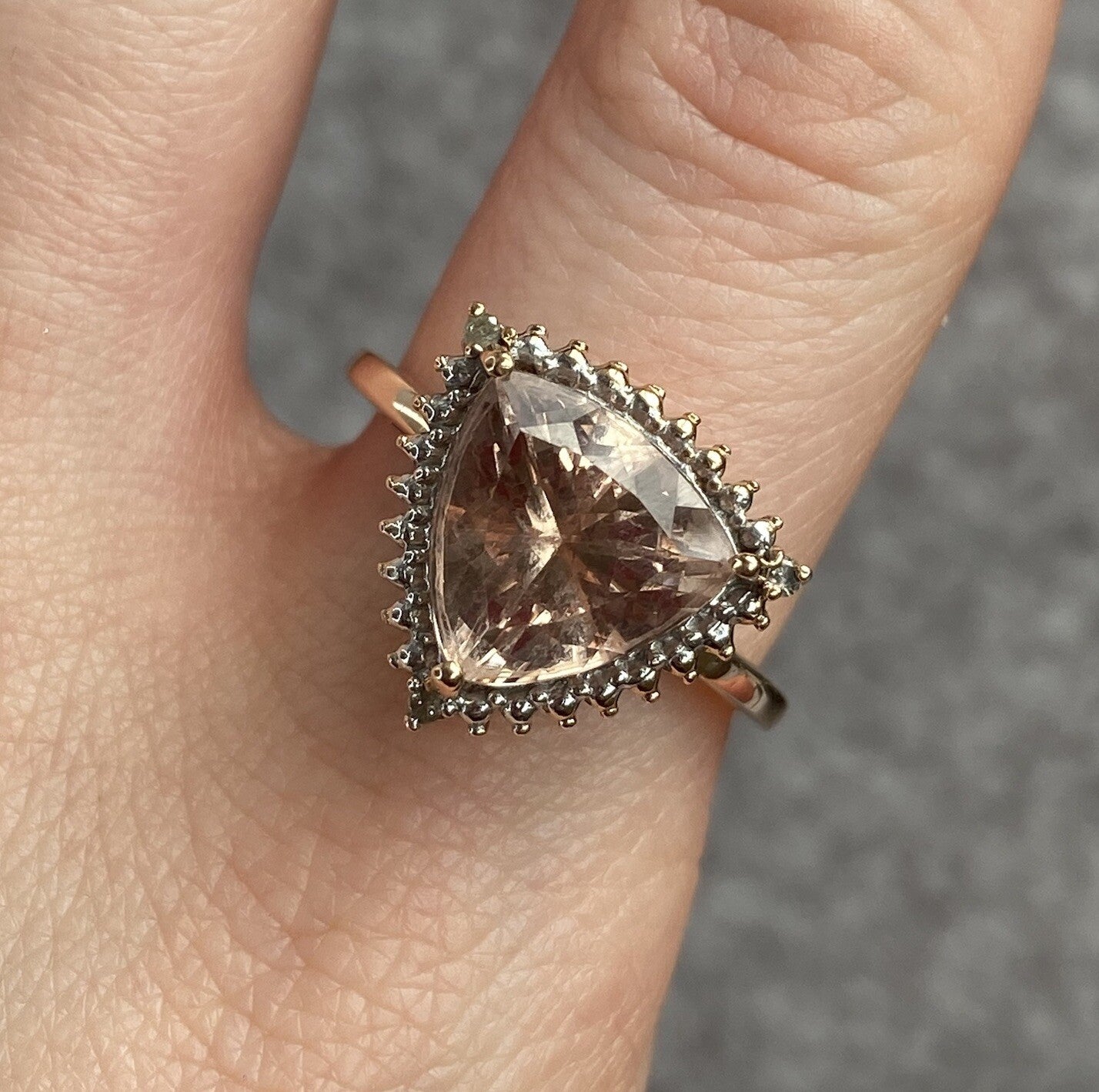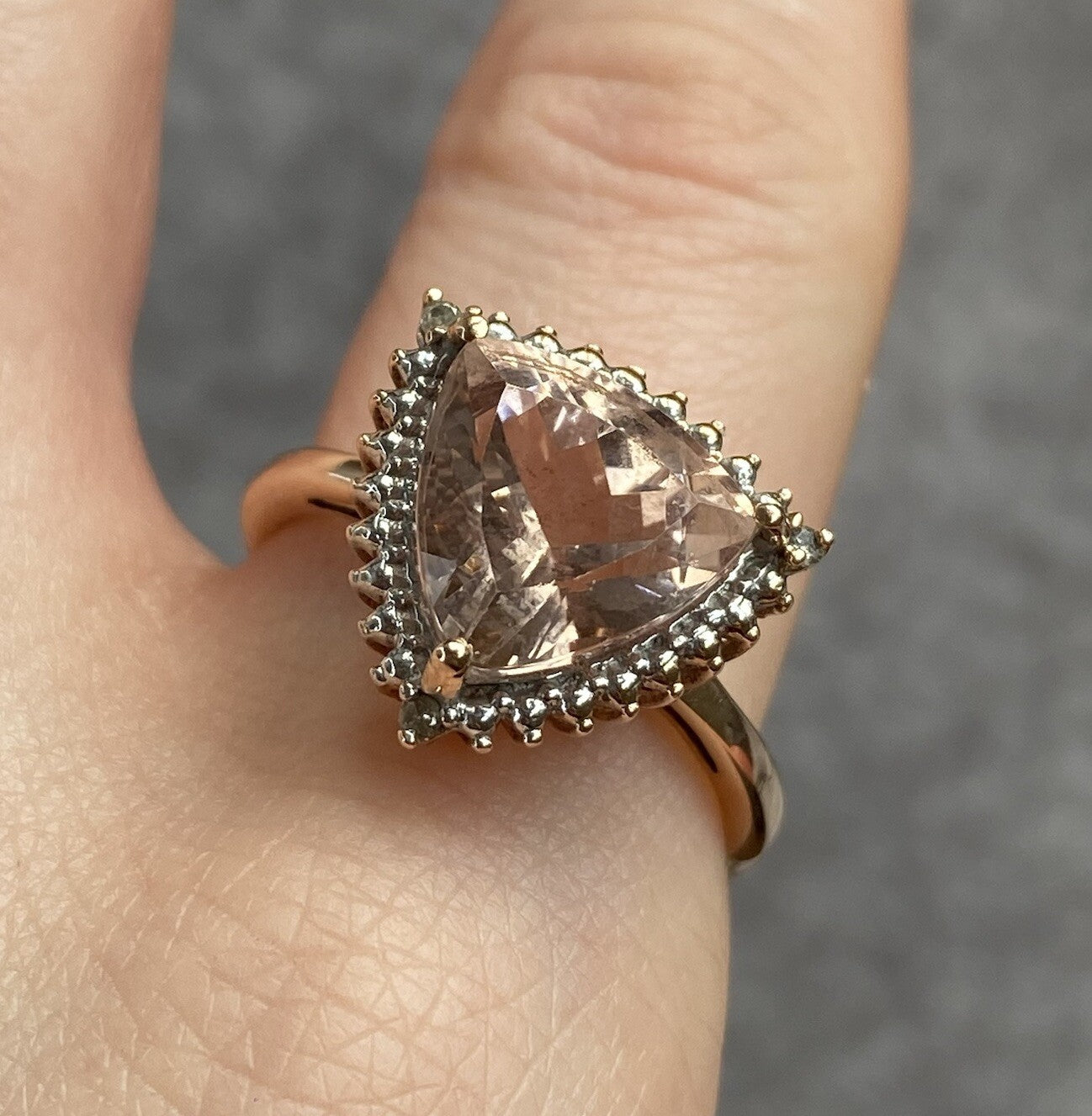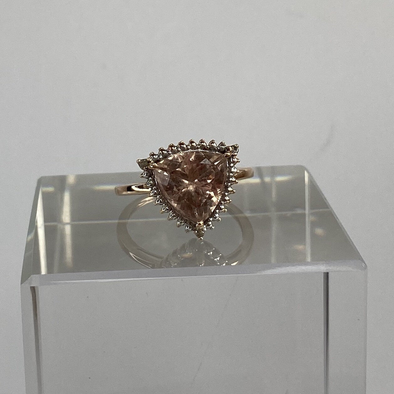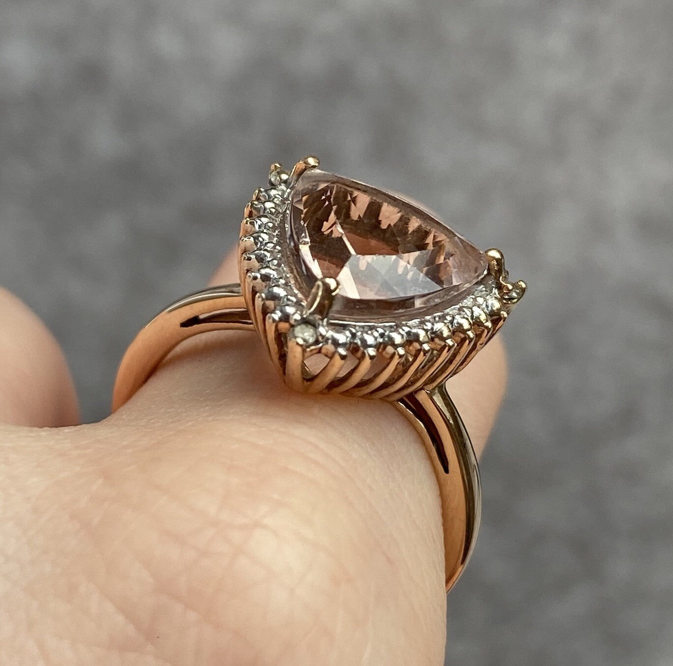 Pink Champagne Topaz & Diamond Trilliant Ornate Ring 9ct 375 Rose Gold - Size S
