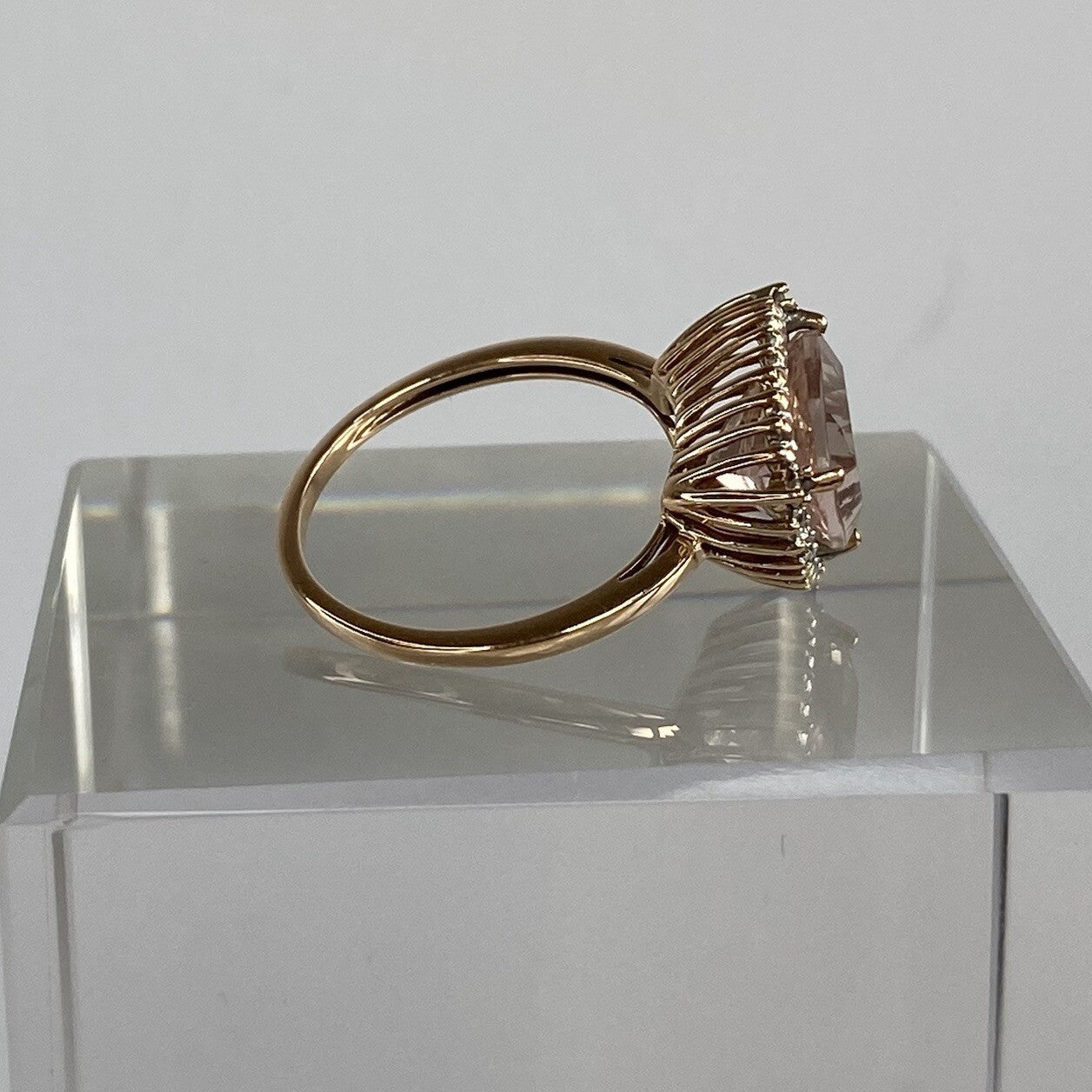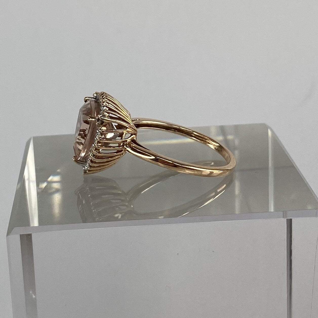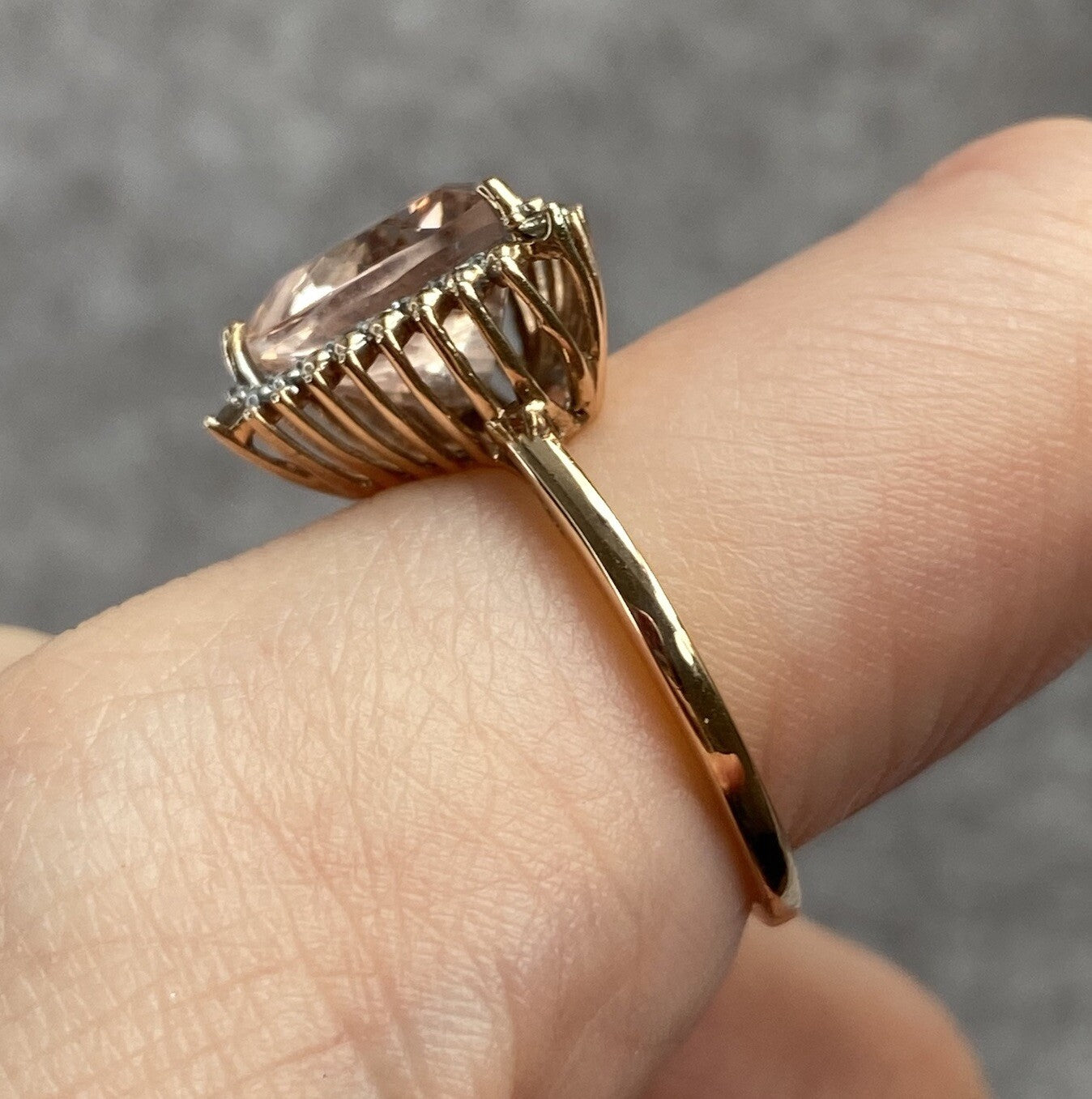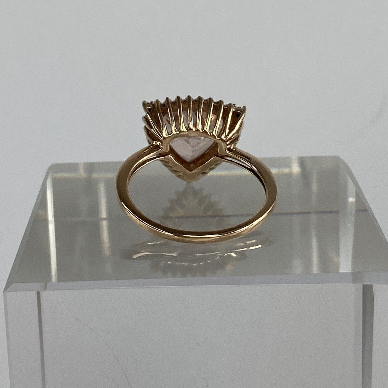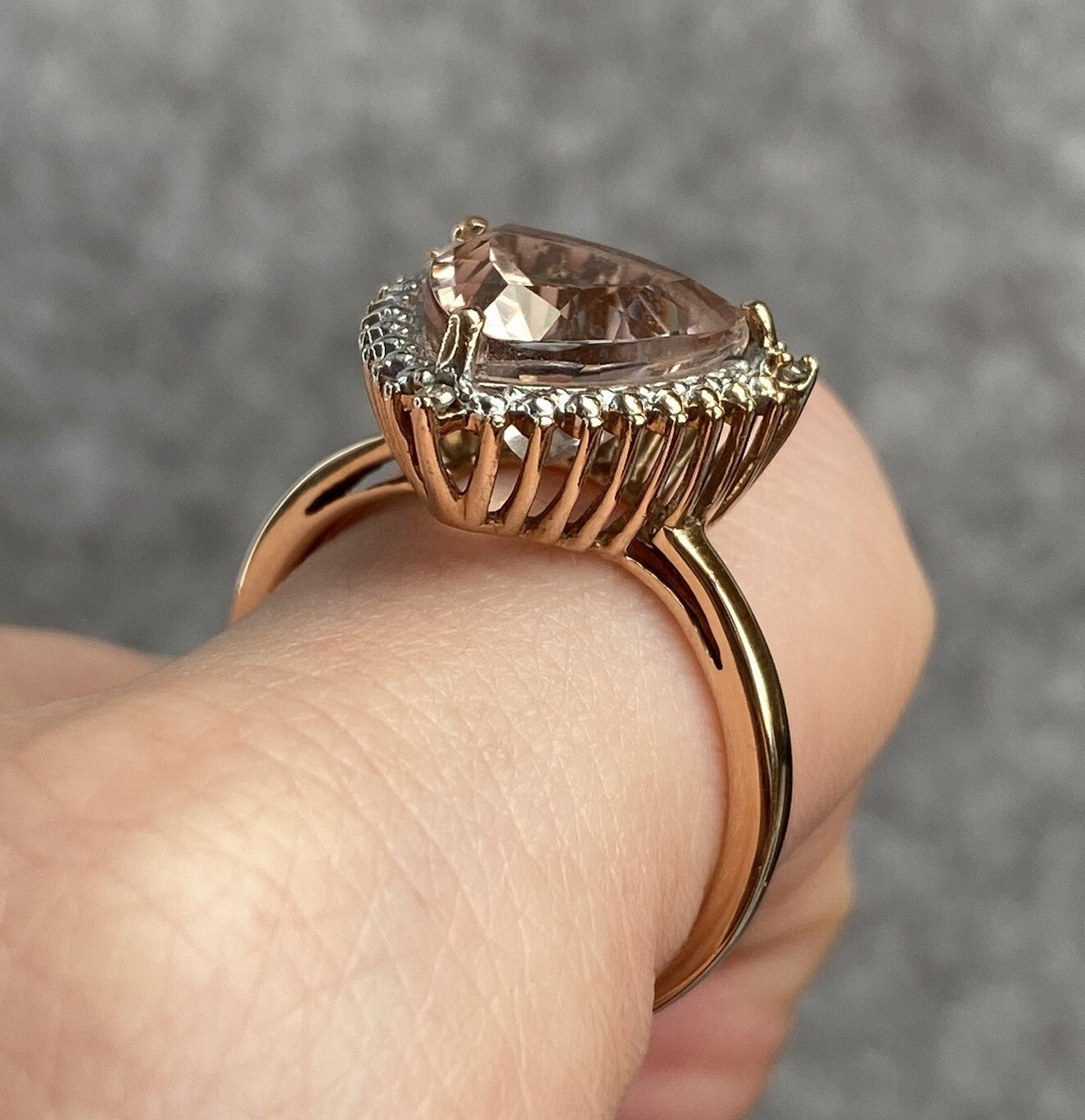 Pink Champagne Topaz & Diamond Trilliant Ornate Ring 9ct 375 Rose Gold - Size S