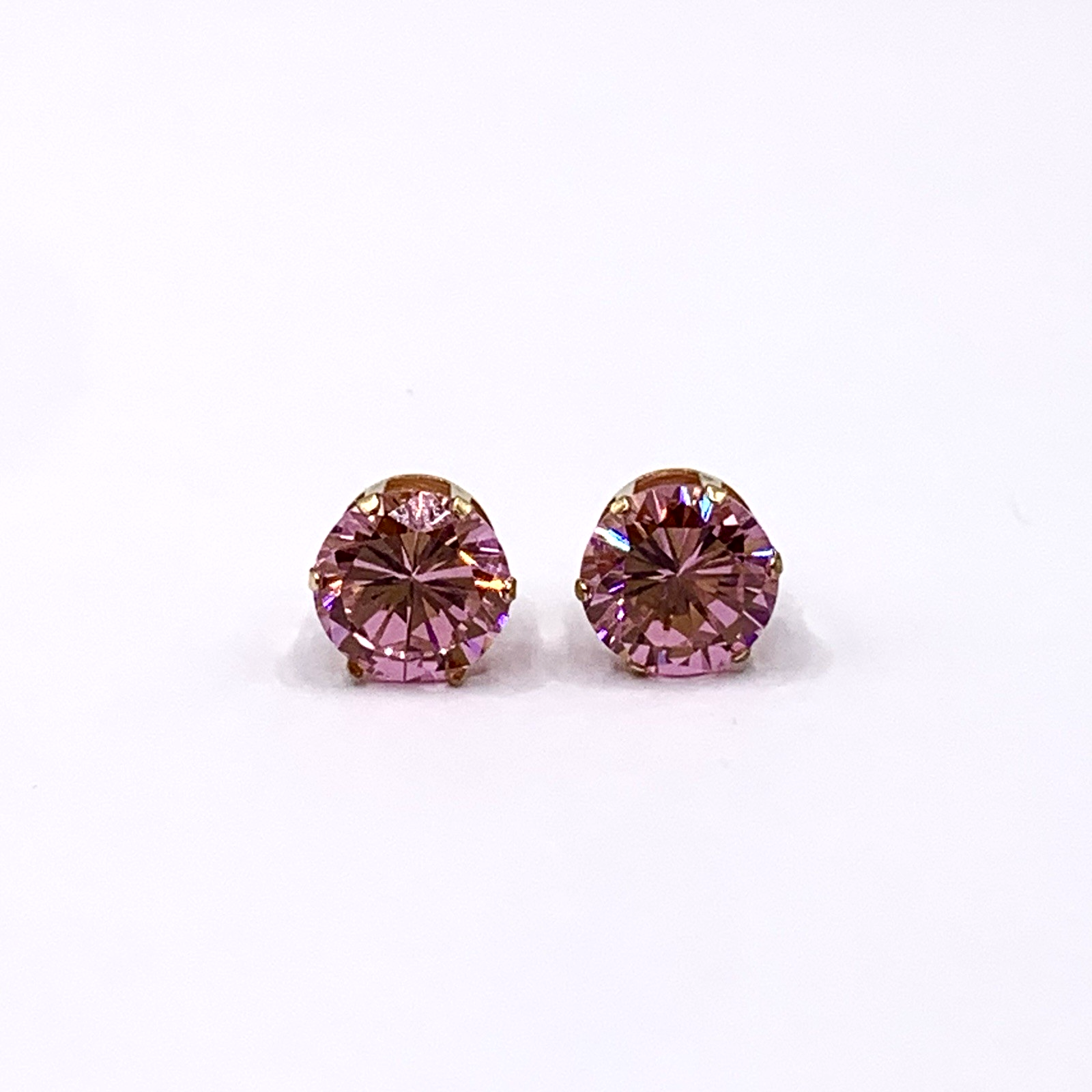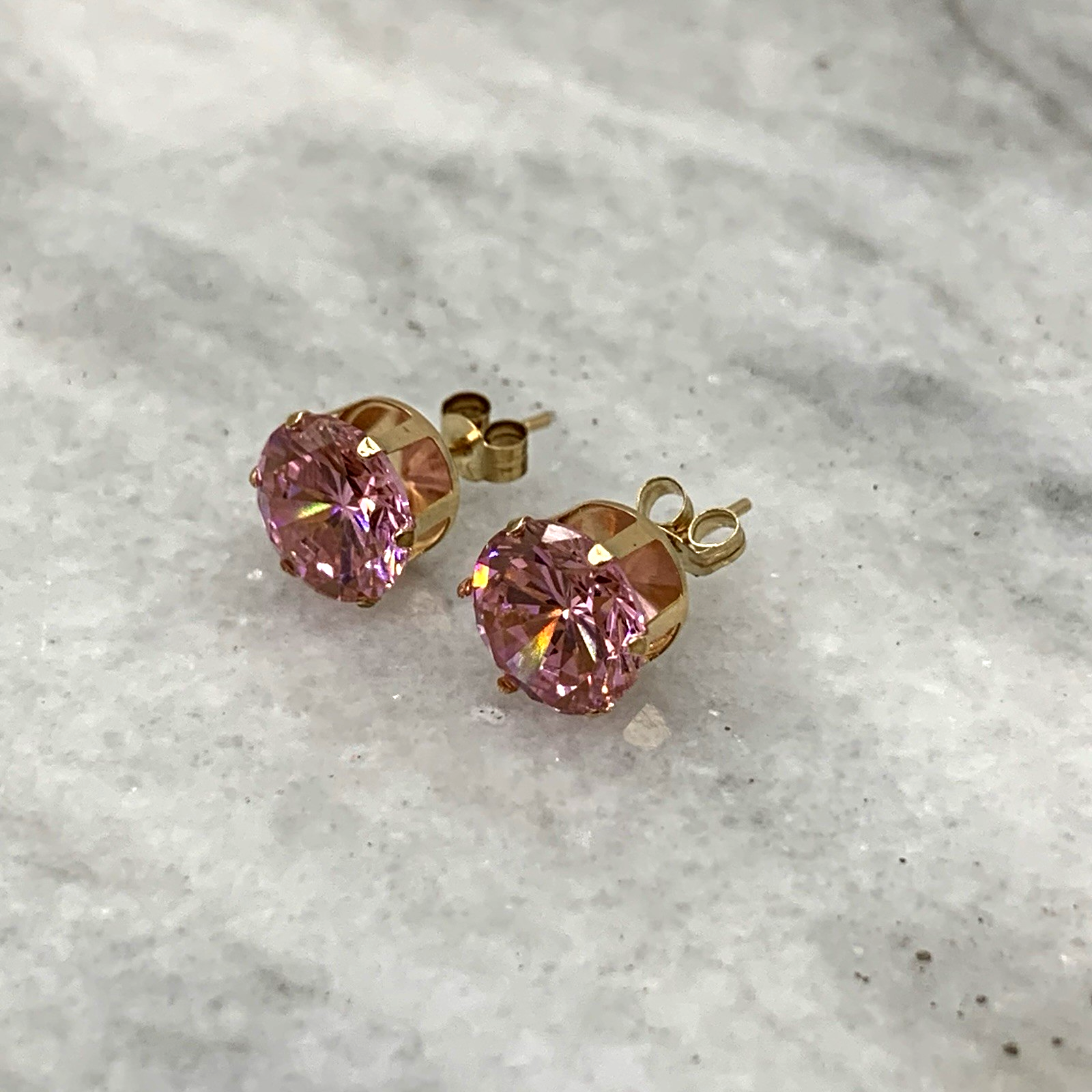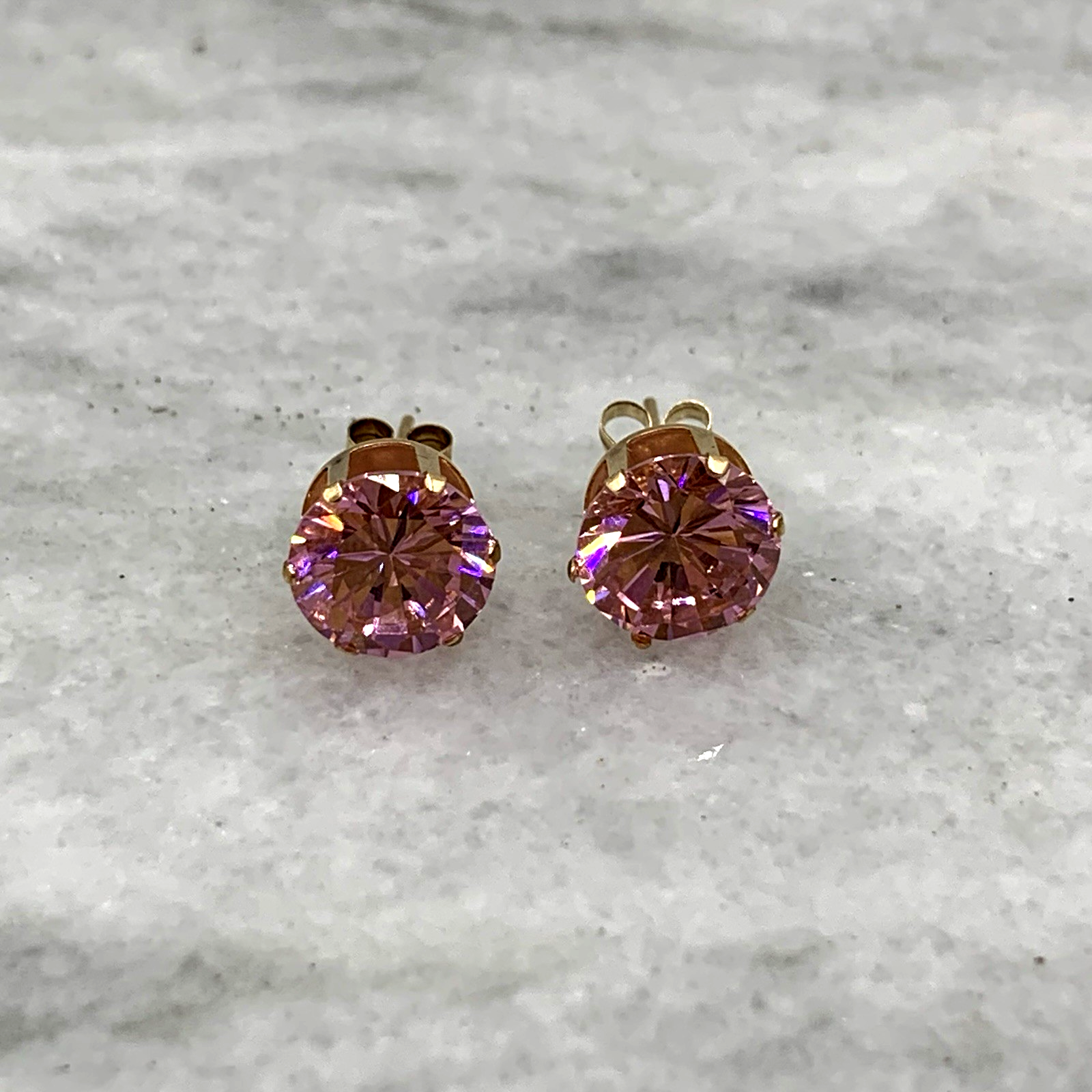 Pink Topaz Earrings 9 ct Round Cut Solitaire Stud 375 Yellow Gold