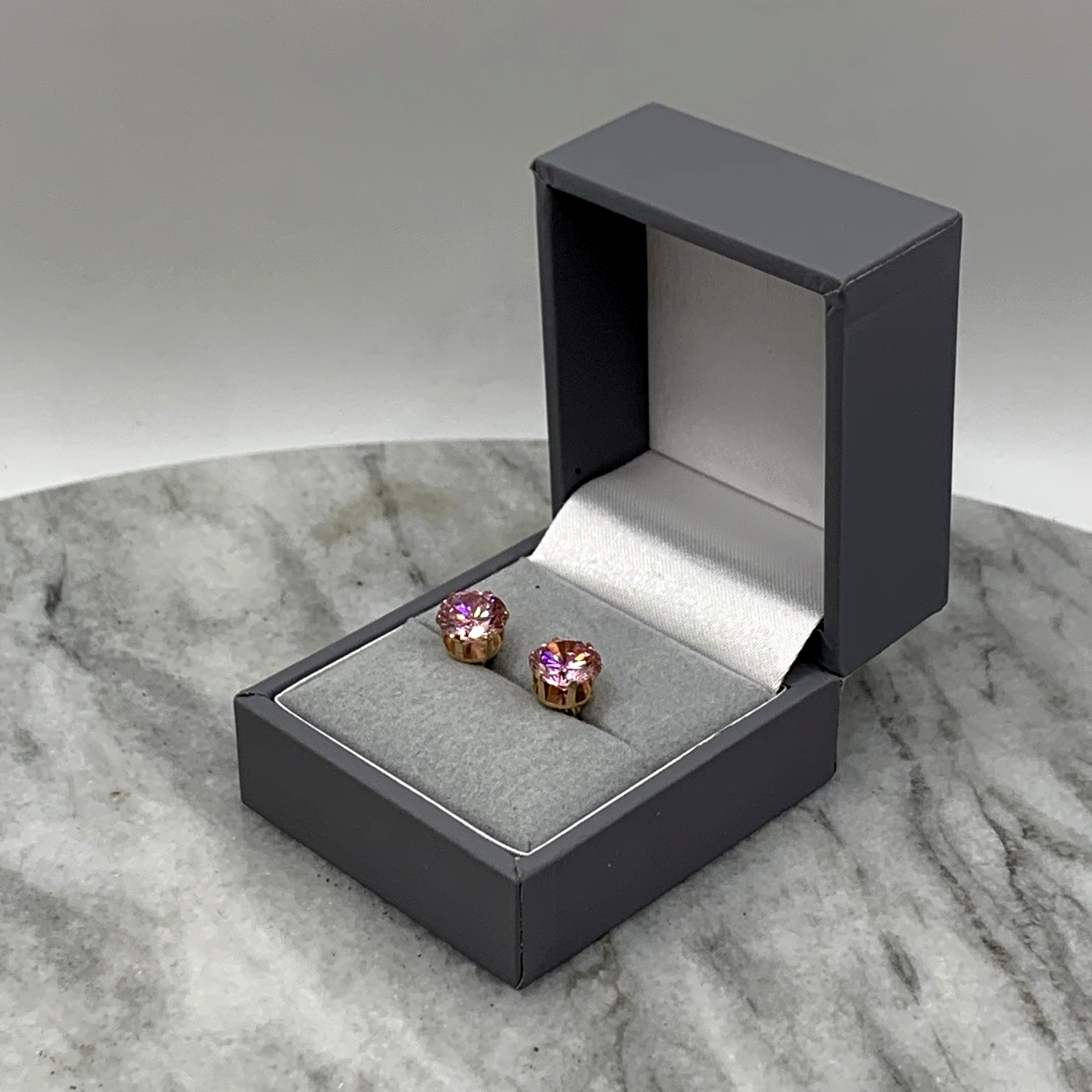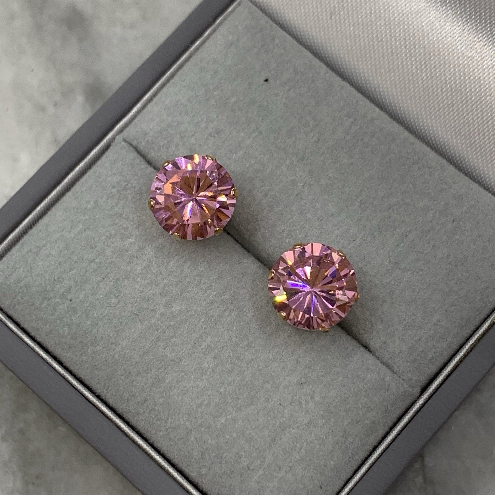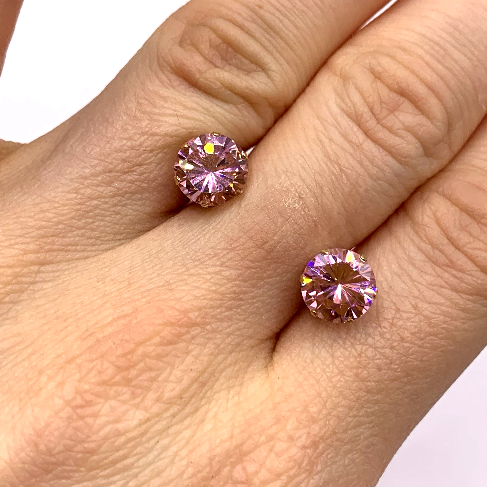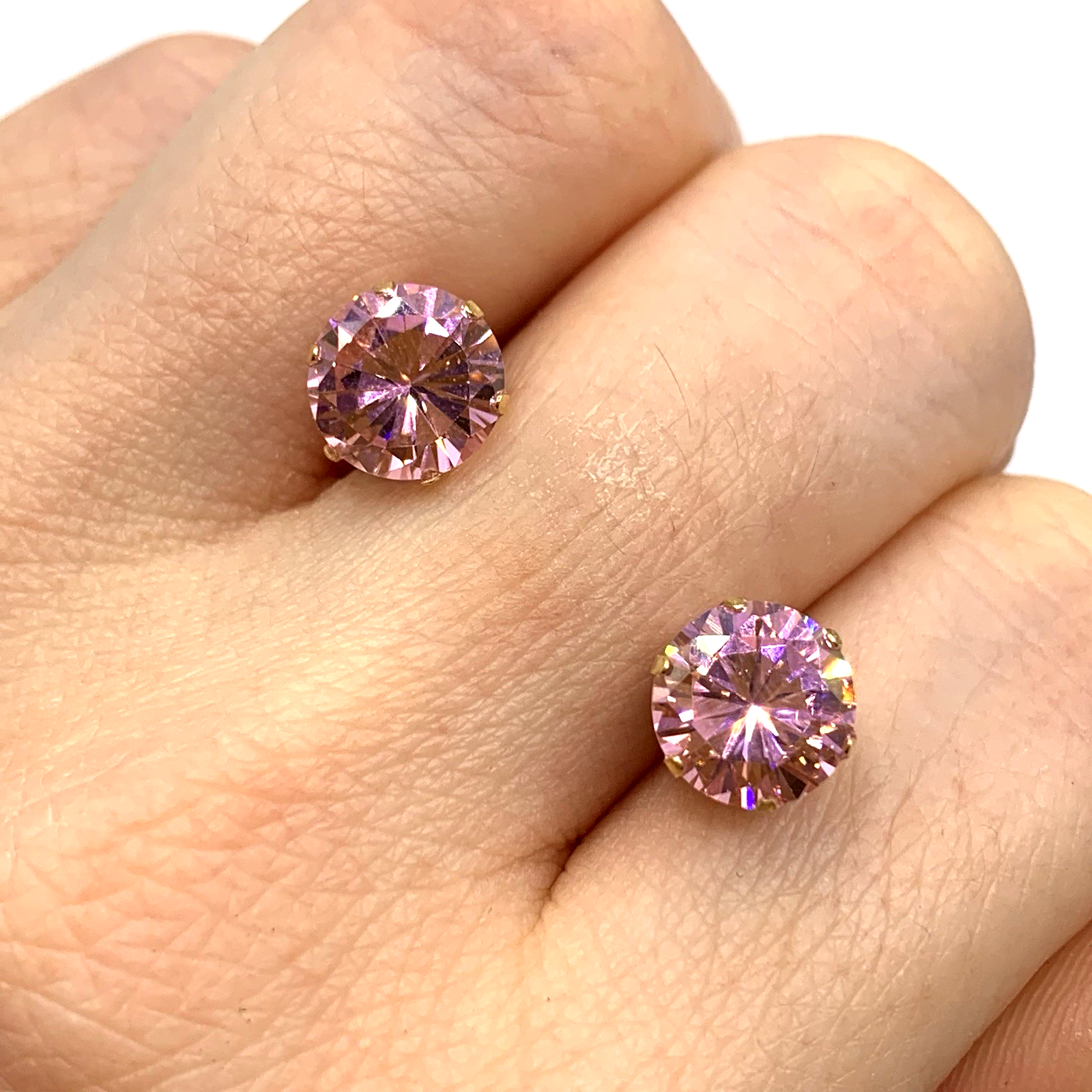 Pink Topaz Earrings 9 ct Round Cut Solitaire Stud 375 Yellow Gold
