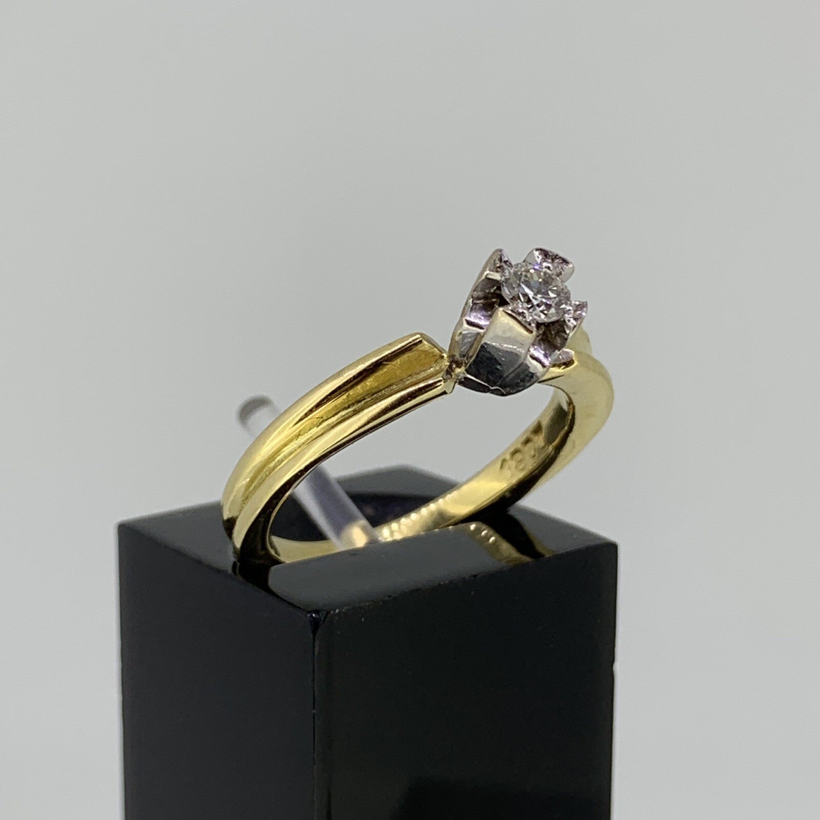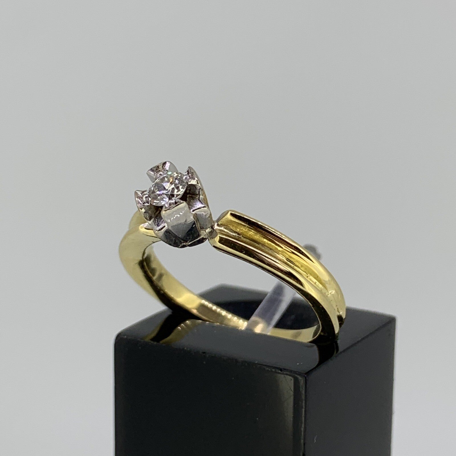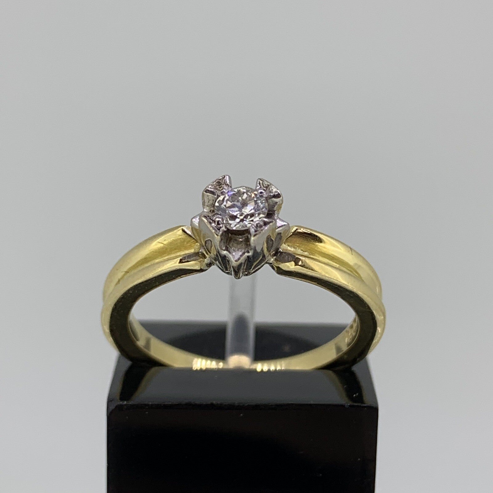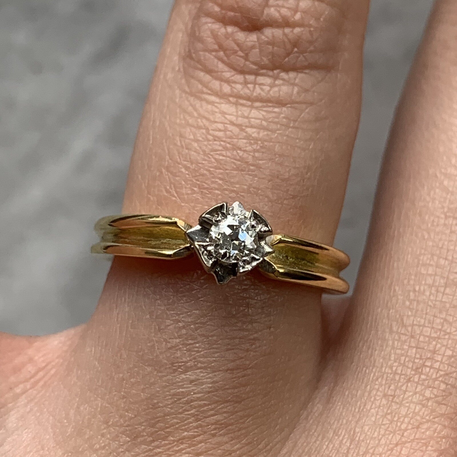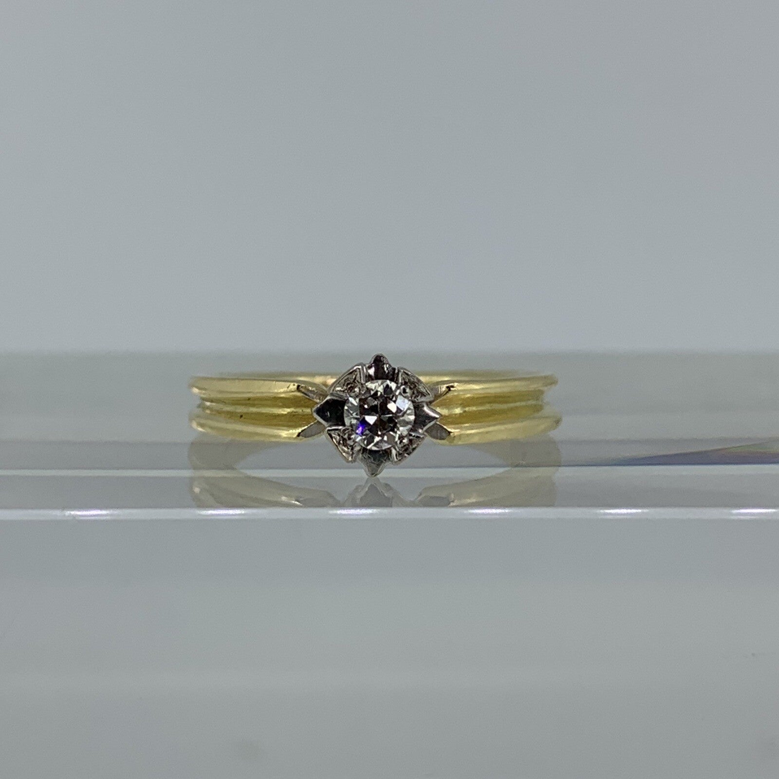 Retro Unique Diamond Solitaire .15ct Ring 18ct 18k Yellow Gold - Size K 1/2