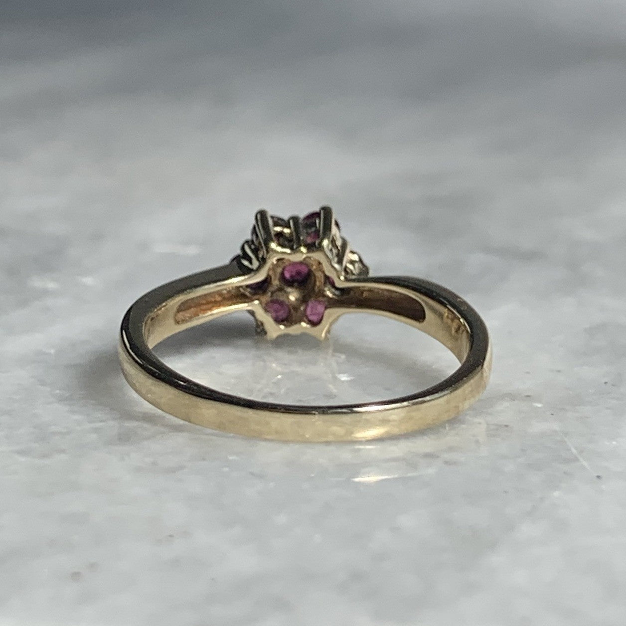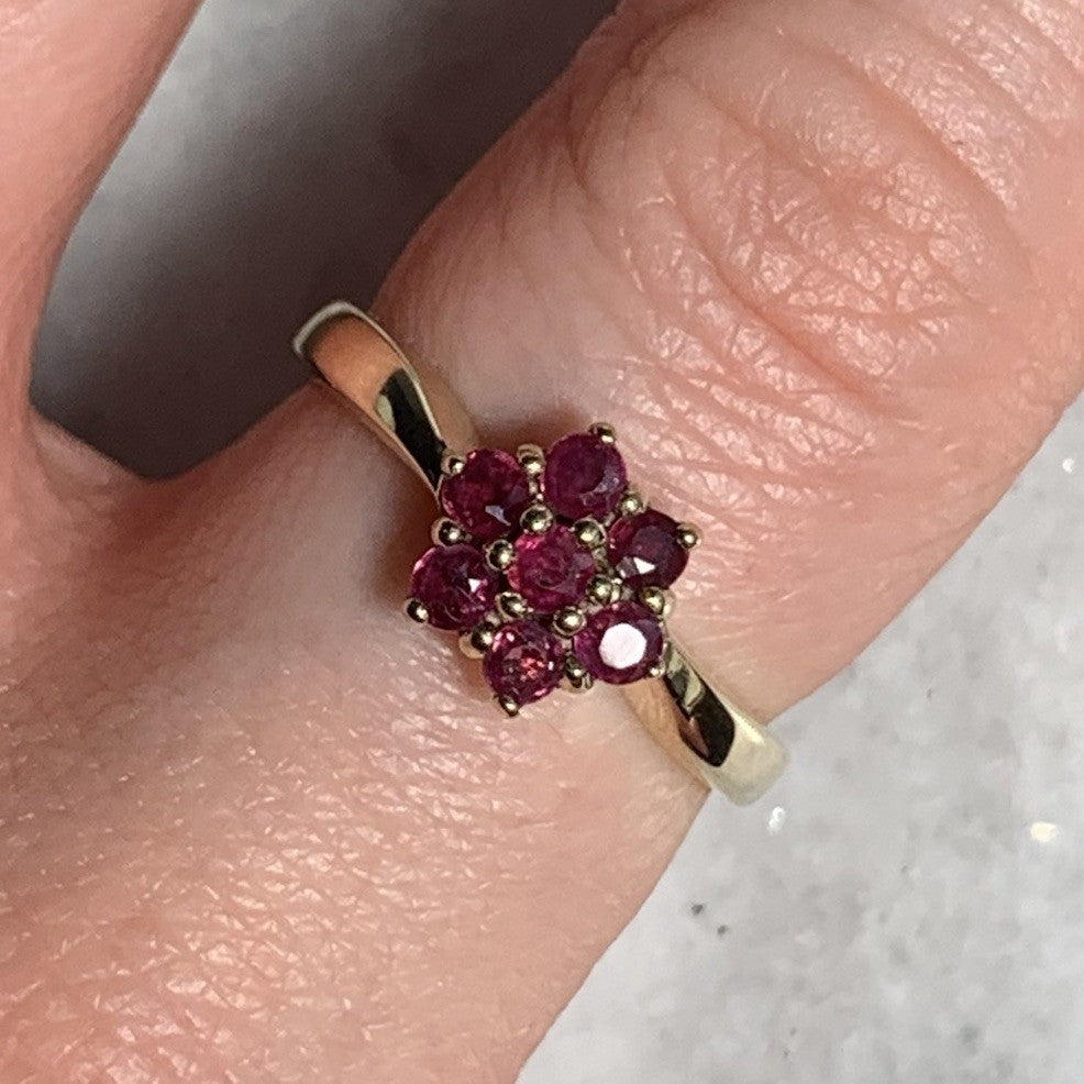 Ruby Daisy Flower Cluster Ring 9ct 9k Yellow Gold - Size N