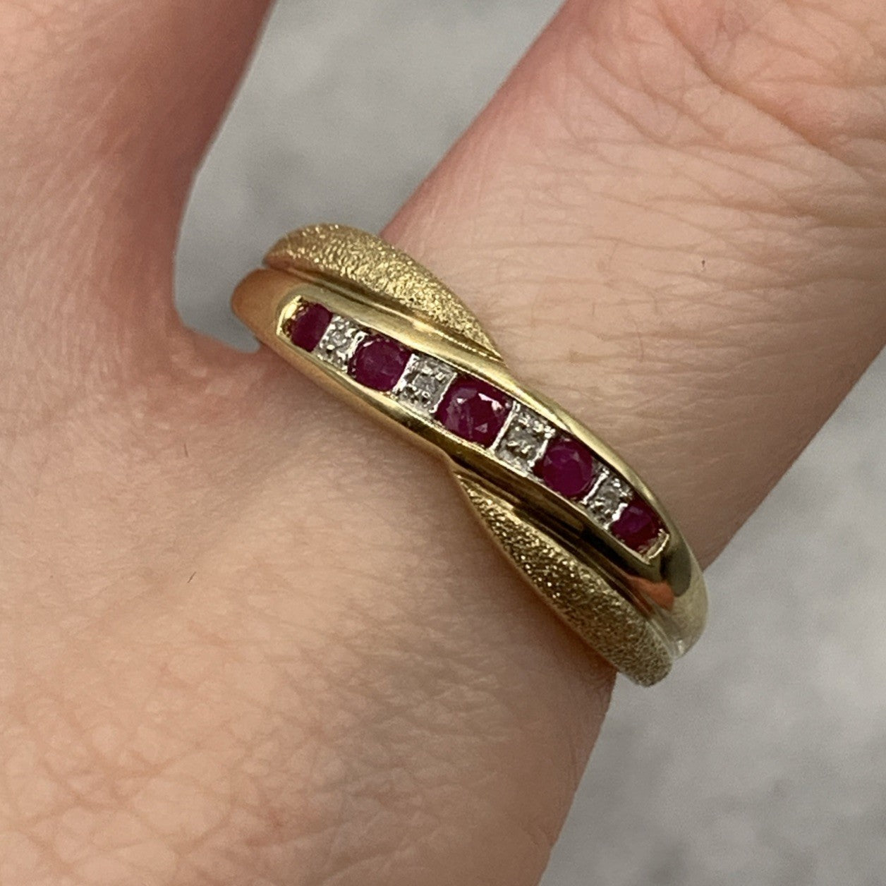 Ruby & Diamond Crossover Band Ring 9ct 375 Yellow Gold - Size Q 1/2