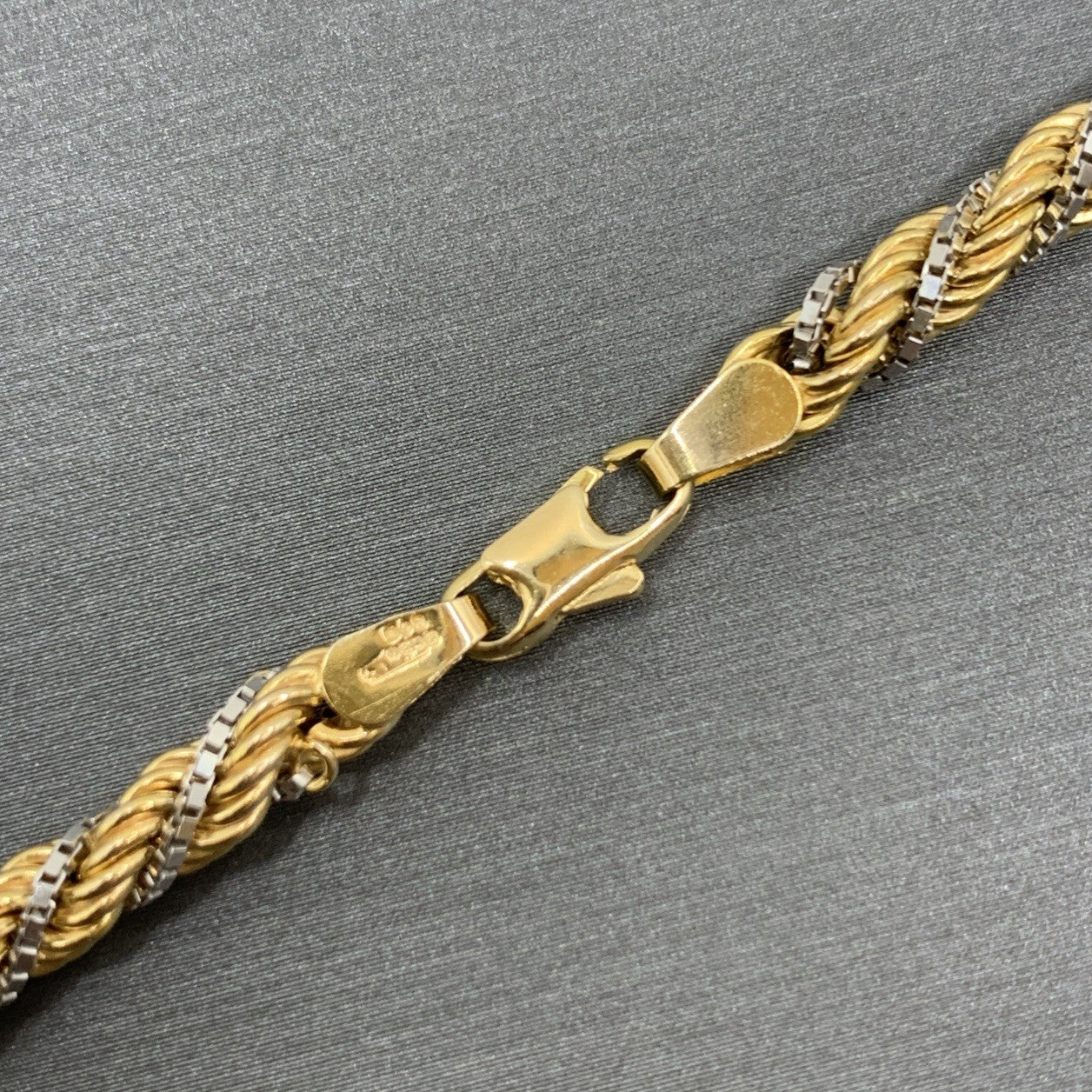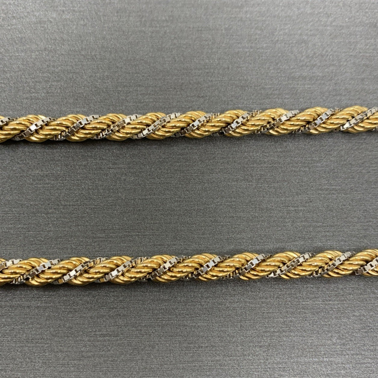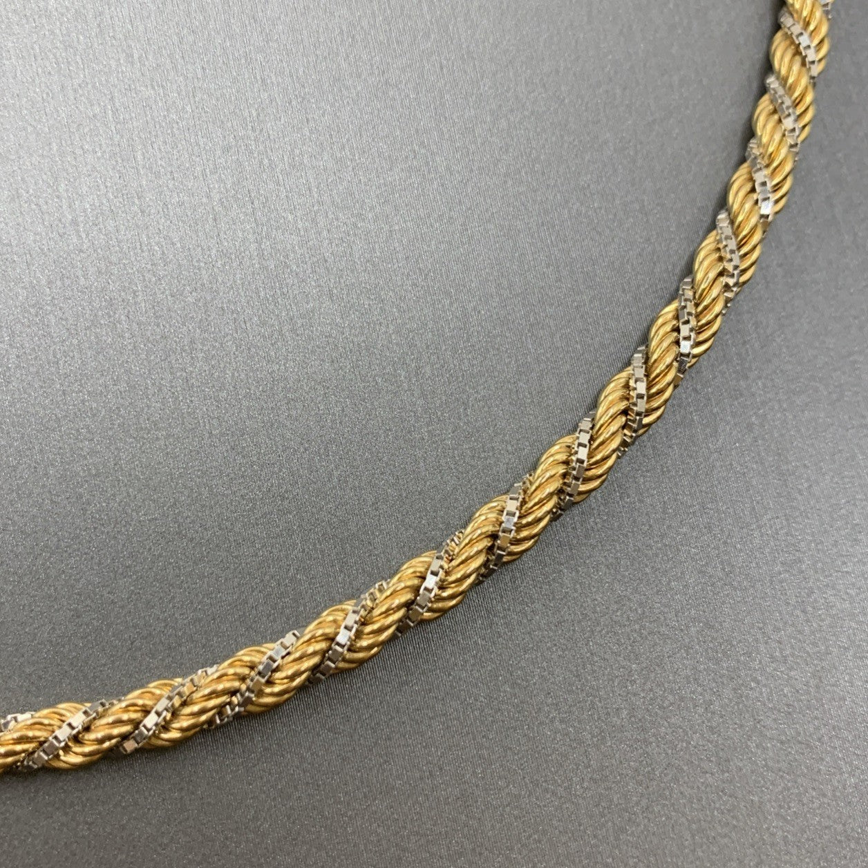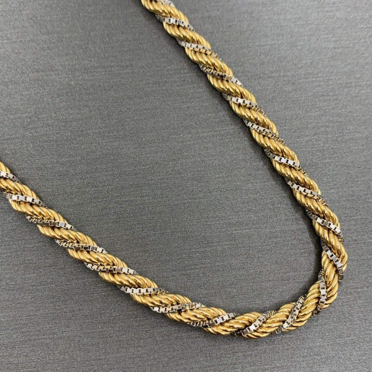 A unique two tone gold rope twist chain chain necklace. Lobster claw clasp.