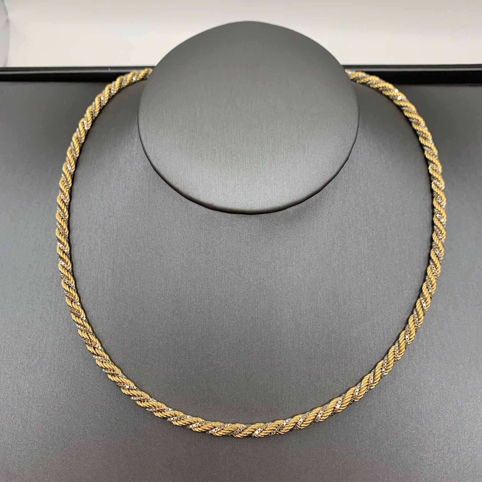 Two Tone Rope Twist Chain Necklace 9ct 375 Yellow Gold - 18" Inches