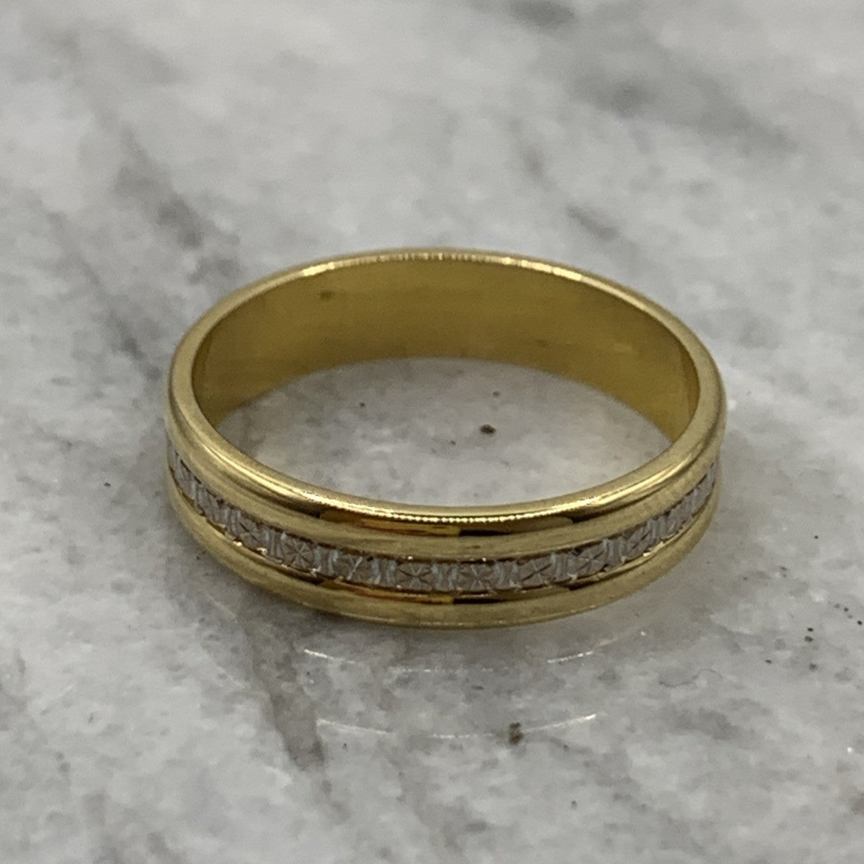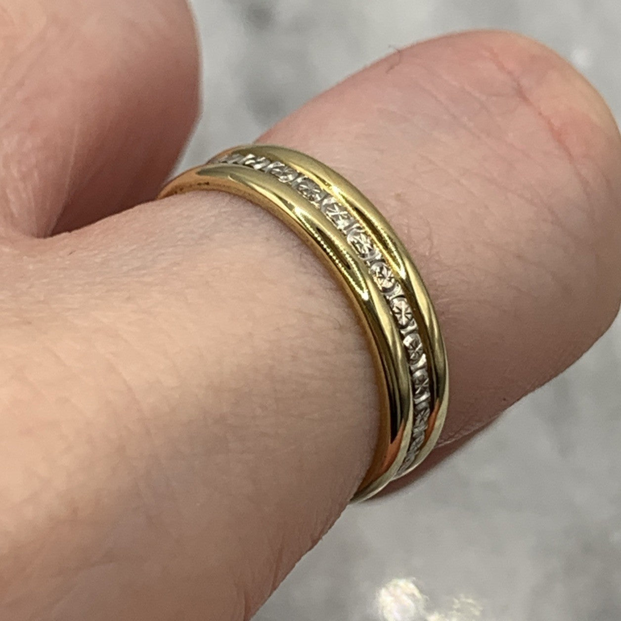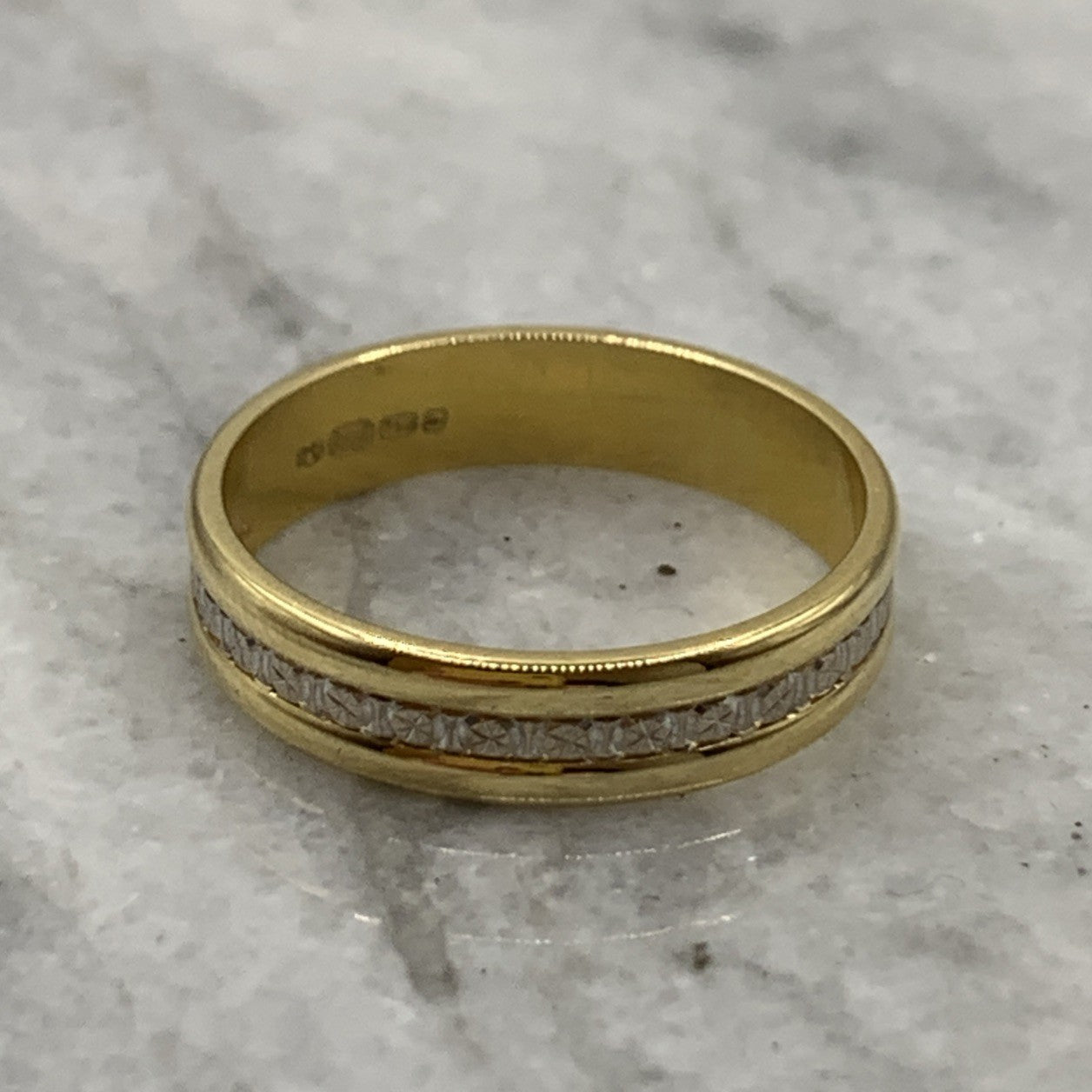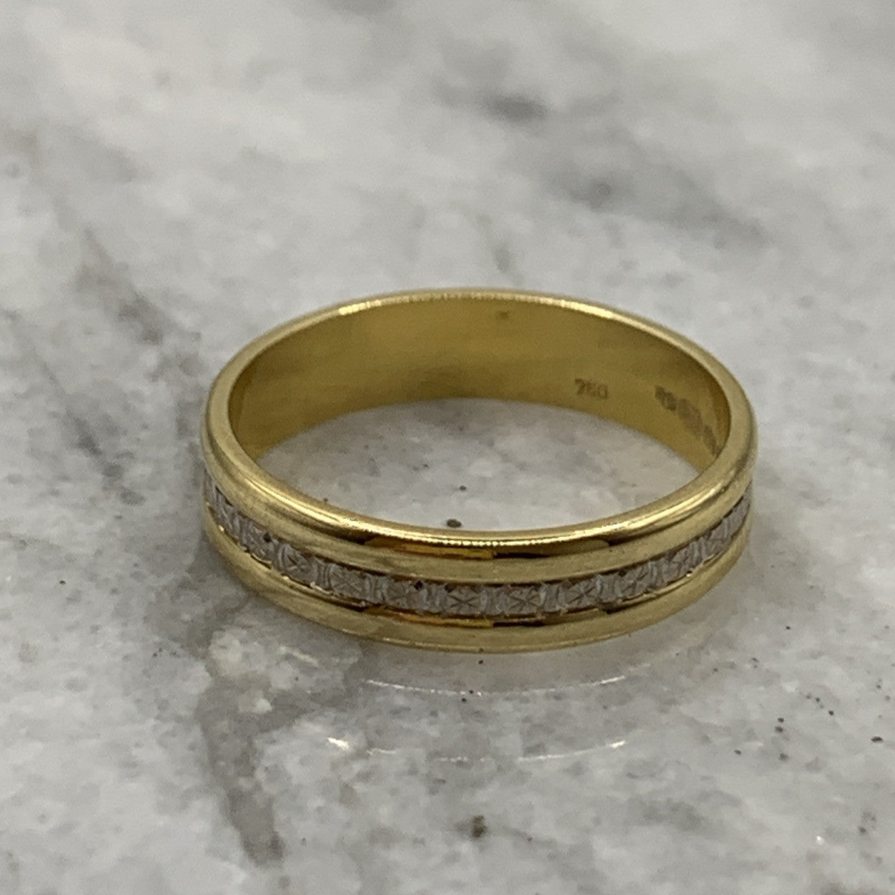 Two Tone Wedding Band Ring 18ct 750 Yellow Gold - Size N