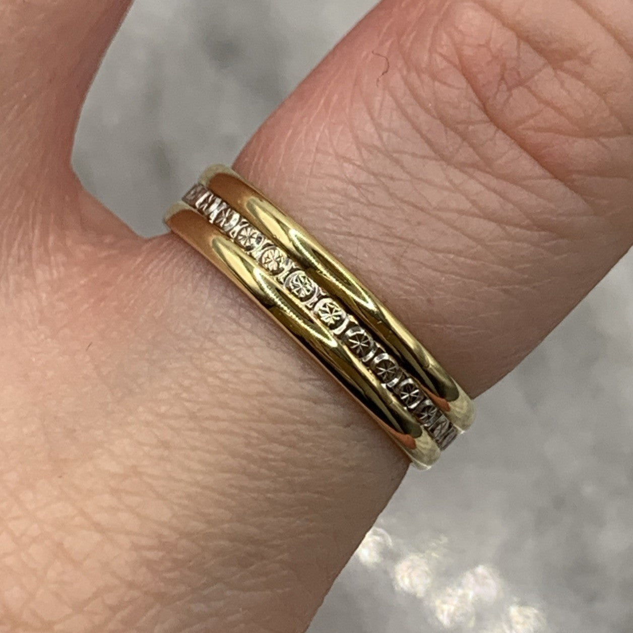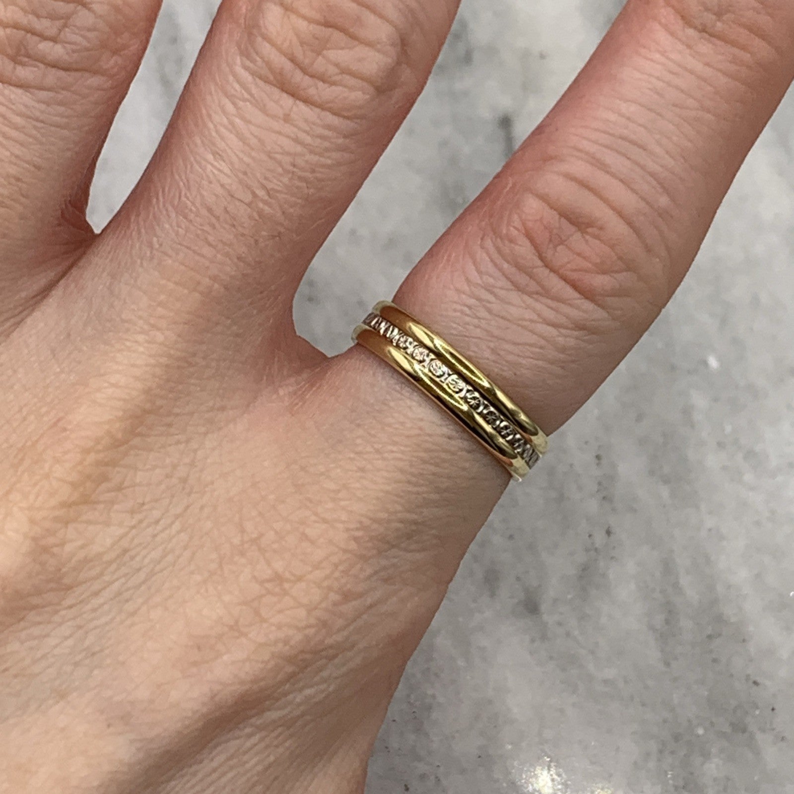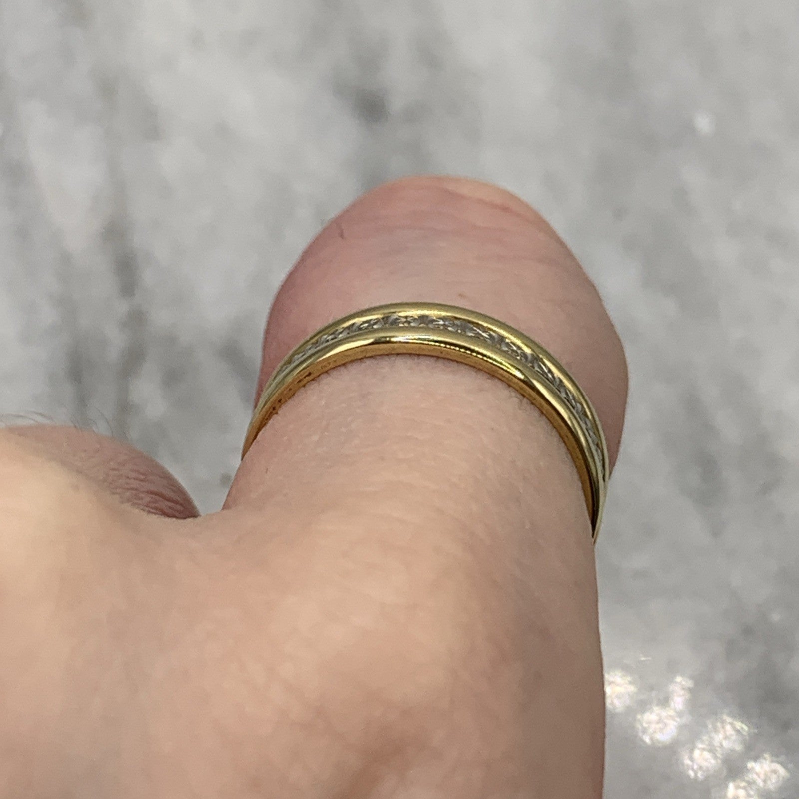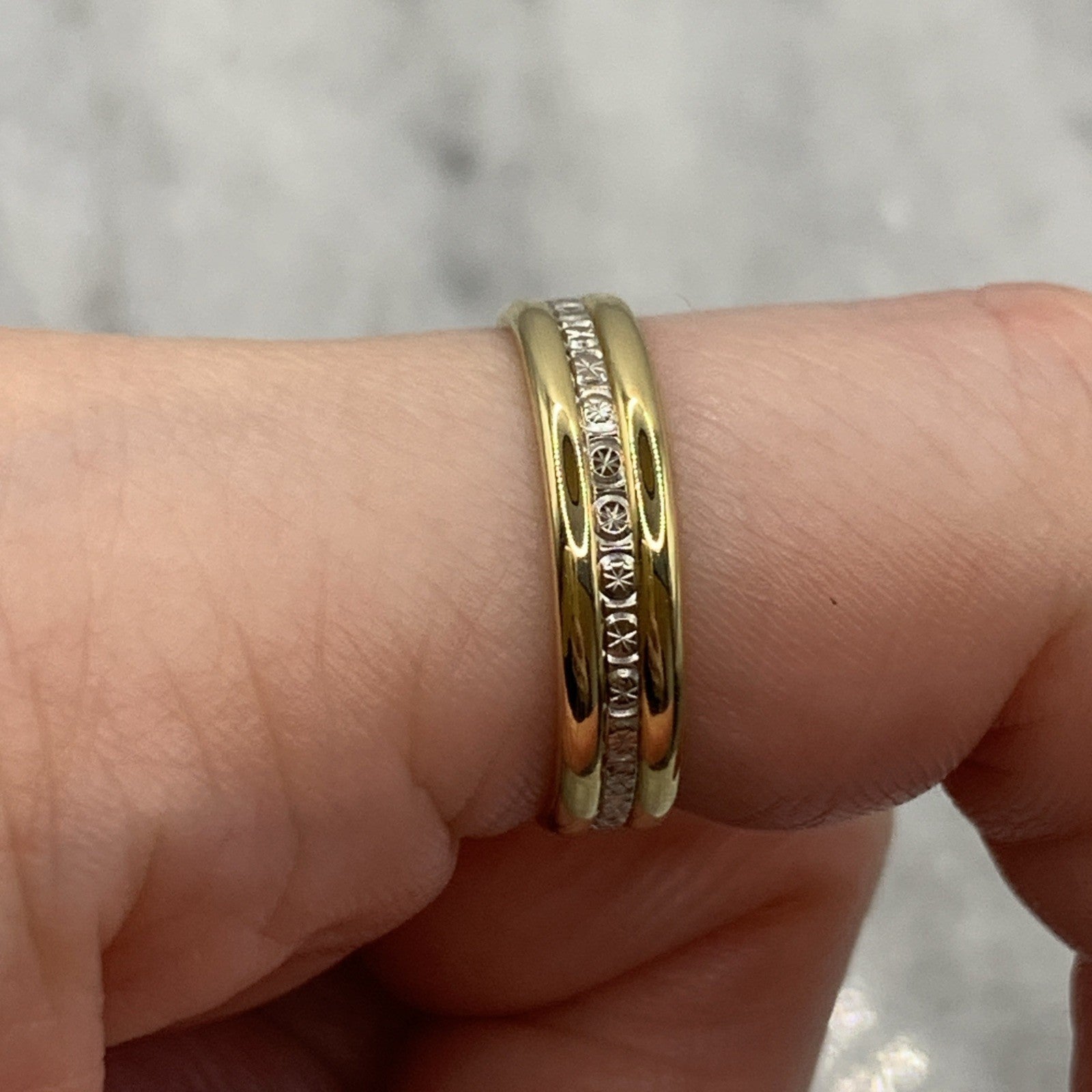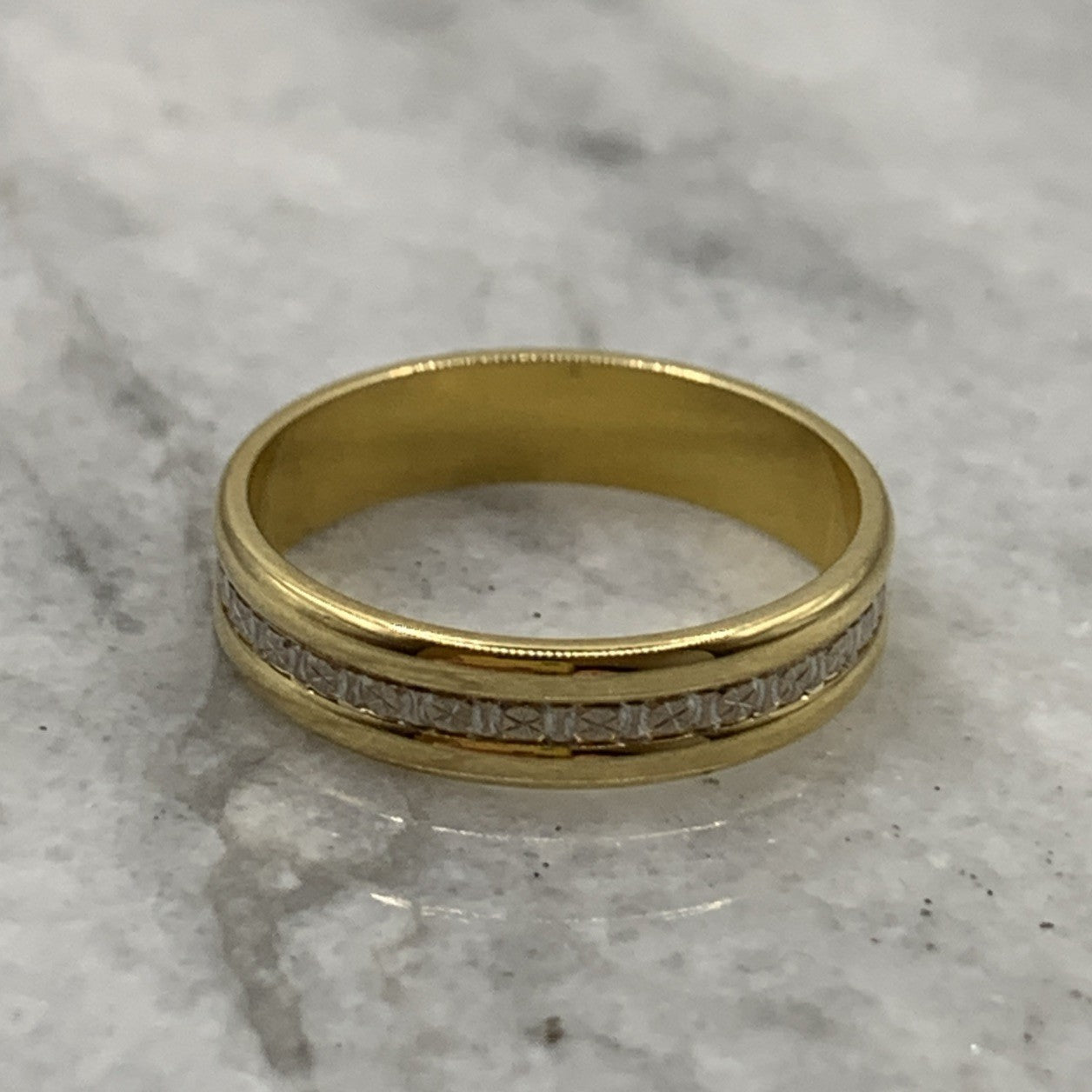 Two Tone Wedding Band Ring 18ct 750 Yellow Gold - Size N