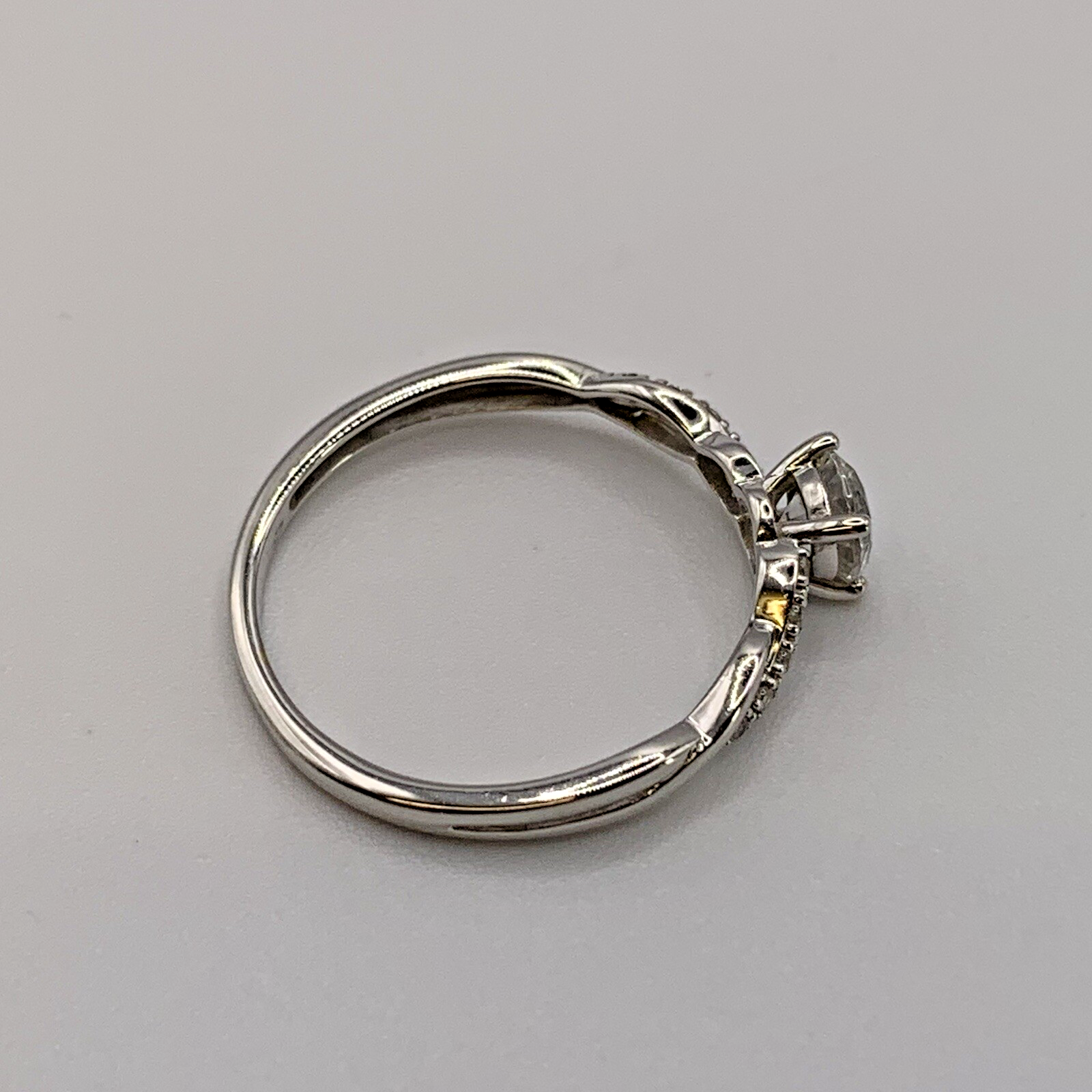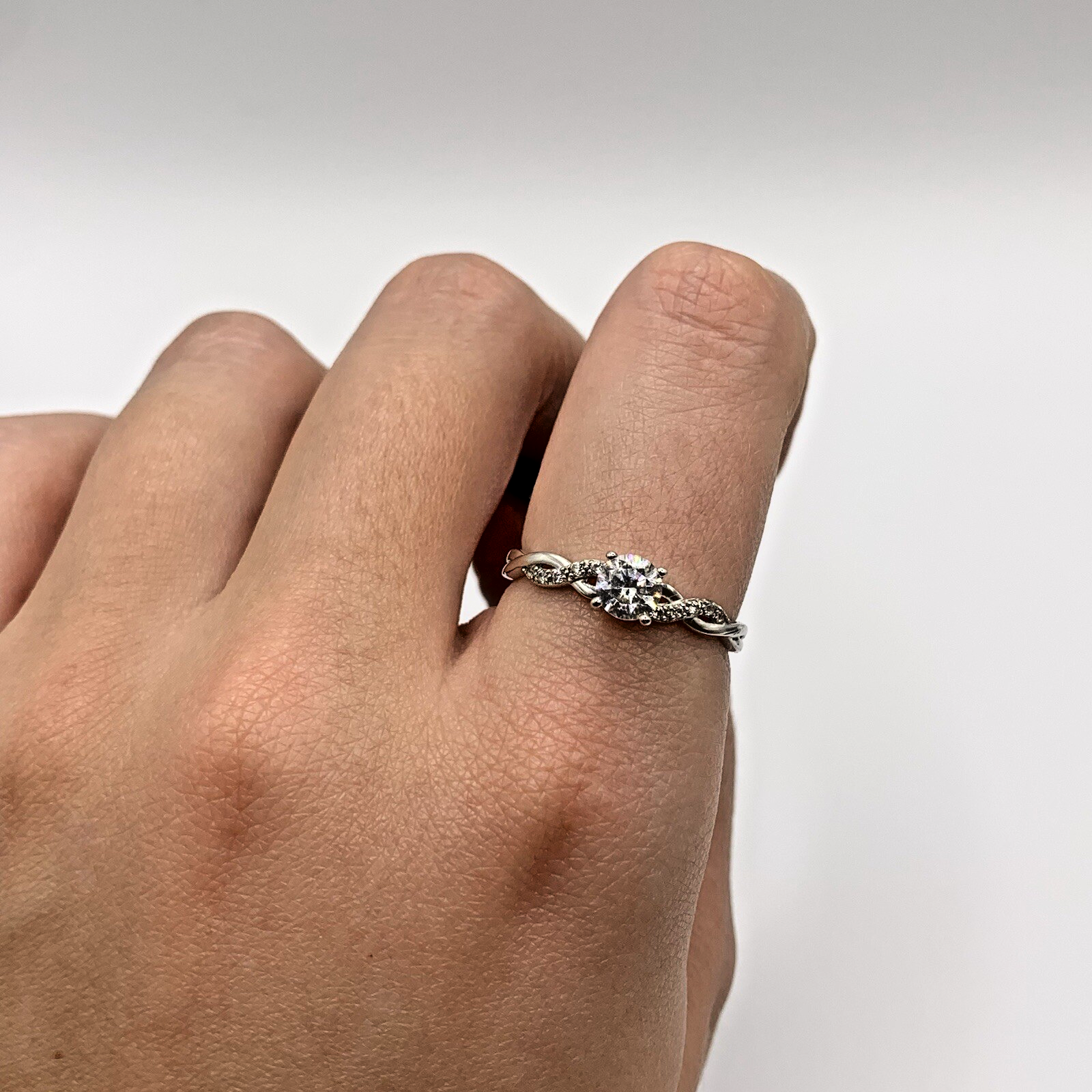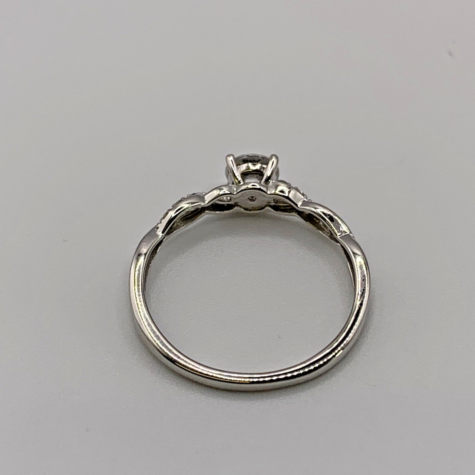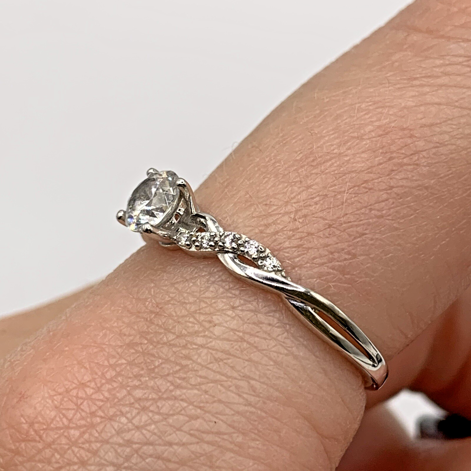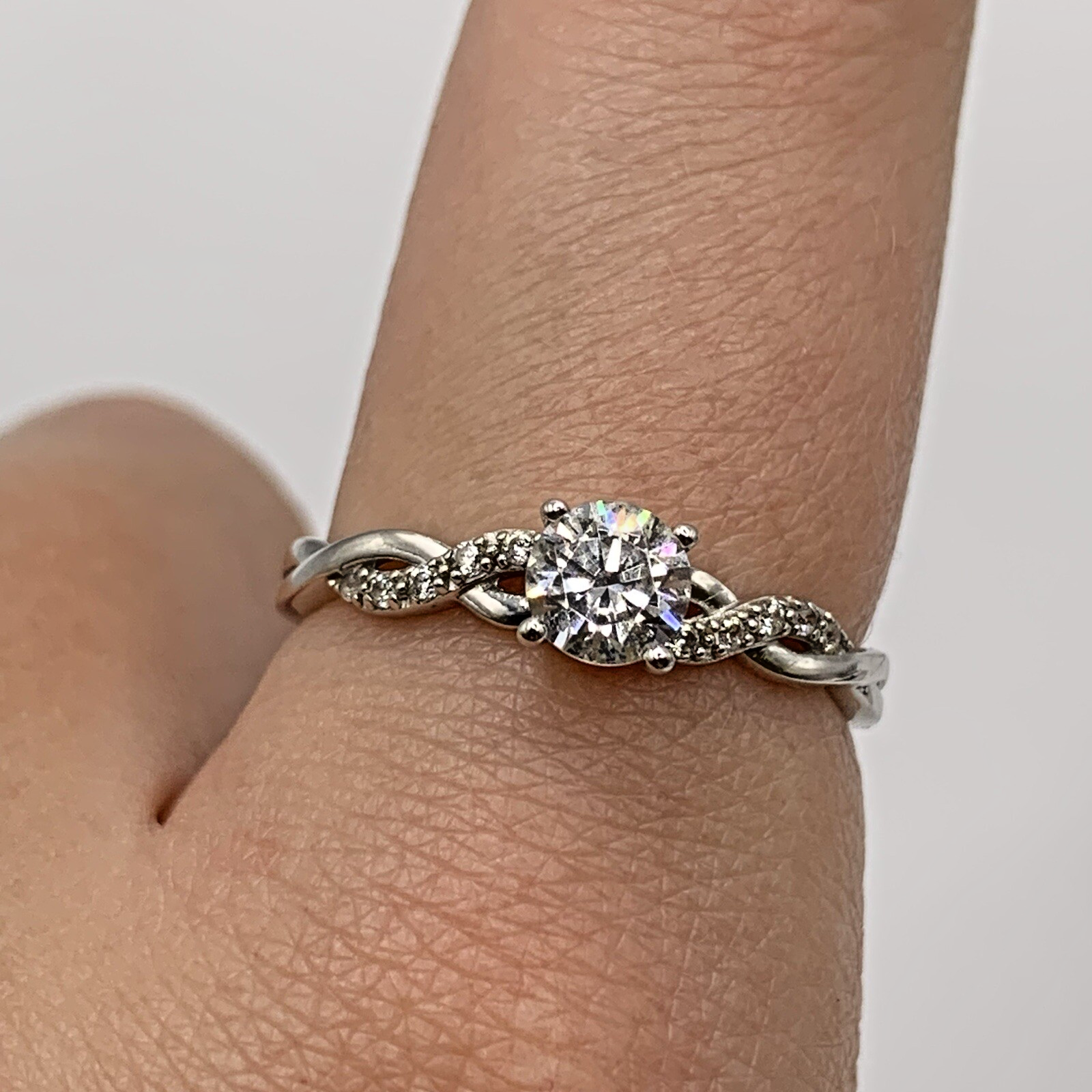 White Gold Ring 9 ct CZ Solitaire With Twist Shoulder Accents - Size P