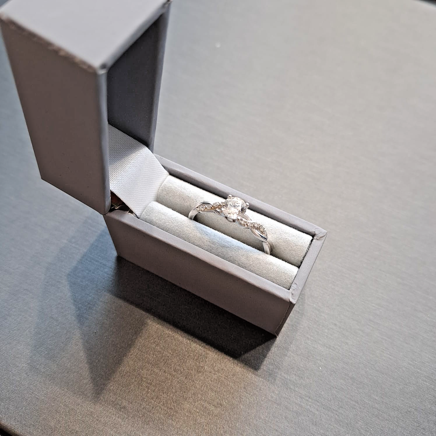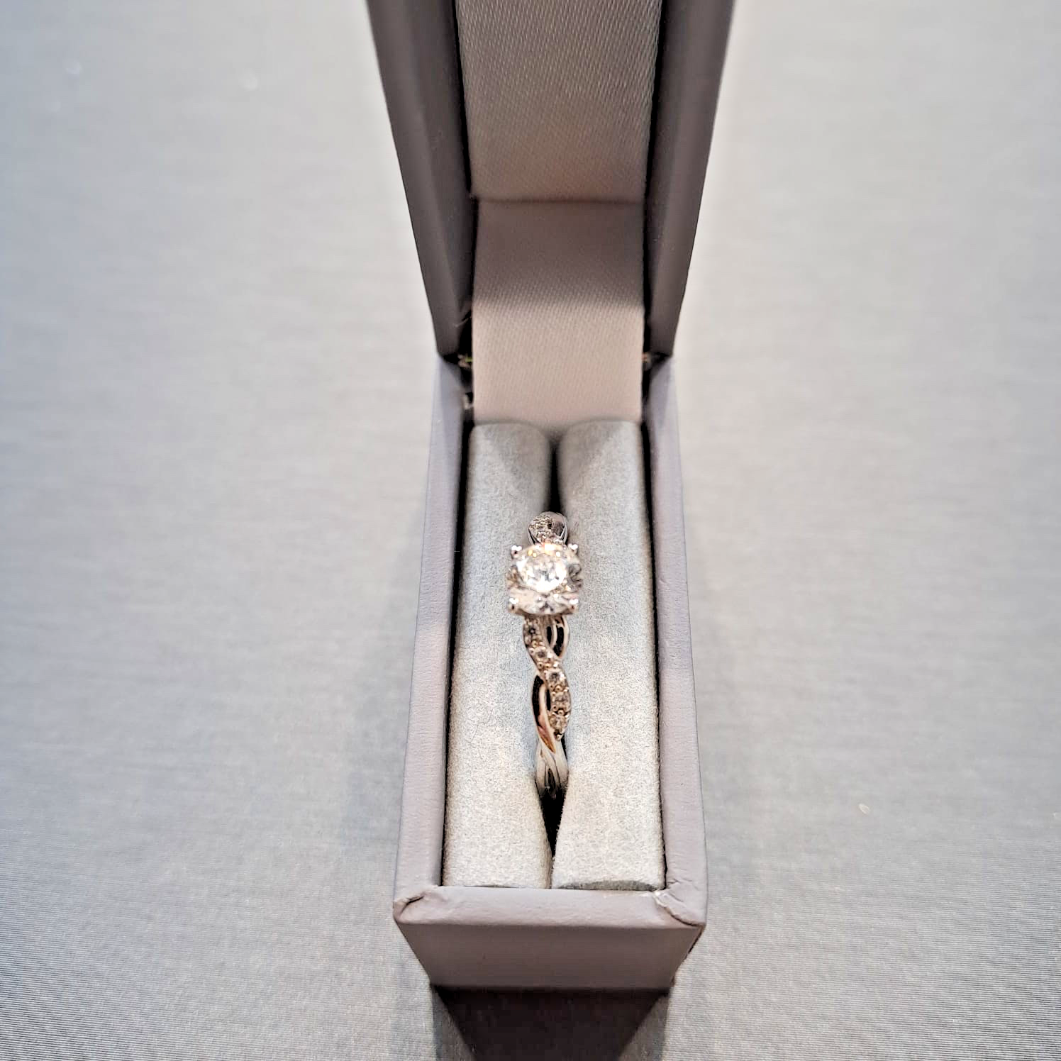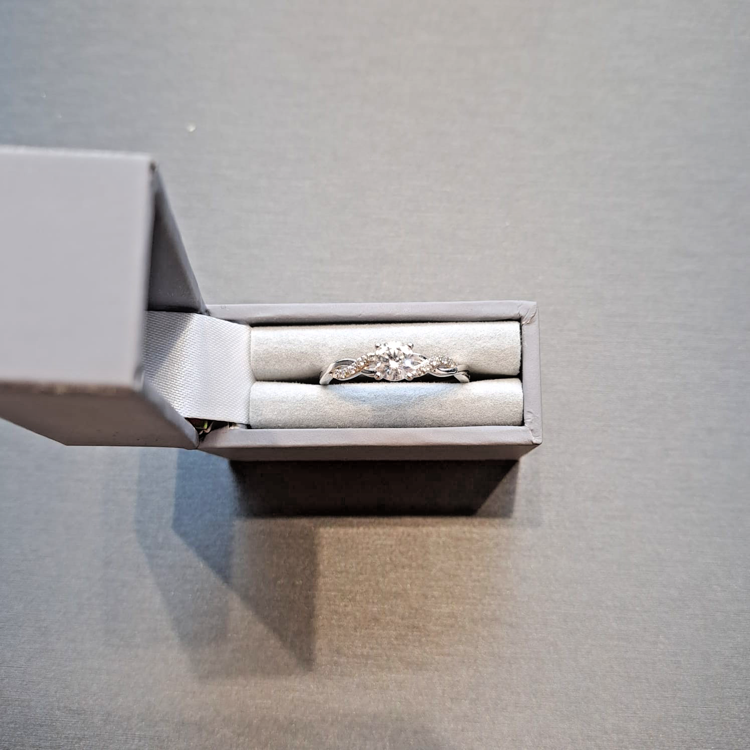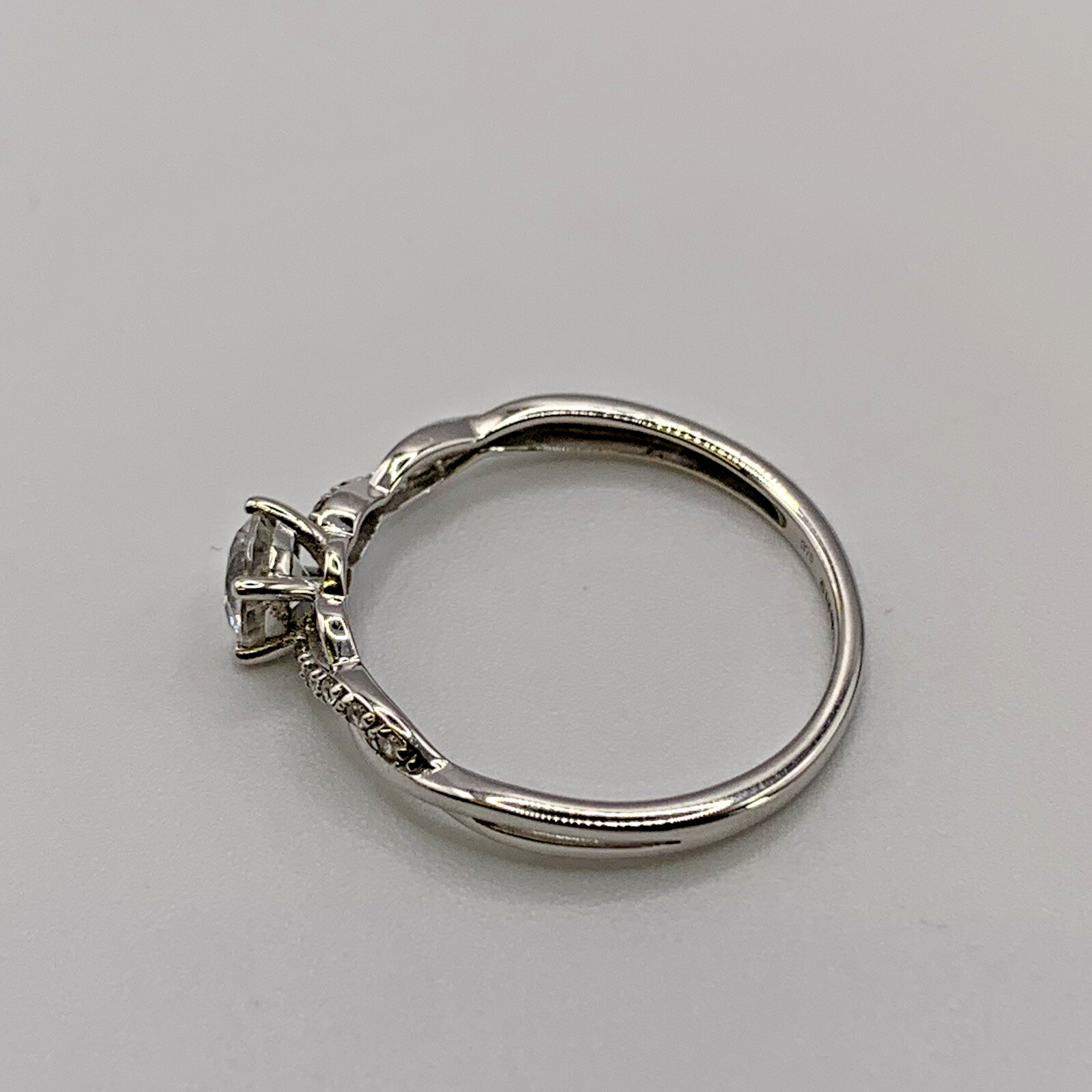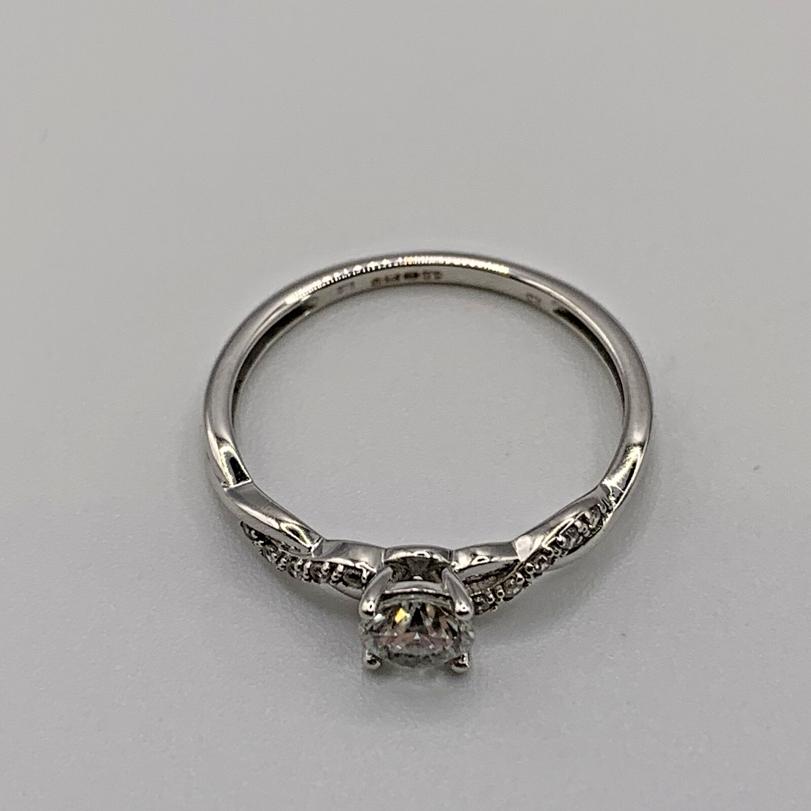 White Gold Ring 9 ct CZ Solitaire With Twist Shoulder Accents - Size P