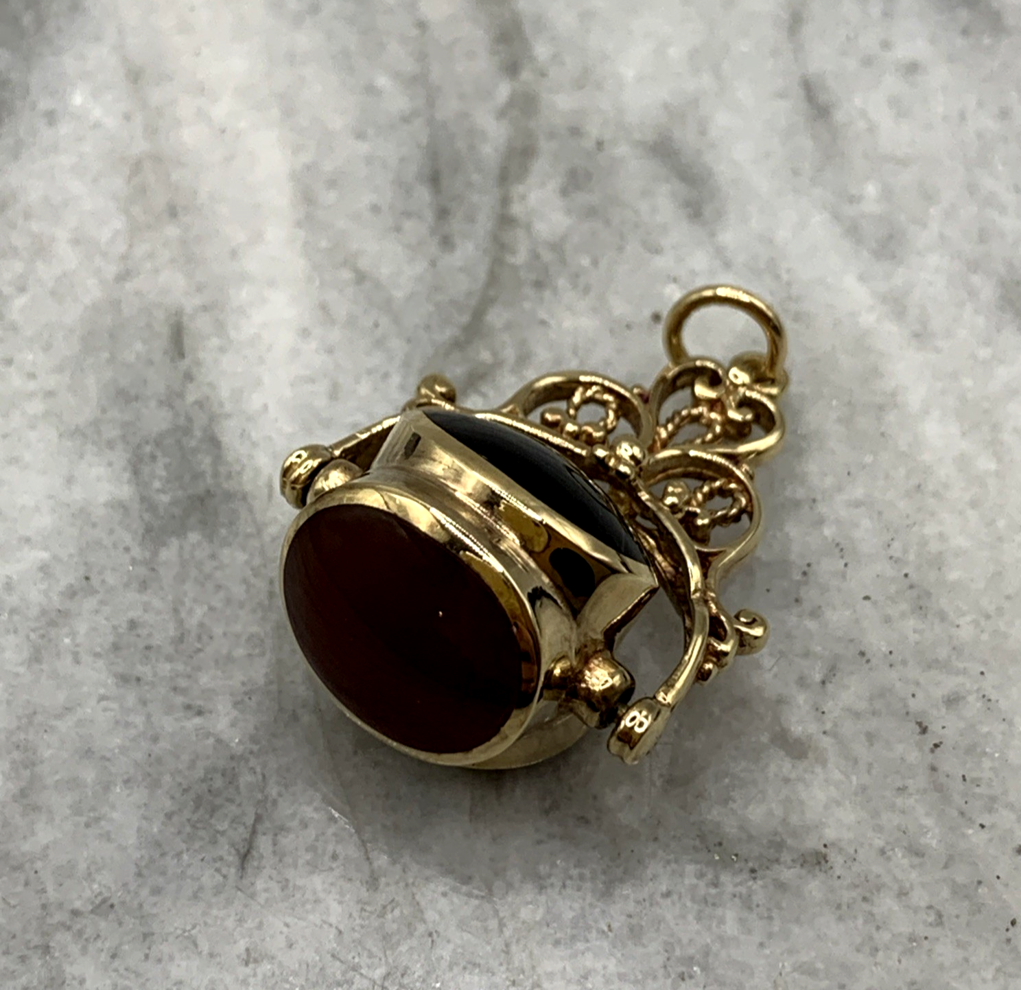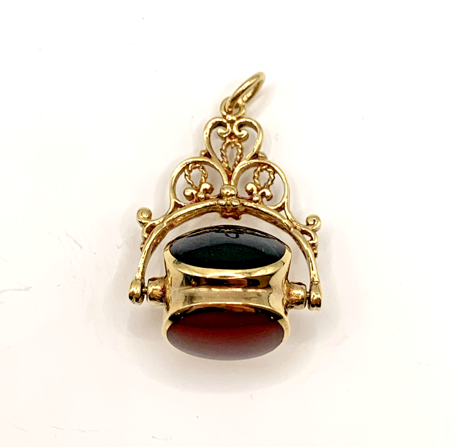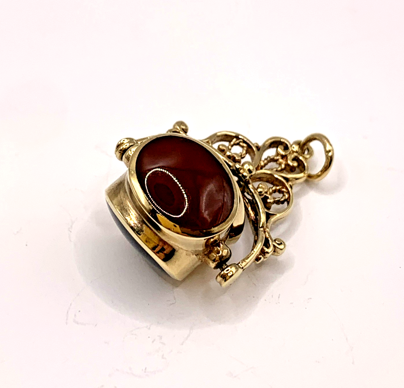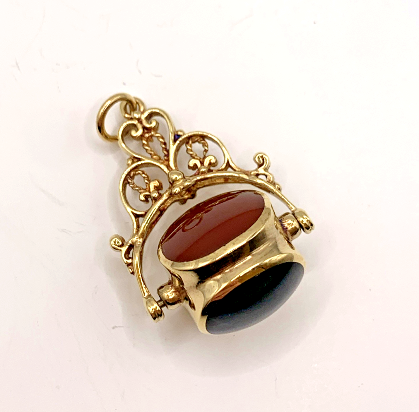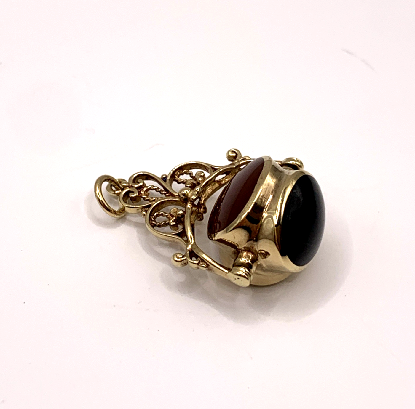 9 ct Gold Bloodstone Onyx & Carnelian Swivel Fob Pendant 9k 375 Yellow Gold
